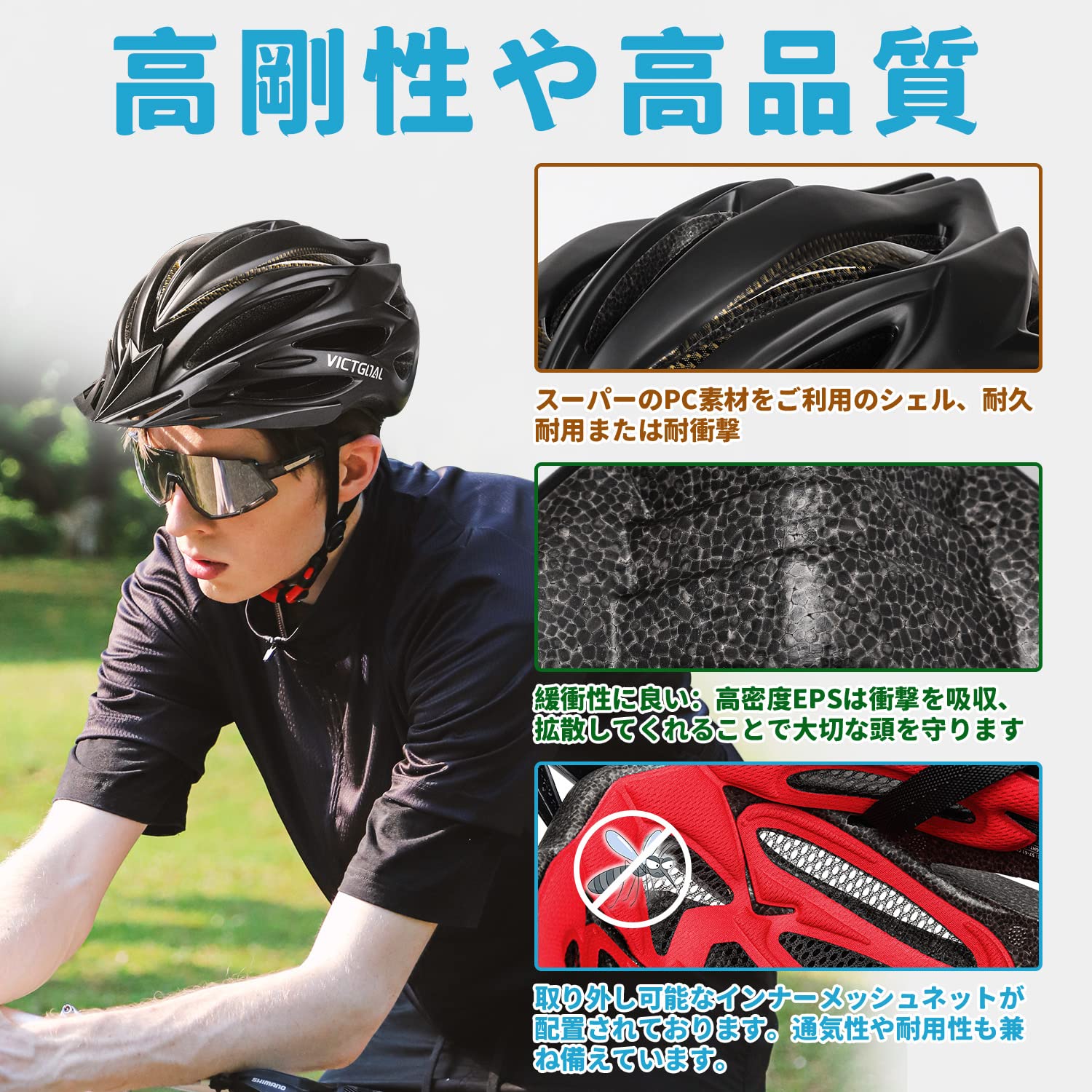 自転車ヘルメット サイクリングヘルメット 超軽量 ヘルメット 調整可能 高剛性 流線型 ロードバイク サイクリング (ブラック)