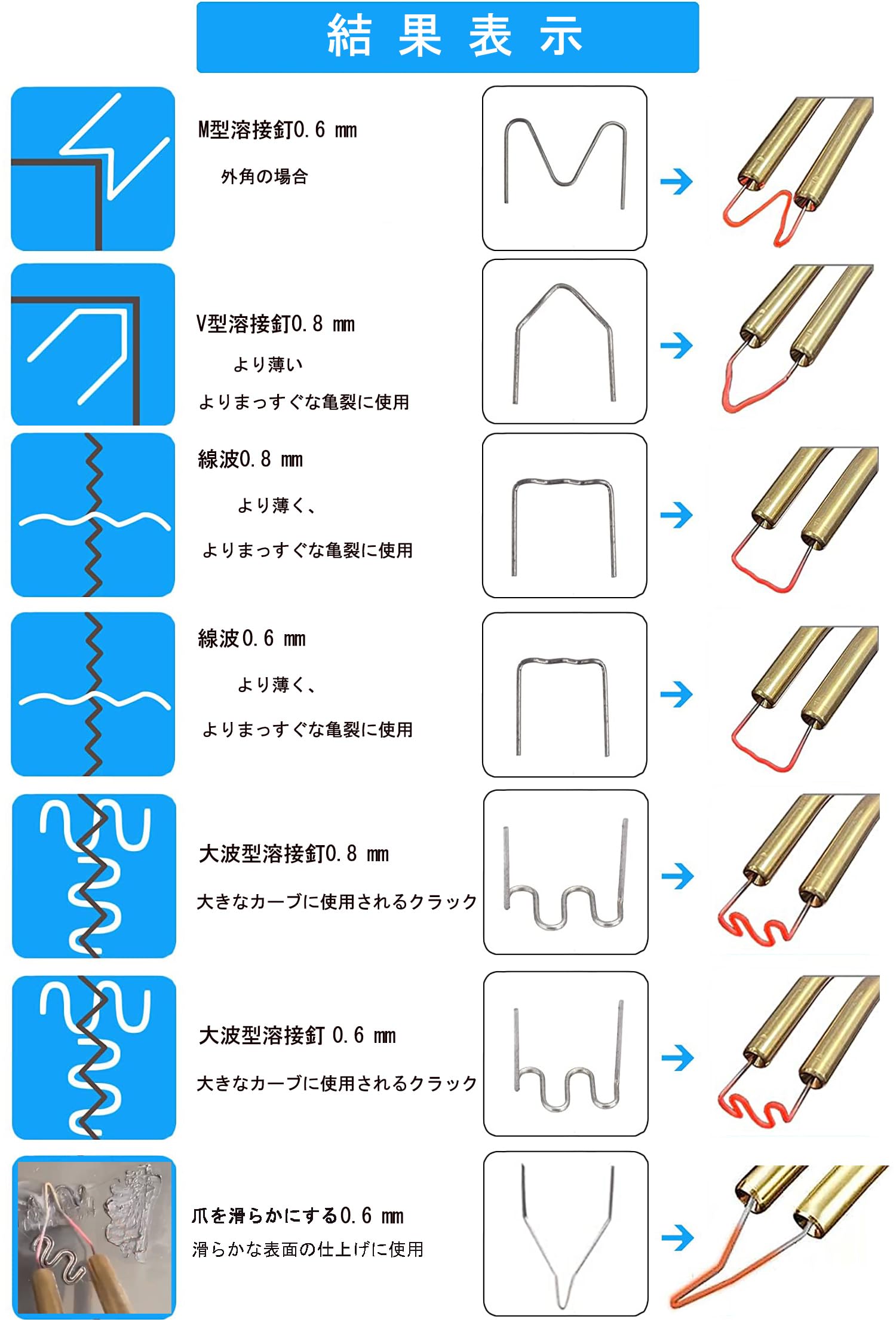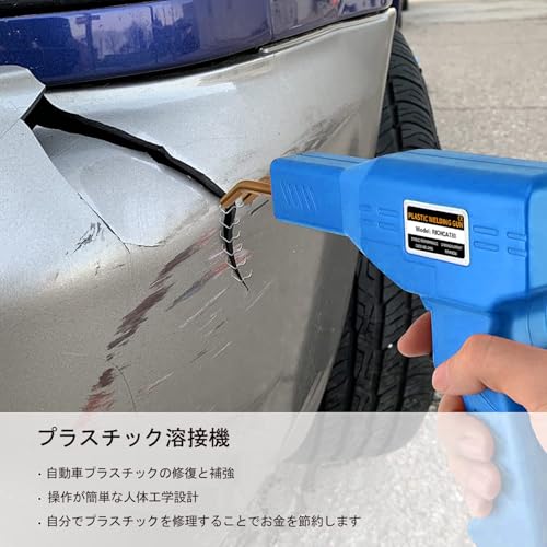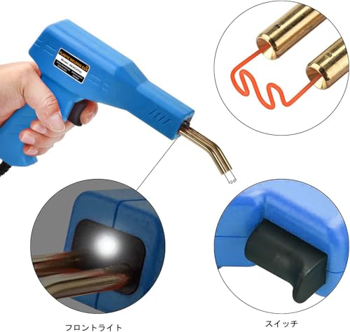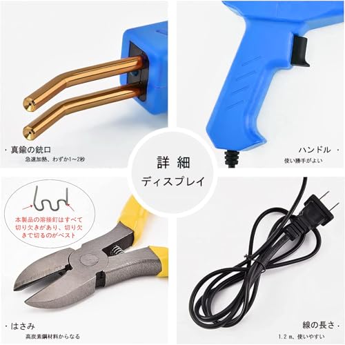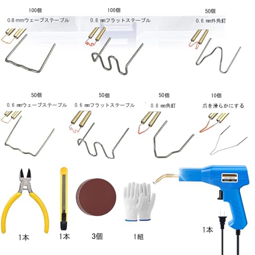 プラスチック溶接機 バンパー補修用プラスチック溶接機キット、ホッチキス溶接機、300本の溶接釘付き、110V自働バンパー修理用補修機、ナイフ、サンドペーパー付き(青)