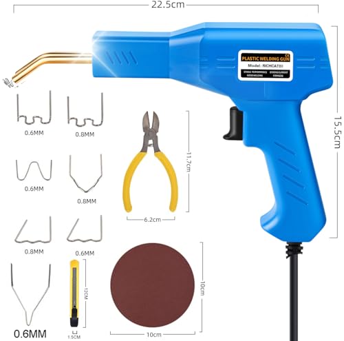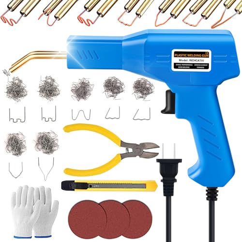 Richcat 80w プラスチック溶接機 カーバンパー修理キット 急速加熱 7種410本の溶接釘付きLED照明付き 自動車 ひび割れ 補修 内側コーナー/外側コーナー/ウェーブステープル 溶接修理