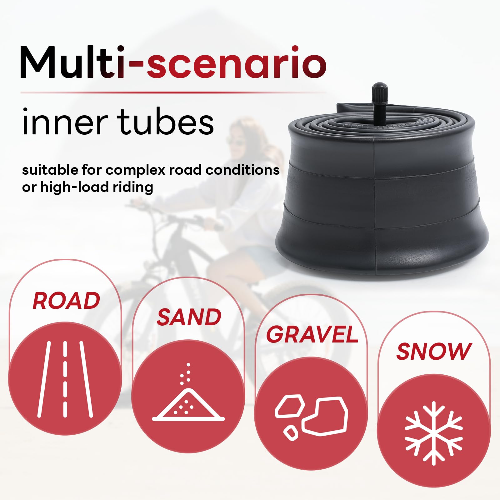 適用車種:26インチ自転車、タイヤ断面幅4.0-4.5インチに適用する。適用自転車のタイプは、マウンテンバイク、ファットバイク。 商品の内容:26x4.0/4.5 自転車チューブx2本。 節約予算:自分でチューブを交換するのは自転車店で交換するよりずっと安い。 迅速な対応:私たちの商品はアマゾンの倉庫に保管されており、一般的に支払いが成功してから3日ほどで商品を受け取ることができます。 インストールに関する注意事項:初めてインストールする場合は、まず関連するインストールビデオを参照してください。インストール時間を節約するのに役立ちます。