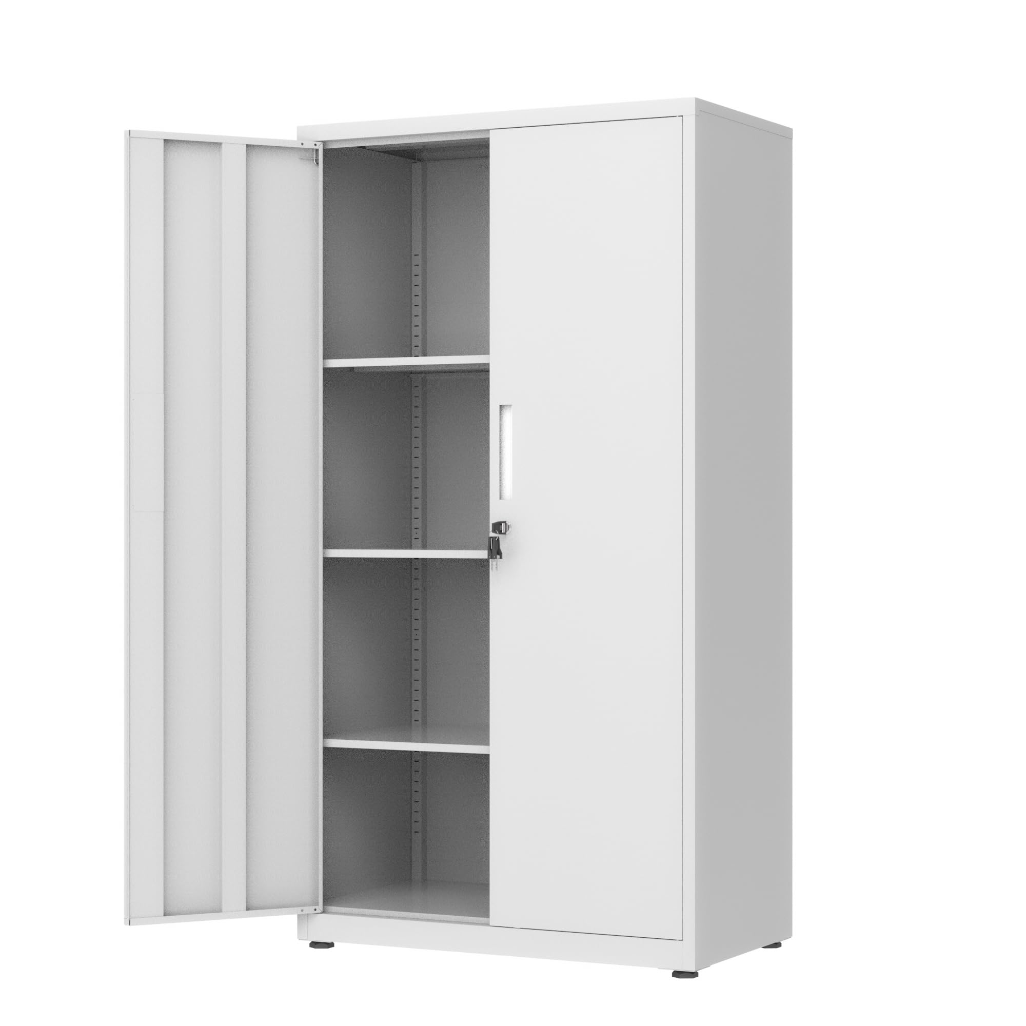 LAND·VO 金属製ロック付き収納キャビネット(棚4段、マットホワイト)66LGSC02W01