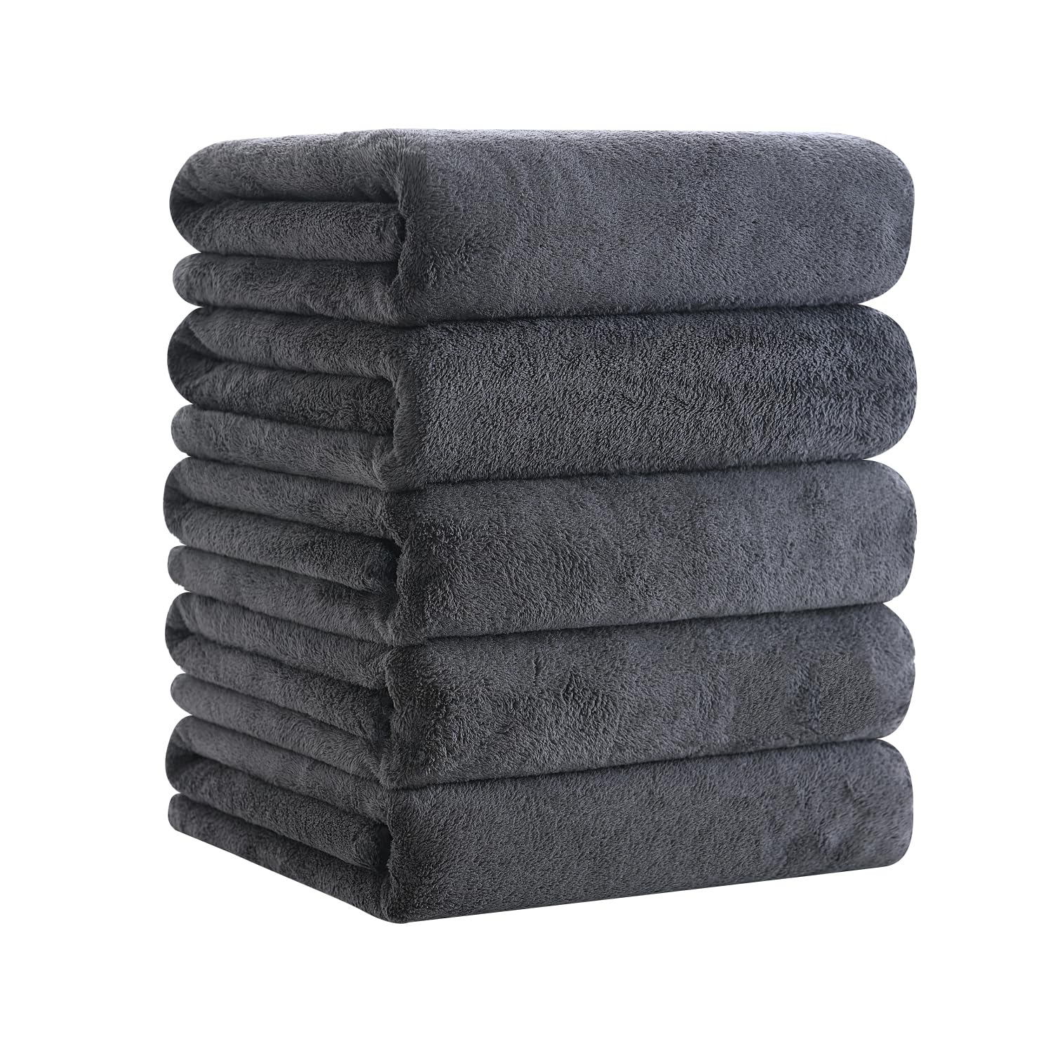 バスタオル マイクロファイバー 5枚セット ホテル仕様 大判 60X120cm ふわふわ肌触り 高速吸水 速乾 耐久性 タオル (ダークグレー)