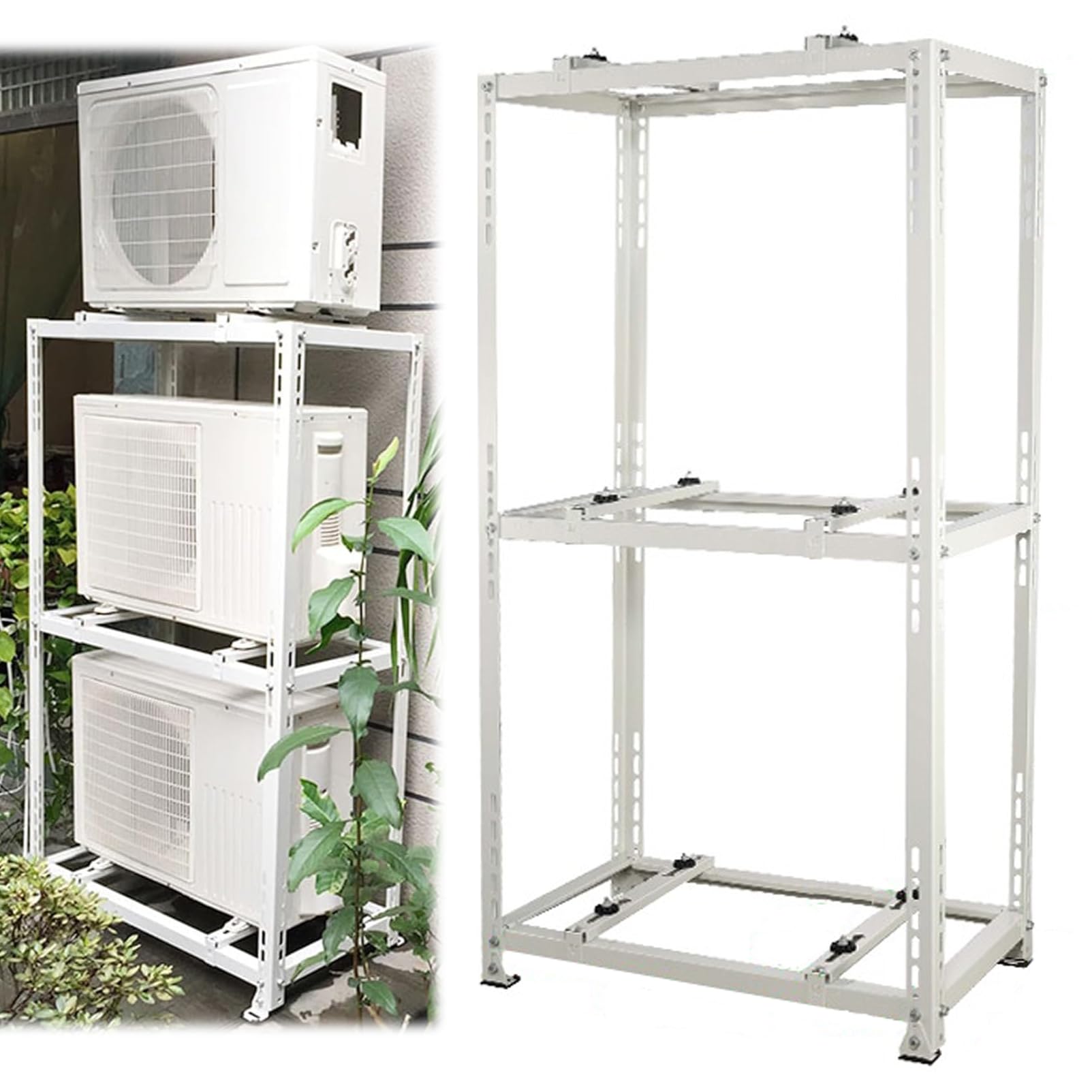 Ddasam エアコンサポートブラケット 高耐久グラウンドスタンドブラケット、エアコン室外機用架台 アルミニウム合金エアコンフロアスタンド、衝撃吸収防振パッド付き