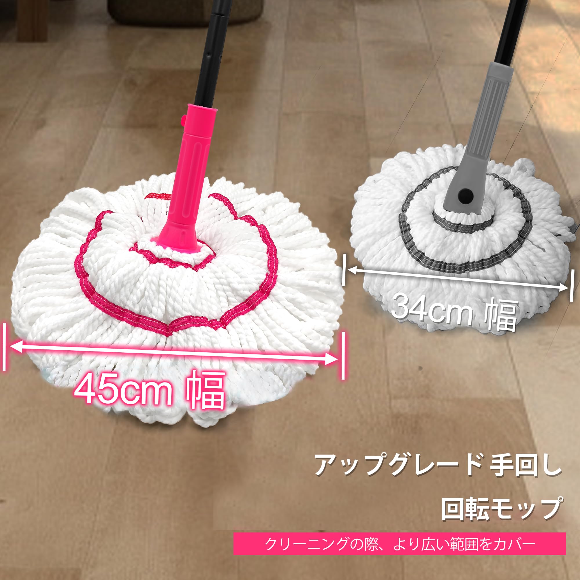 Masthome 回転モップ 4L二槽式バケツ付き 水拭き乾拭きモップ フローリング掃除 3枚モップパッド付き 洗浄剤ボトル付き ハンドル調節可能 腰への負担軽減 手洗い不要 簡単に組み立て 耐久性あり 全フロアに対応 軽量 省スペース