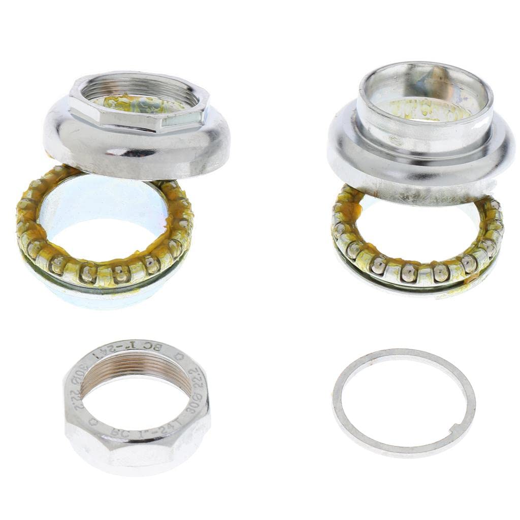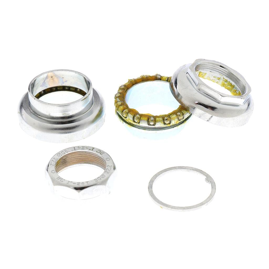 自転車 完全一体型 ヘッドセット ベアリング 1インチ ネジ 山付き MTB ロード 自転車バイクヘッドセット 銀