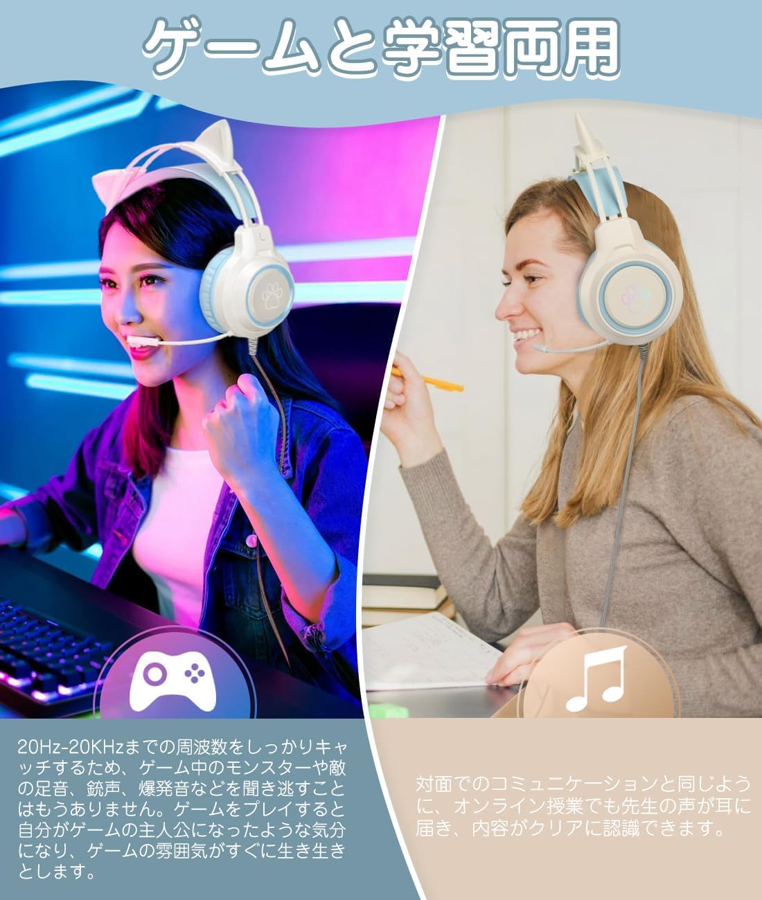 YIK TUNG ヘッドホン 猫耳ヘッドホン ゲーミングヘッドセット 有線ヘッドフォン40MMスピーカー RGBライト付き USBポート マイク付き 柔らかい保護カバー 良い音質 調整可能なサイズ かわいい PS4/PS5/Switch/PC対応 知育・学習・音楽・語学勉強 子供 男女兼用 クリスマス 誕生日 新年 プレゼント 日本語取扱説明書付き (ブルー)