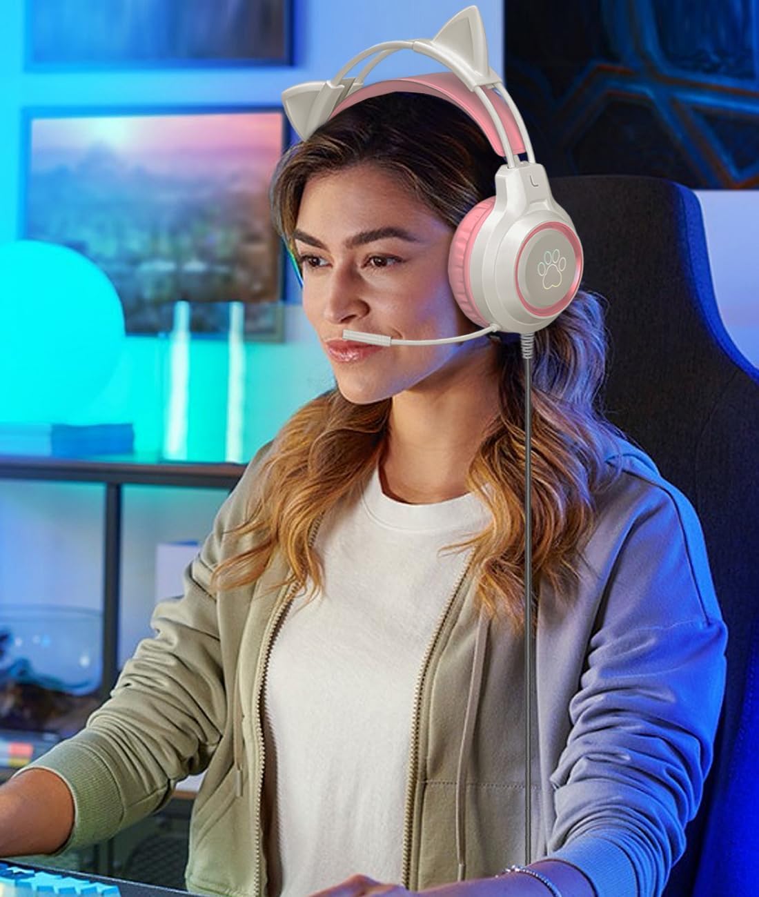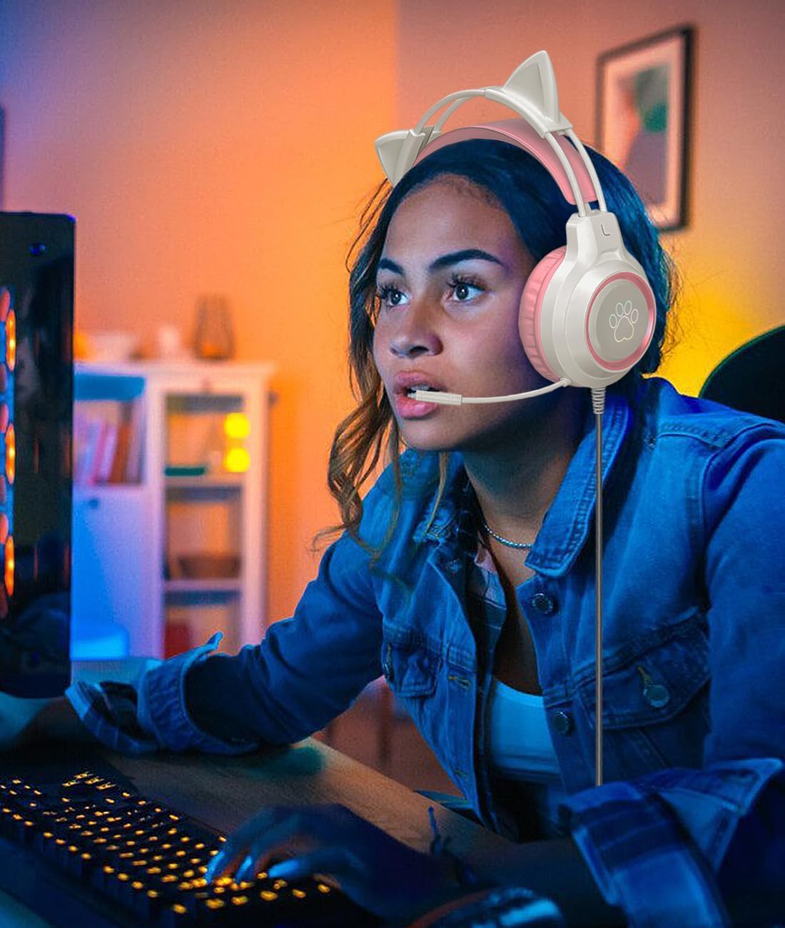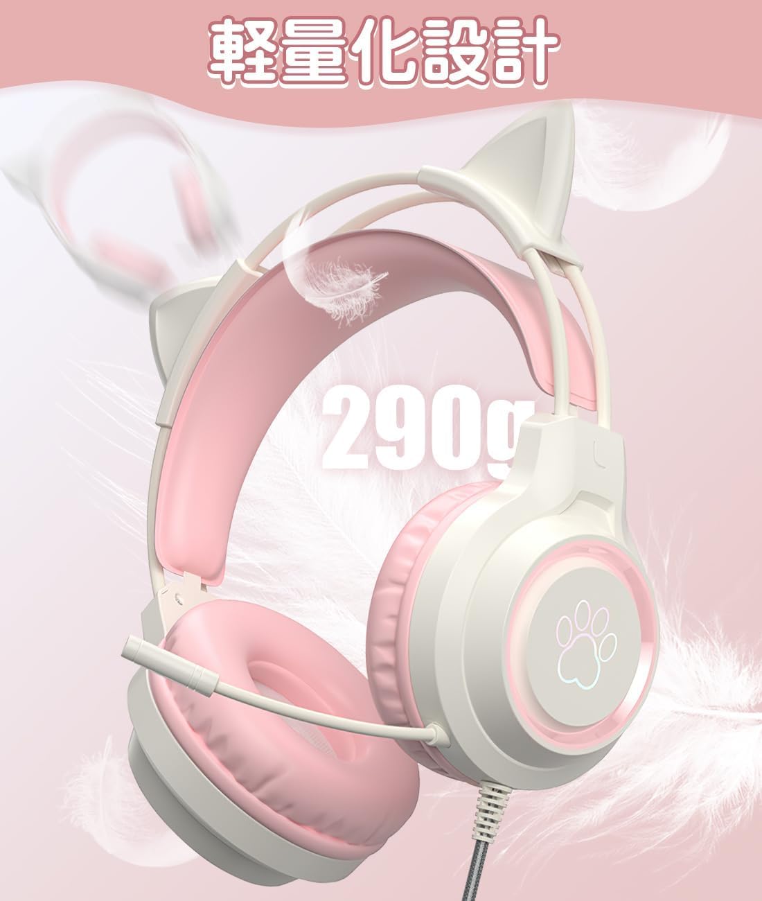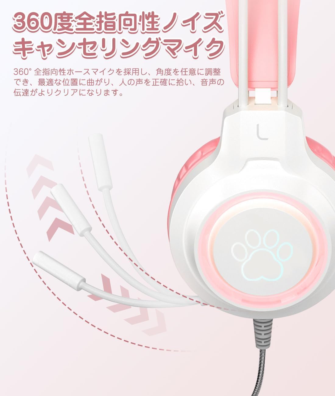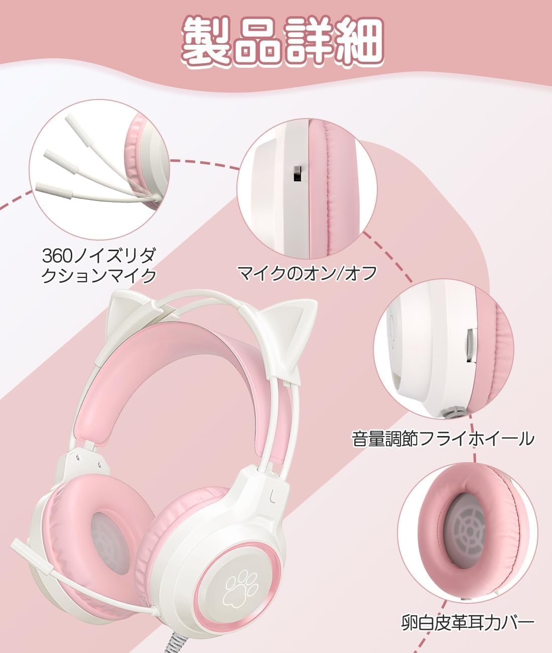 YIK TUNG ヘッドホン 猫耳ヘッドホン ゲーミングヘッドセット 有線ヘッドフォン40MMスピーカー RGBライト付き USBポート マイク付き 柔らかい保護カバー 良い音質 調整可能なサイズ かわいい PS4/PS5/Switch/PC対応 知育・学習・音楽・語学勉強 子供 男女兼用 クリスマス 誕生日 新年 プレゼント 日本語取扱説明書付き (ピンク)