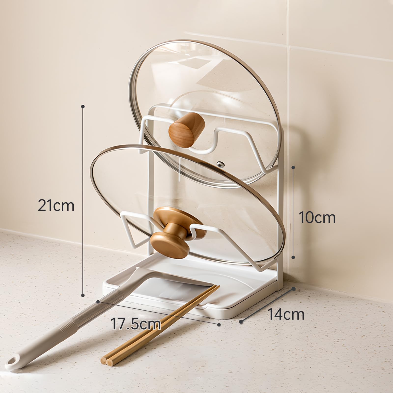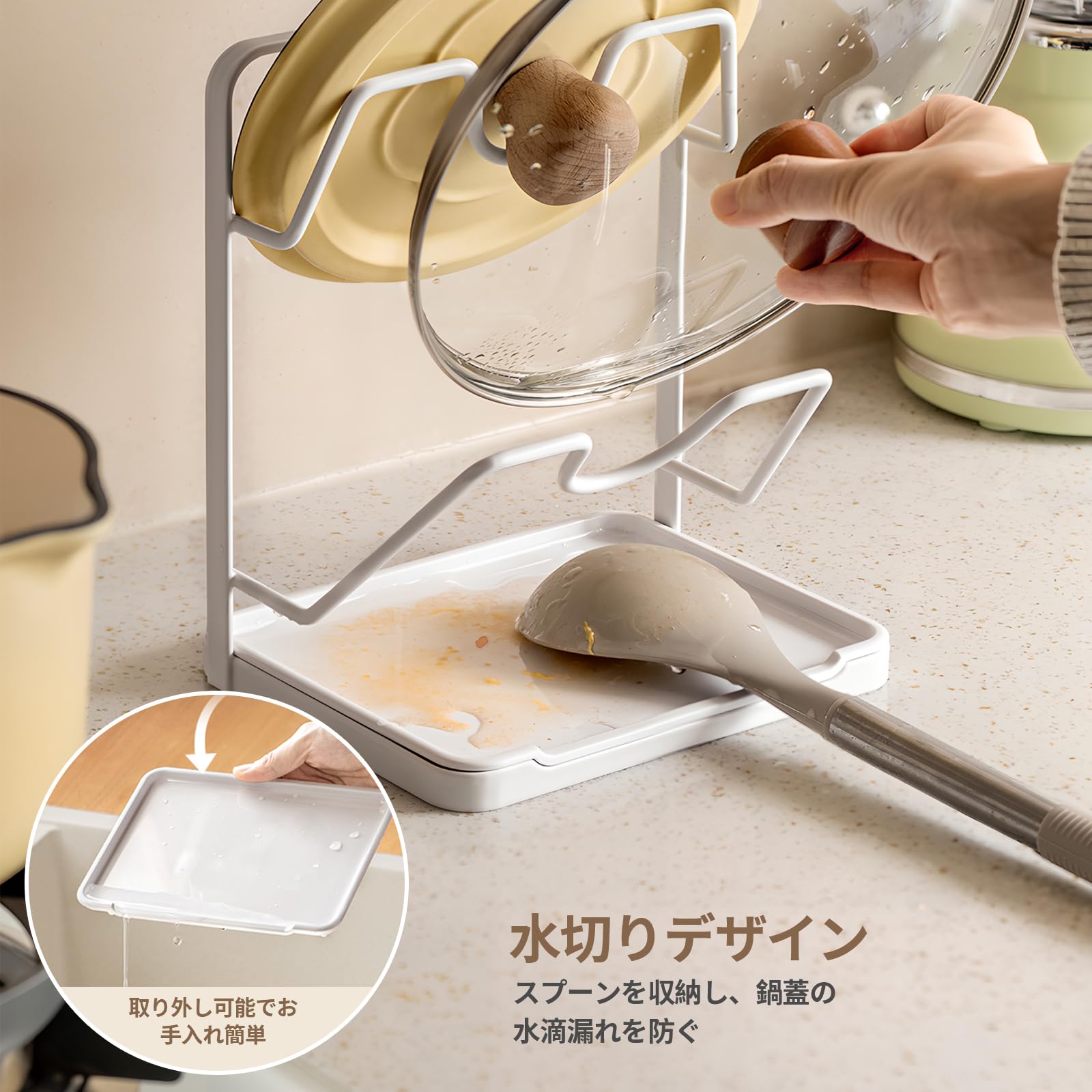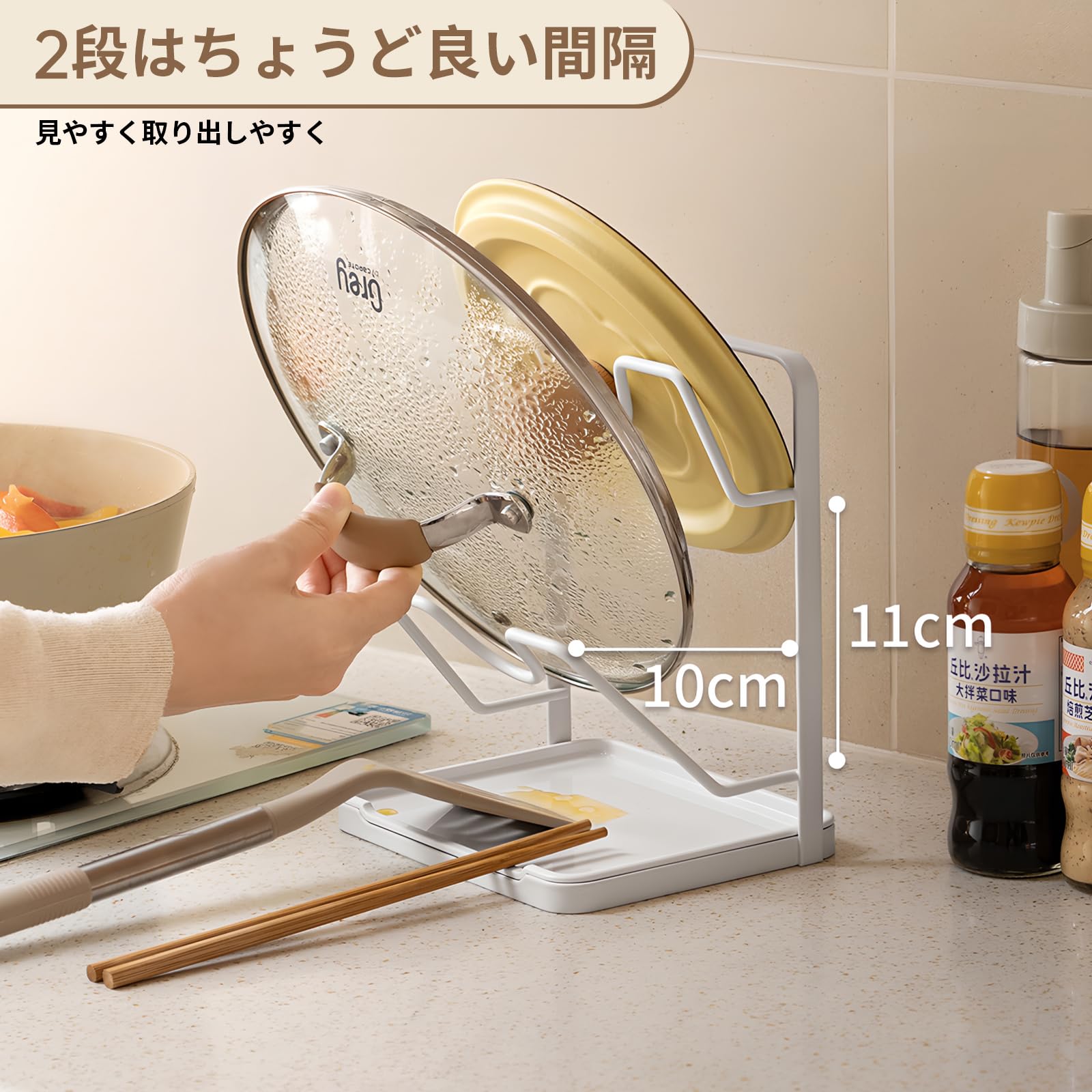 Toski 鍋蓋スタンド 2段 鍋蓋置き 取り外し可能 水受けトレー付き なべぶたスタンド 清潔便利 蓋立て お玉置き 設置不要 安定性 多機能 鍋蓋ラック 器具 収納 キッチン ツール立て 鍋蓋ホルダー ホワイト
