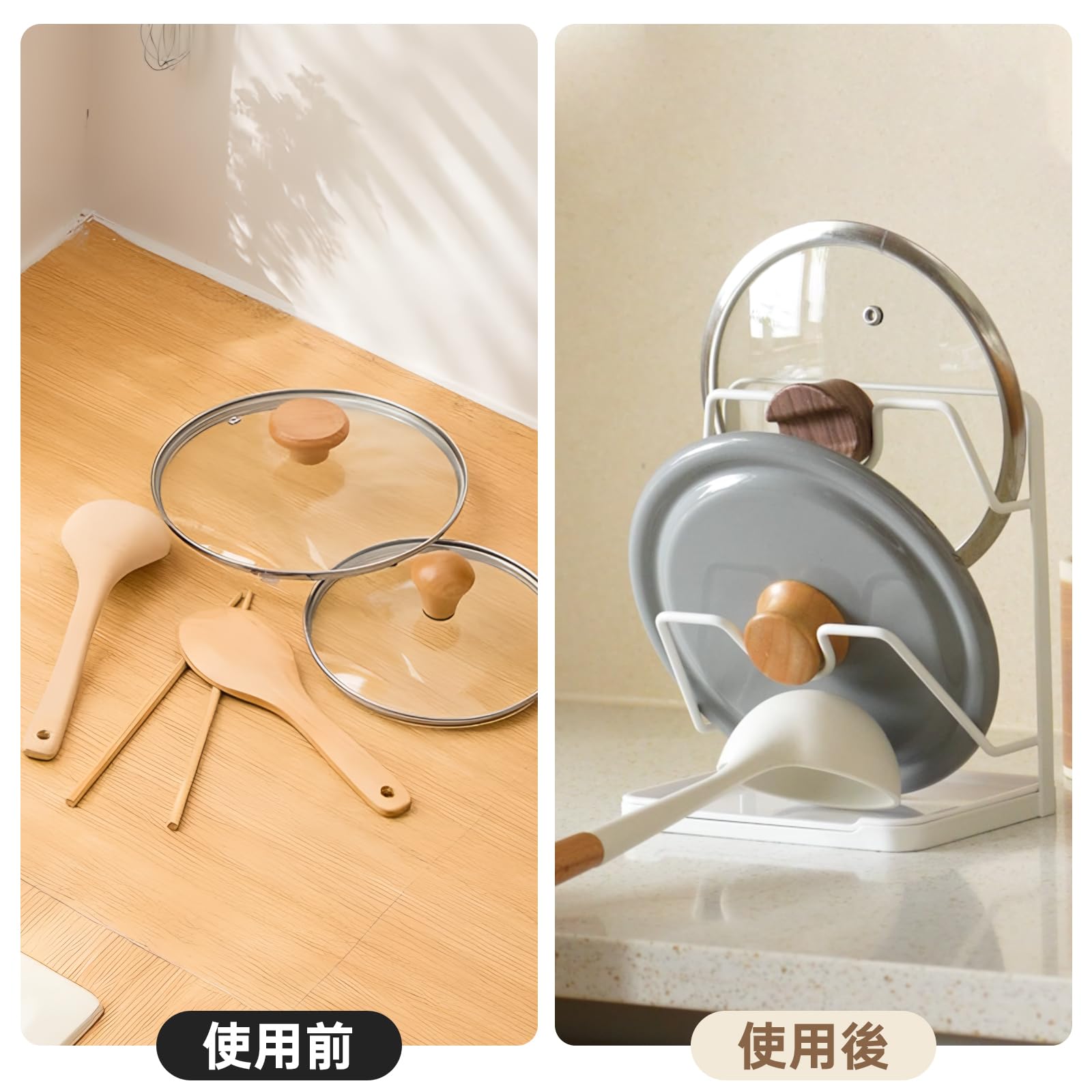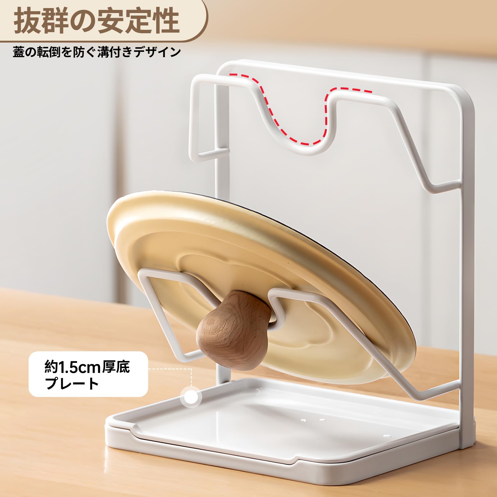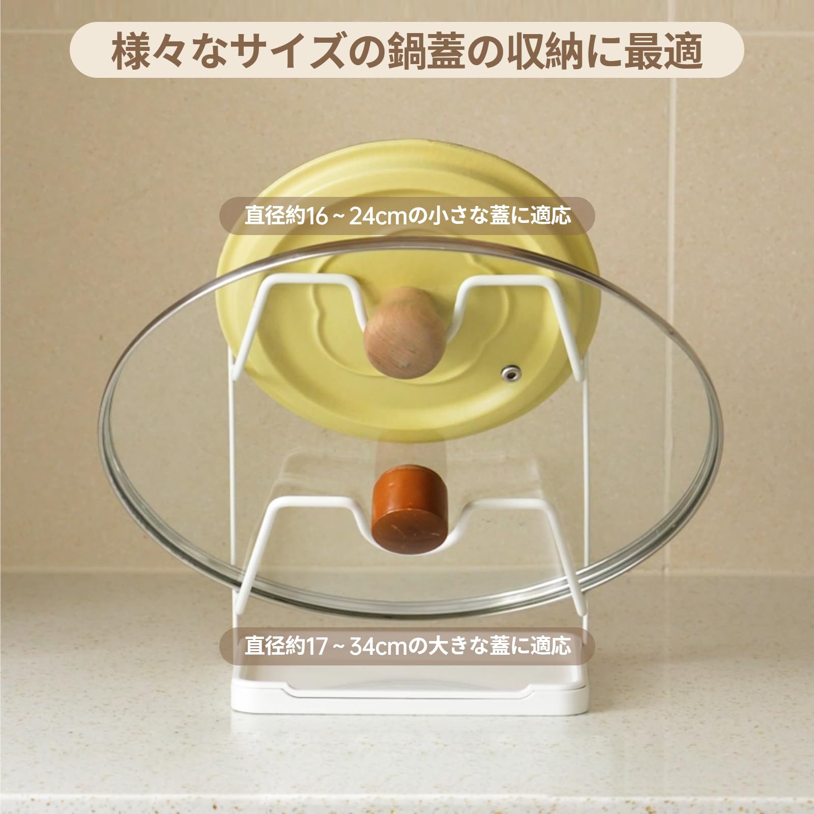 Toski 鍋蓋スタンド 2段 鍋蓋置き 取り外し可能 水受けトレー付き なべぶたスタンド 清潔便利 蓋立て お玉置き 設置不要 安定性 多機能 鍋蓋ラック 器具 収納 キッチン ツール立て 鍋蓋ホルダー ホワイト