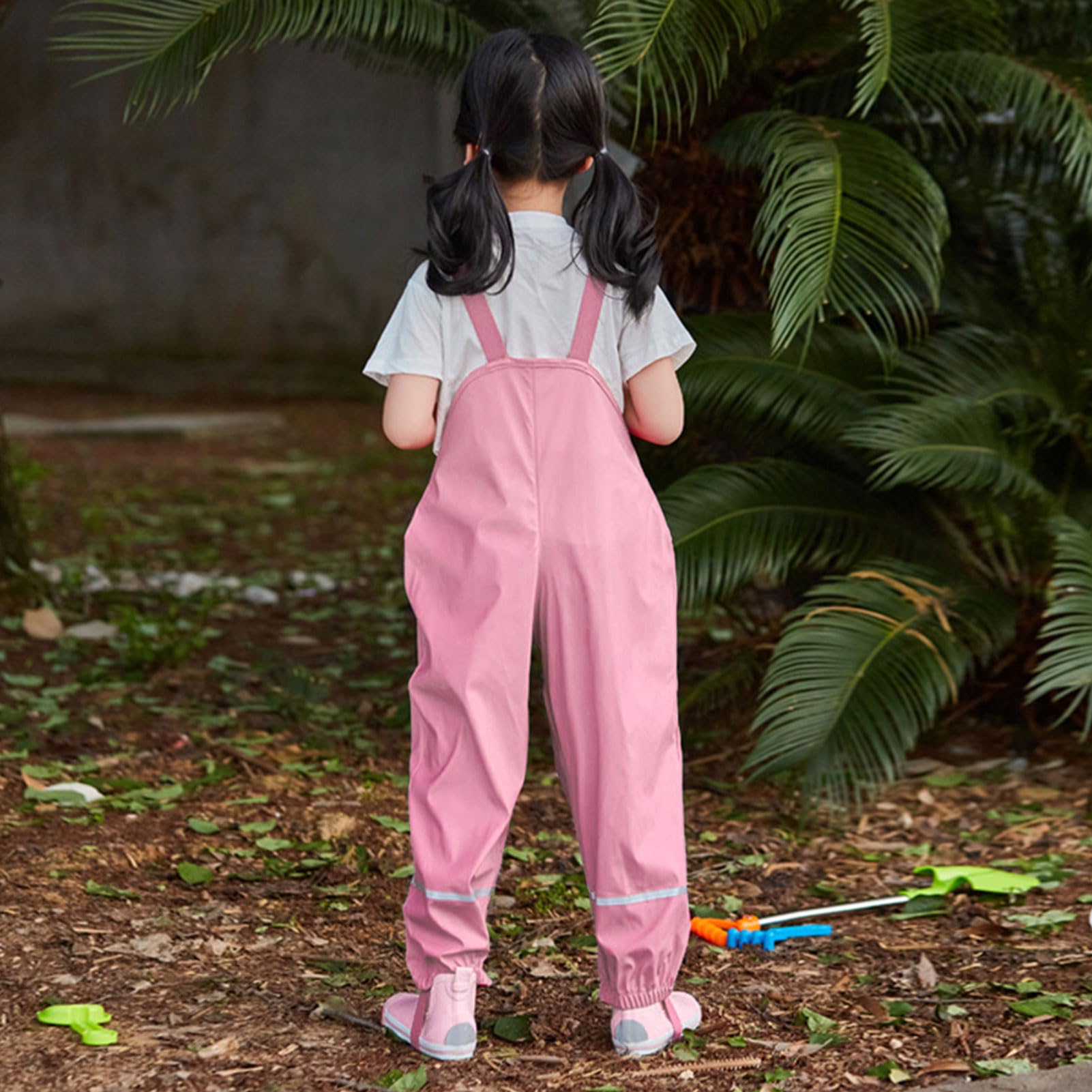 [Formemory] キッズお砂場着 PU防水オーバーオール 春夏用レインウェア サロペット ロングパンツ ズボン レインパンツ プレイウェア 幼稚園子供 小学生向け 透湿防水 防汚 アウトドア対応 レインスーツ 軽量設計 反射テープ付き