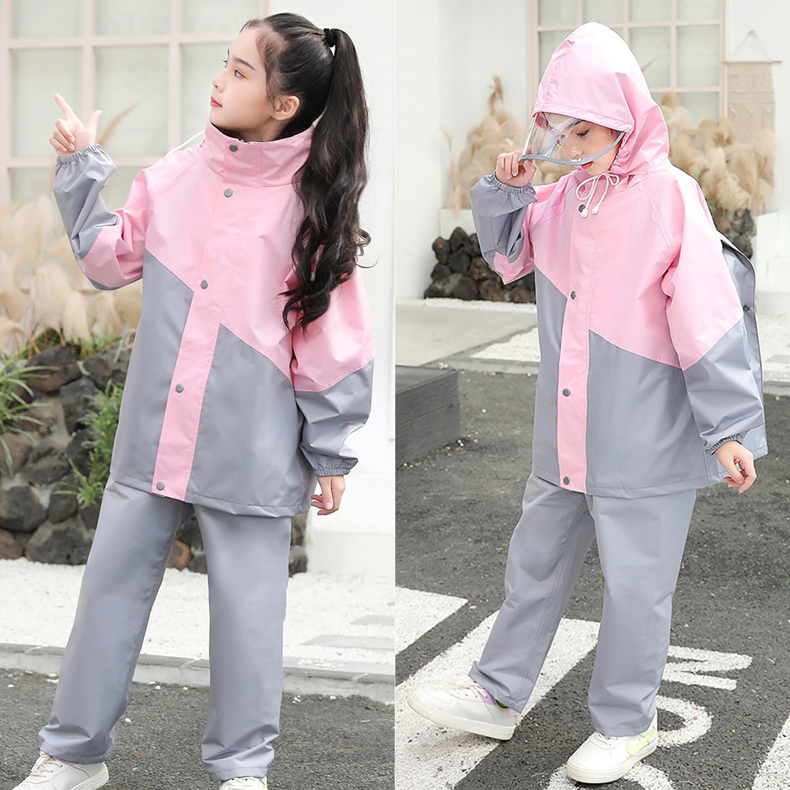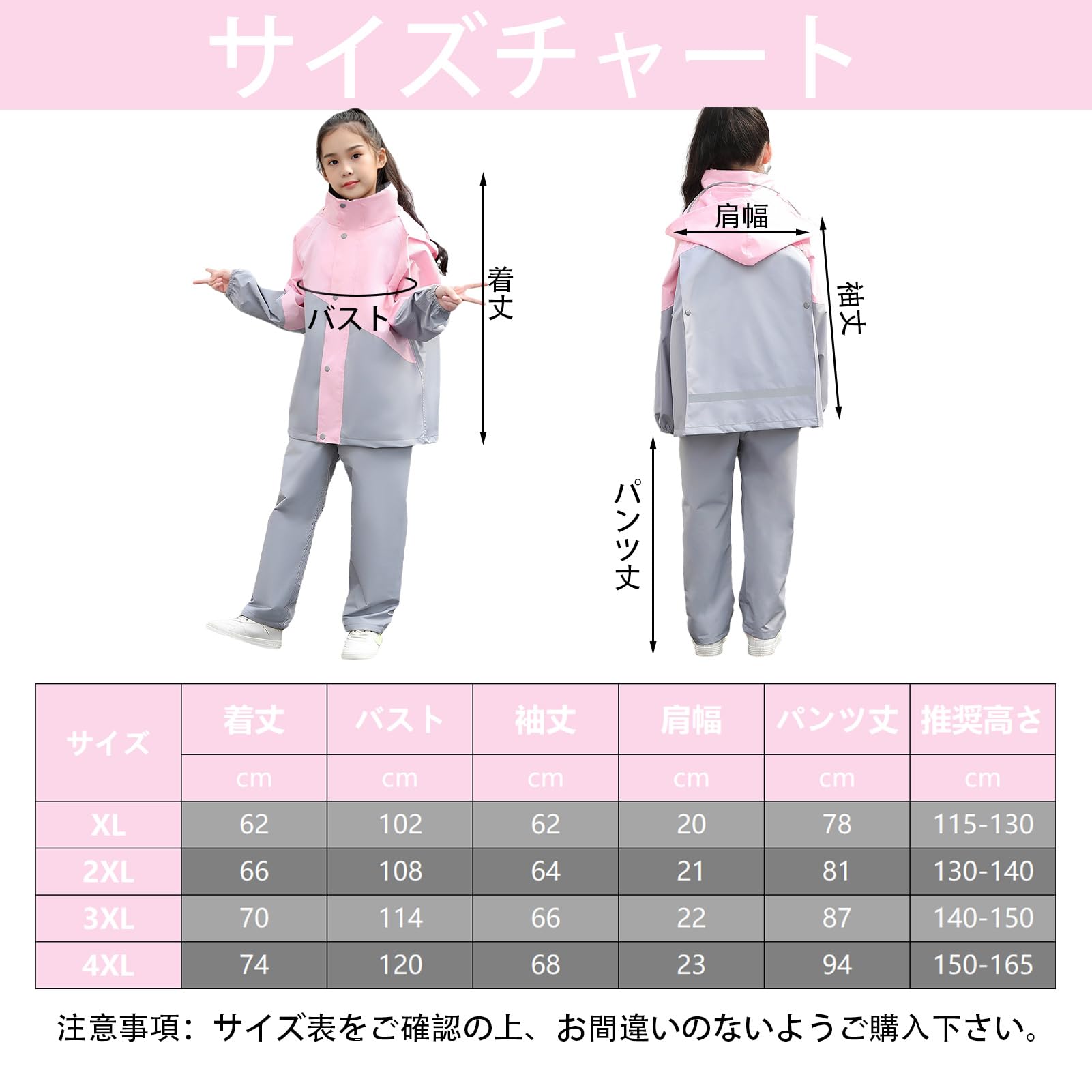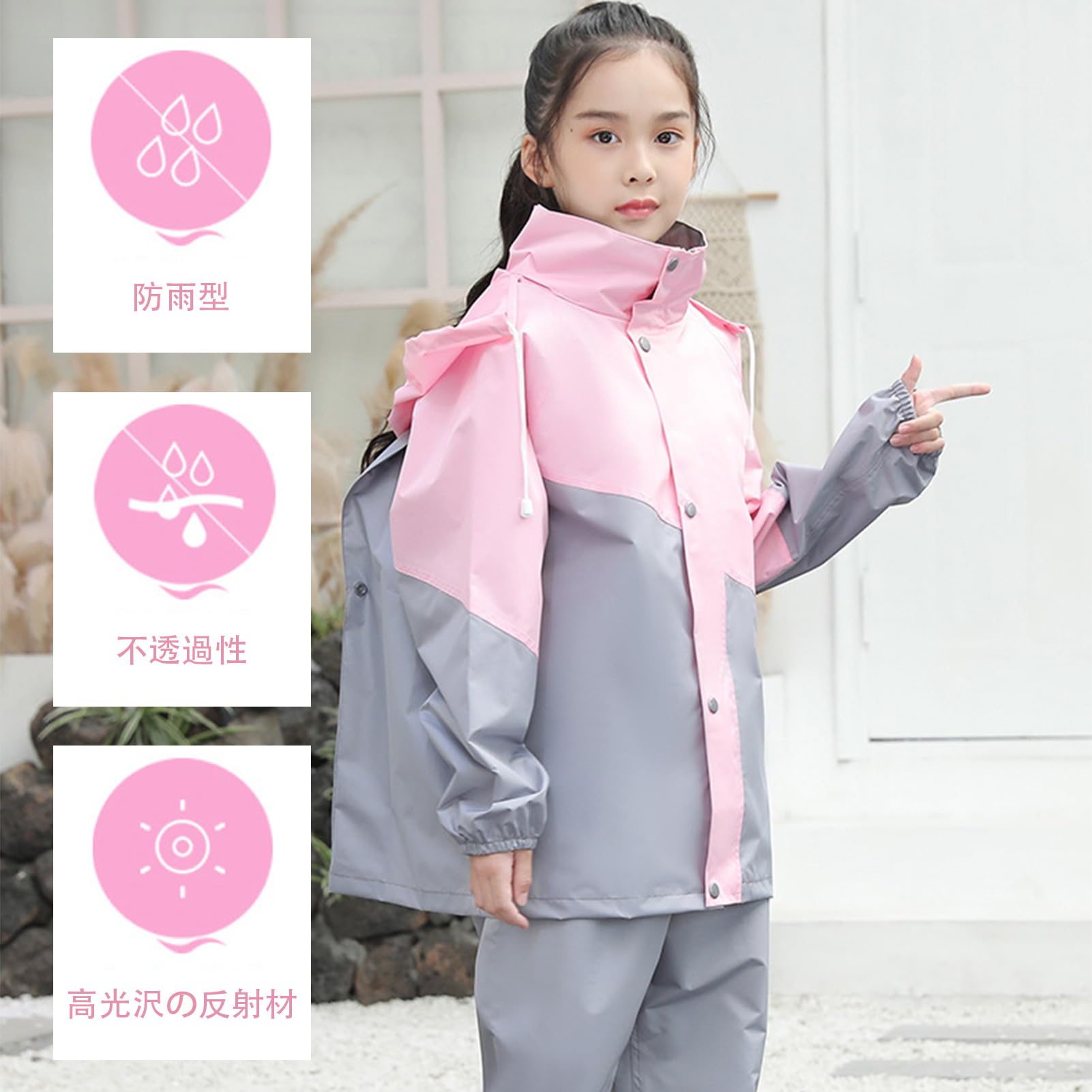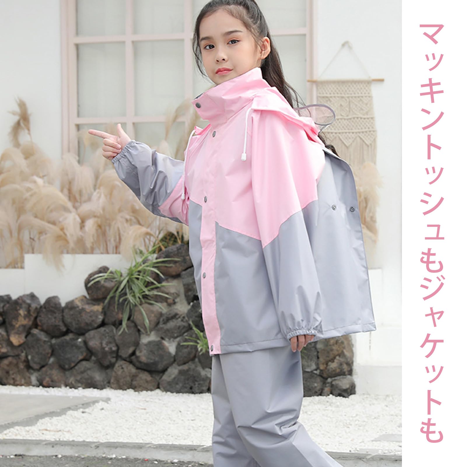 [Formemory] レインコート キッズ 上下セット ポンチョ レインスーツ 子供 女の子 男の子 カッパ子供 ゴム付きの袖 ランドセル対応 透明窓付き 防風 防水ハイネック 通学 子供用 雨具 遠足 梅雨対策 携帯ポーチ付き 雨具