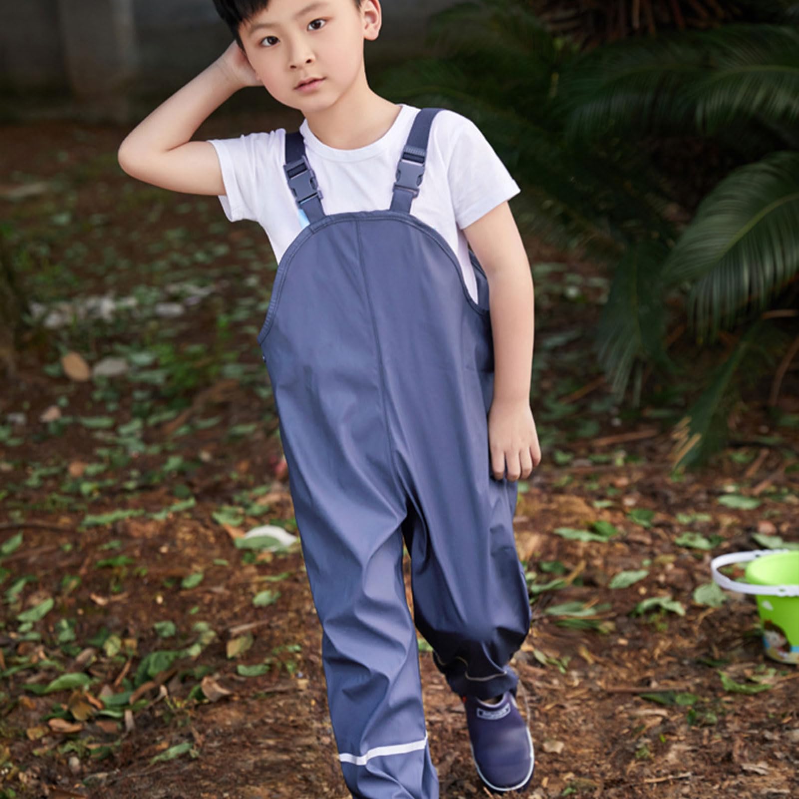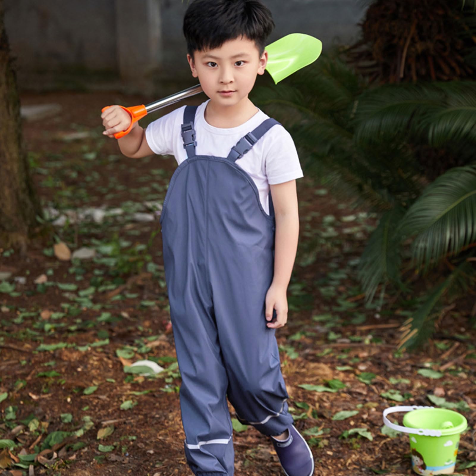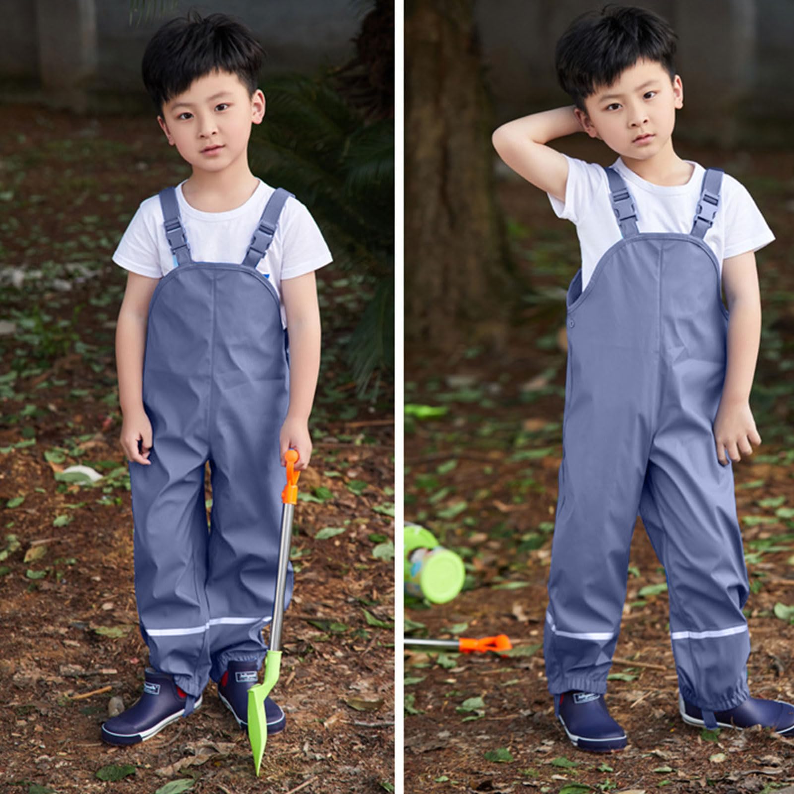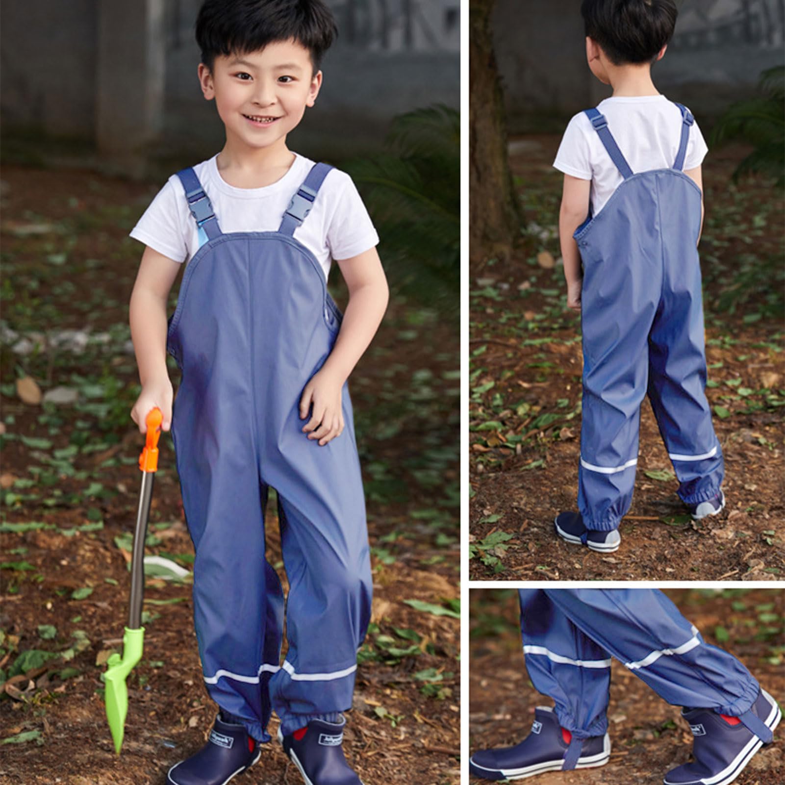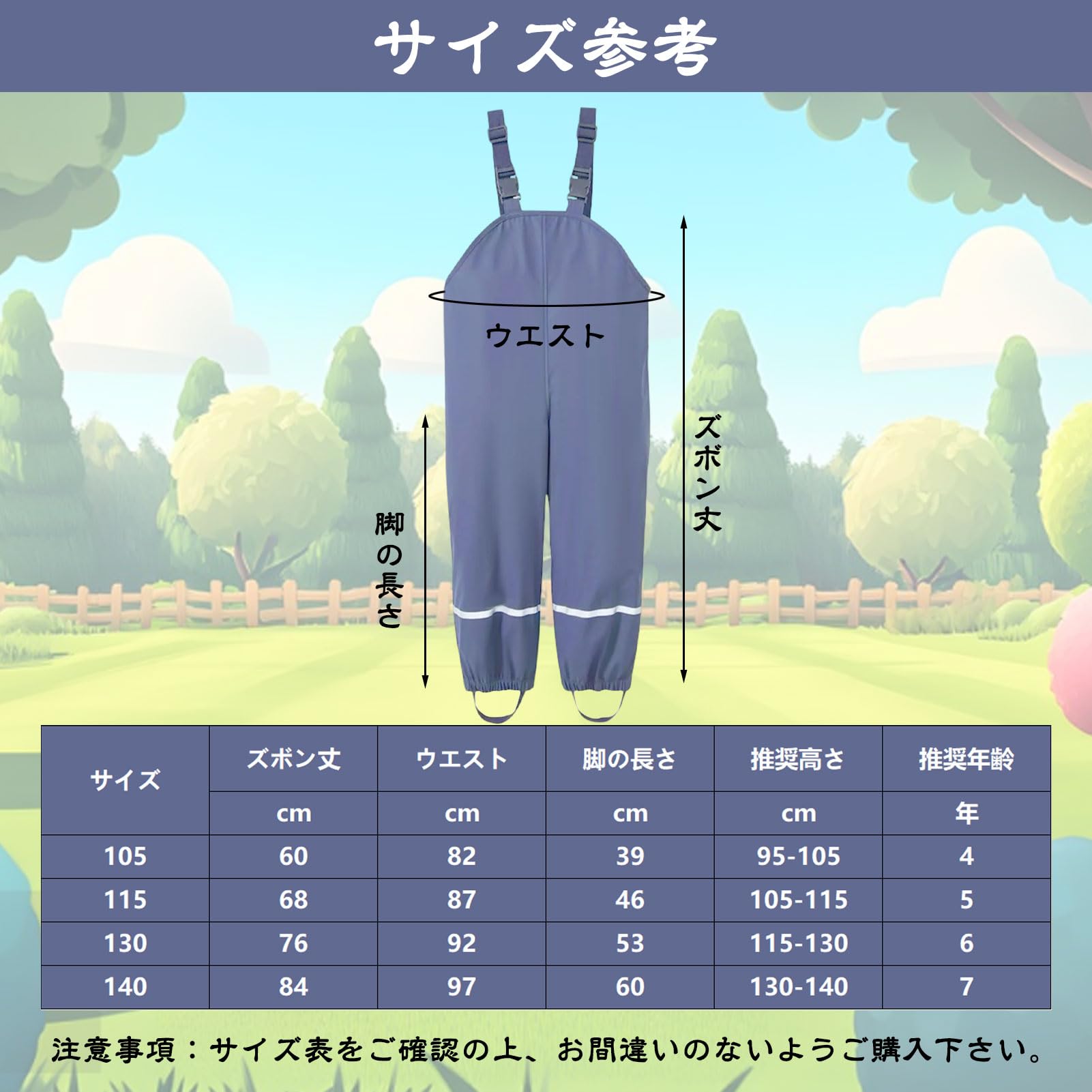 [Formemory] キッズお砂場着 PU防水オーバーオール 春夏用レインウェア サロペット ロングパンツ ズボン レインパンツ プレイウェア 幼稚園子供 小学生向け 透湿防水 防汚 アウトドア対応 レインスーツ 軽量設計 反射テープ付き