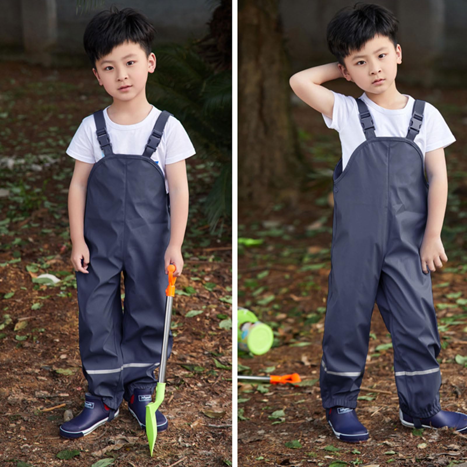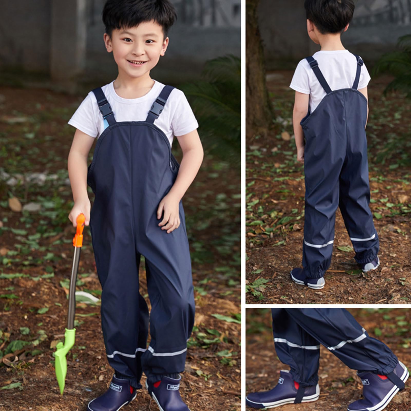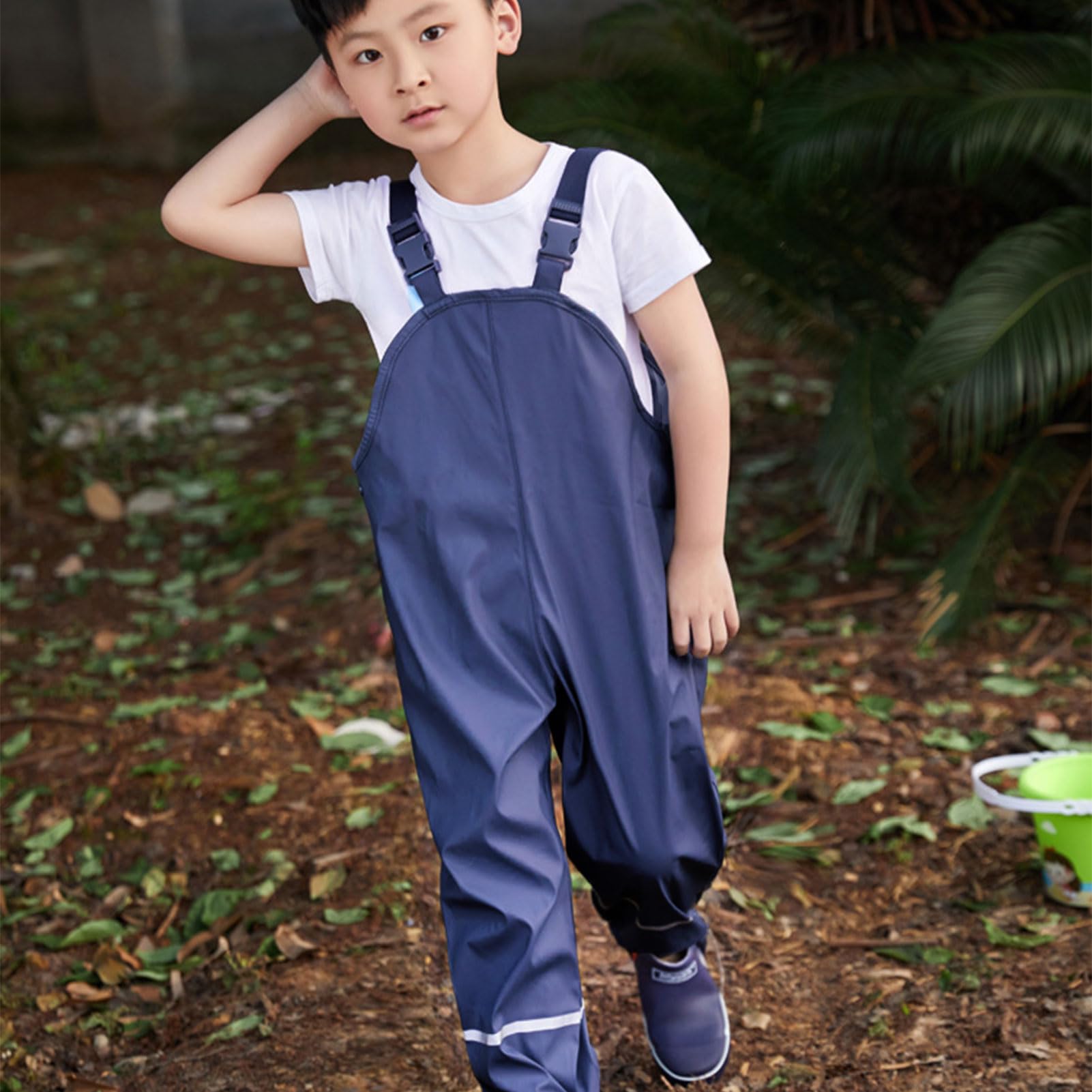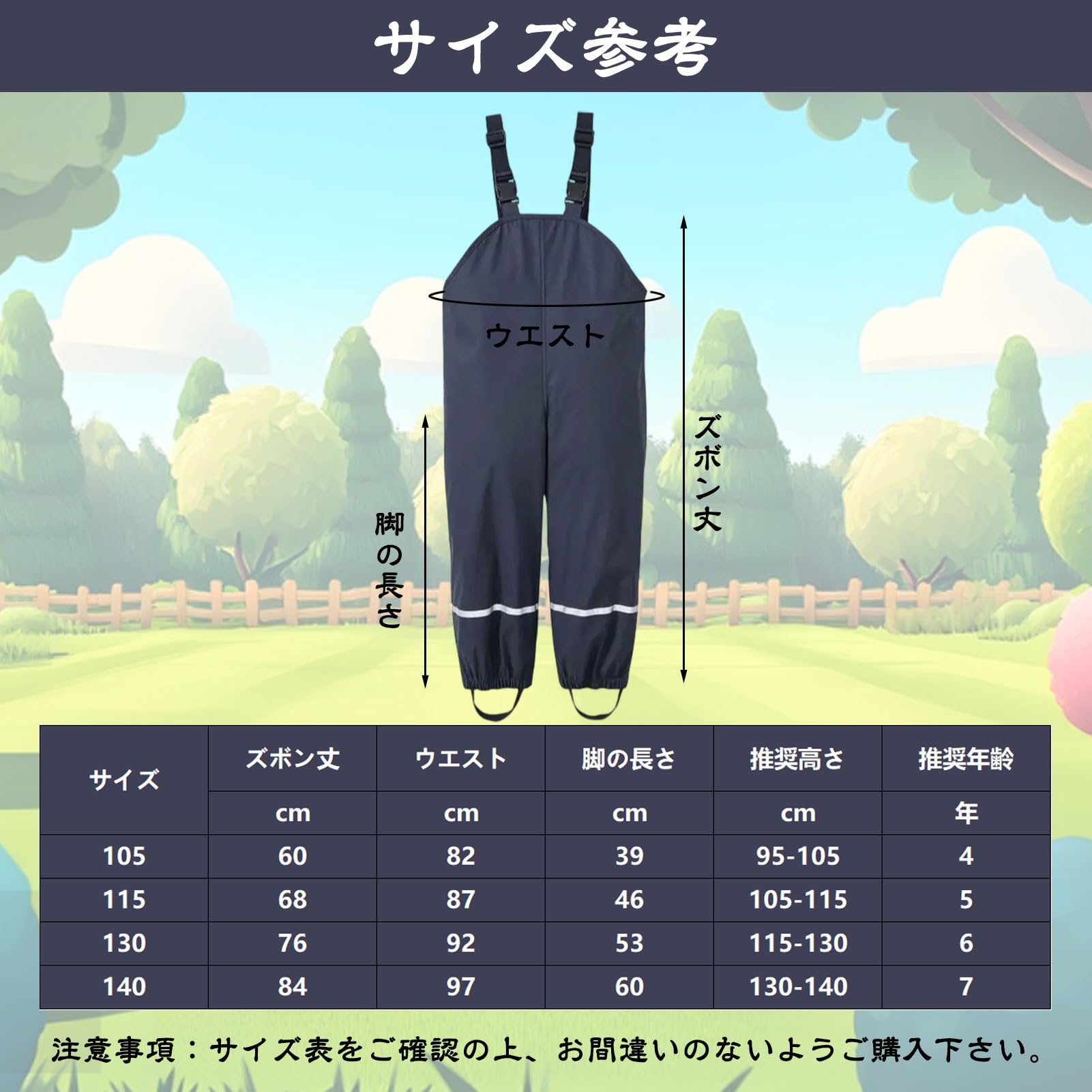 [Formemory] キッズお砂場着 PU防水オーバーオール 春夏用レインウェア サロペット ロングパンツ ズボン レインパンツ プレイウェア 幼稚園子供 小学生向け 透湿防水 防汚 アウトドア対応 レインスーツ 軽量設計 反射テープ付き