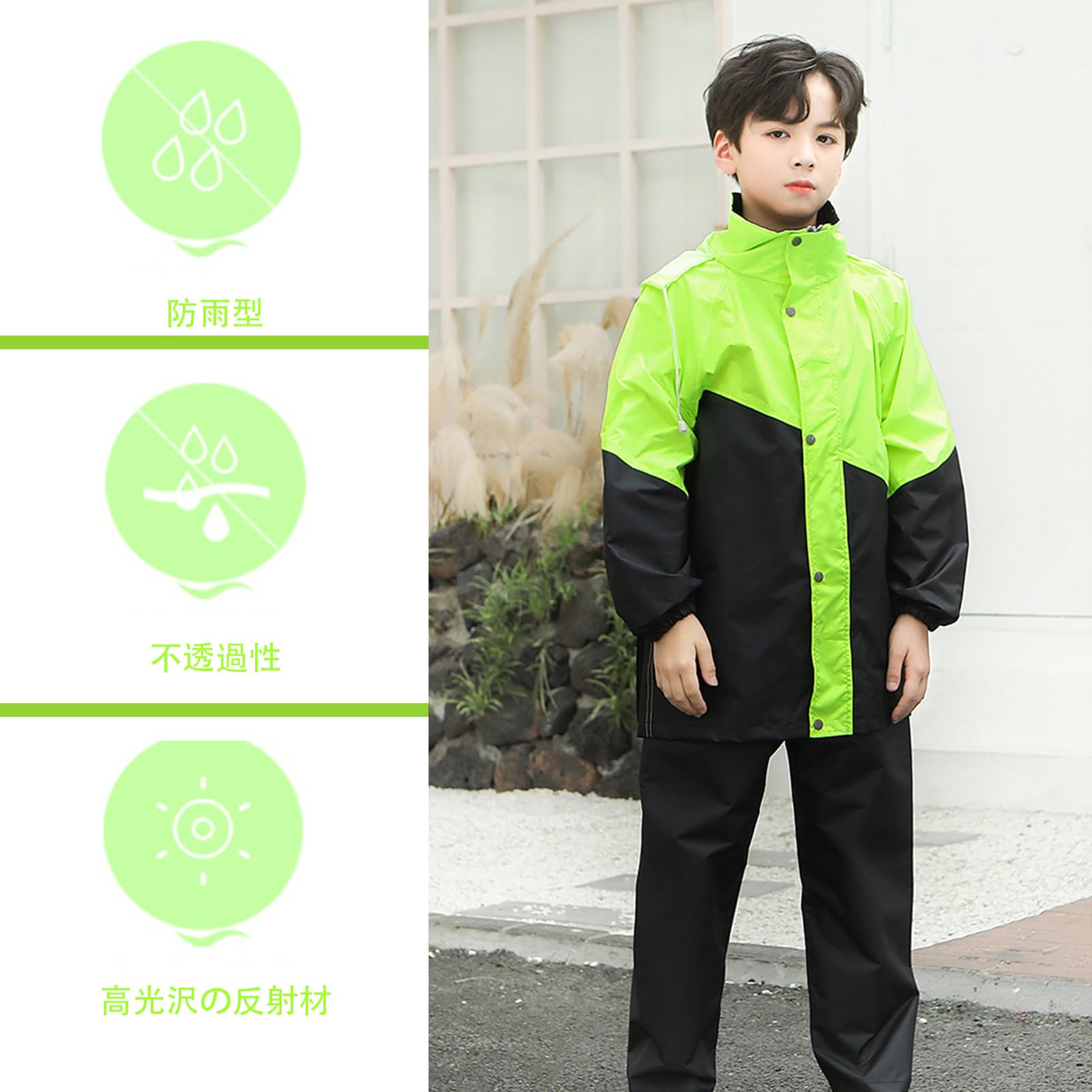 [Formemory] レインコート キッズ ポンチョ レインスーツ 女の子 男の子 カッパ子供 レインコート 雨具 レインウェア レイングッズ 自転車通学 徒歩用 防風 防水 男女兼用 撥水加工 軽量設計 防水ハイネック 通学 3色
