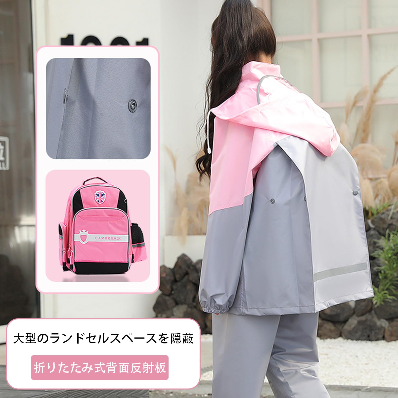 [Formemory] レインコート キッズ 上下セット ポンチョ レインスーツ 子供 女の子 男の子 カッパ子供 ゴム付きの袖 ランドセル対応 透明窓付き 防風 防水ハイネック 通学 子供用 雨具 遠足 梅雨対策 携帯ポーチ付き 雨具