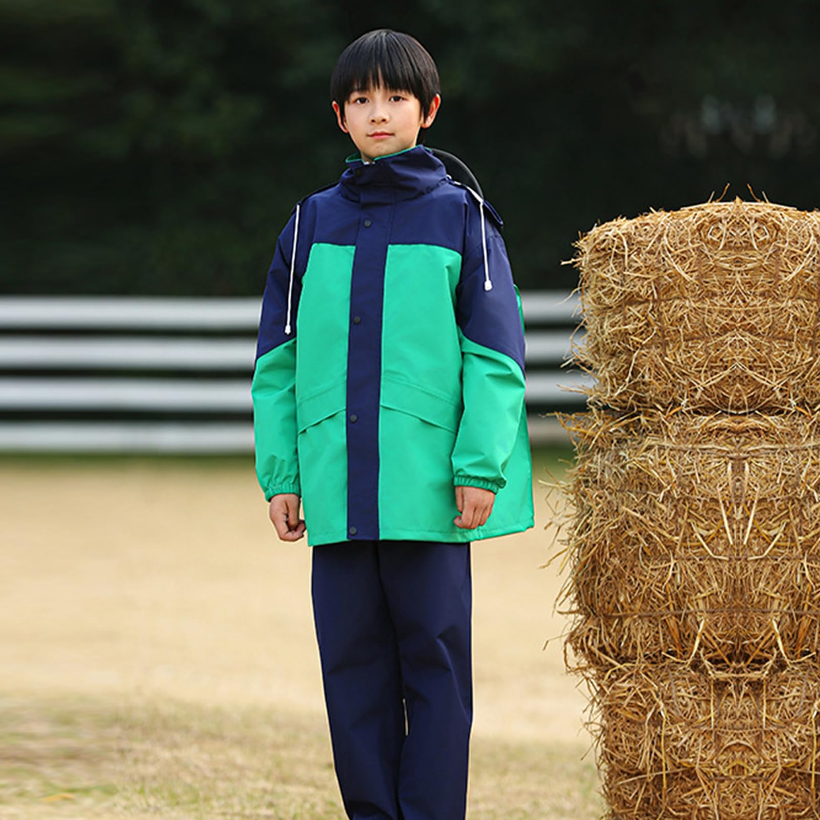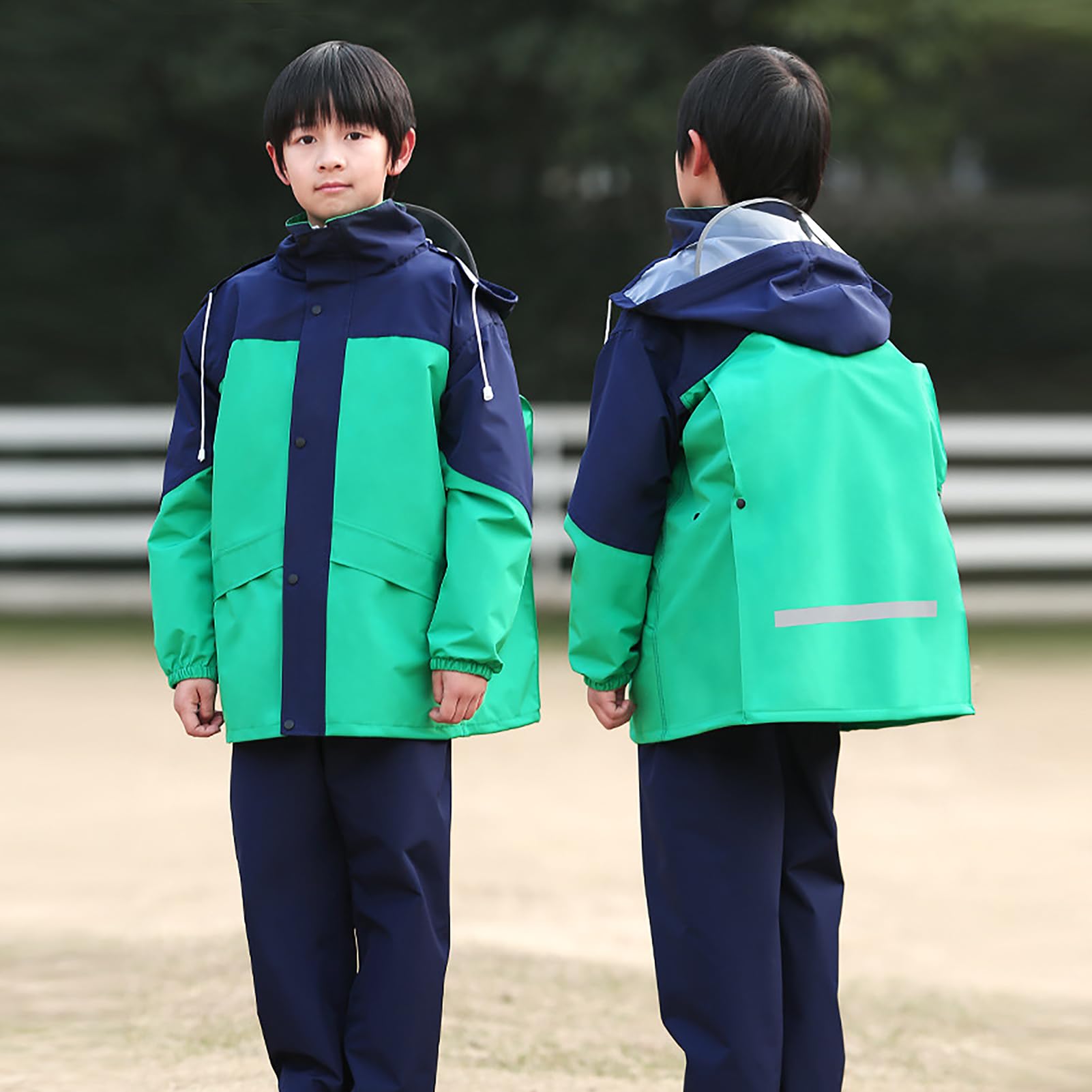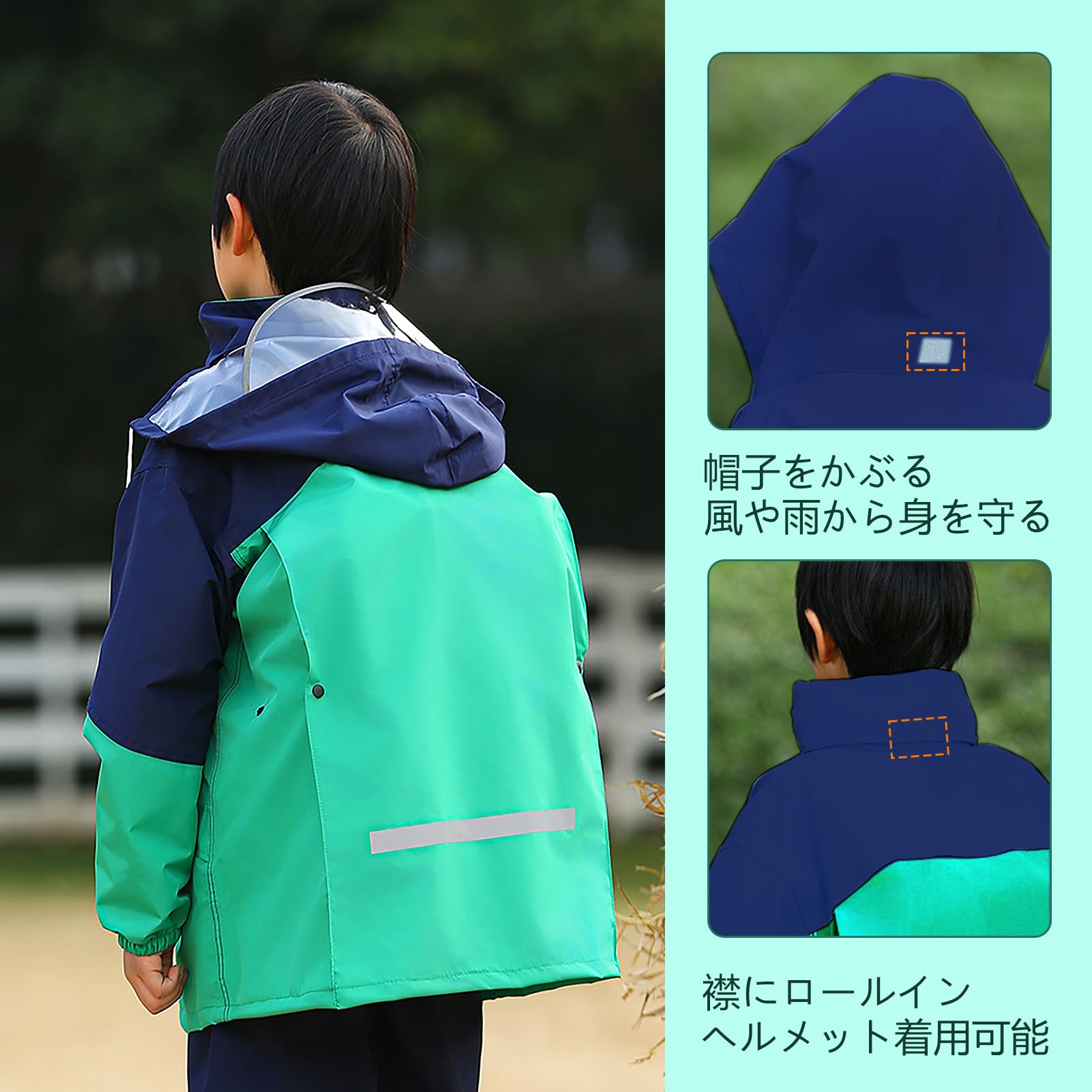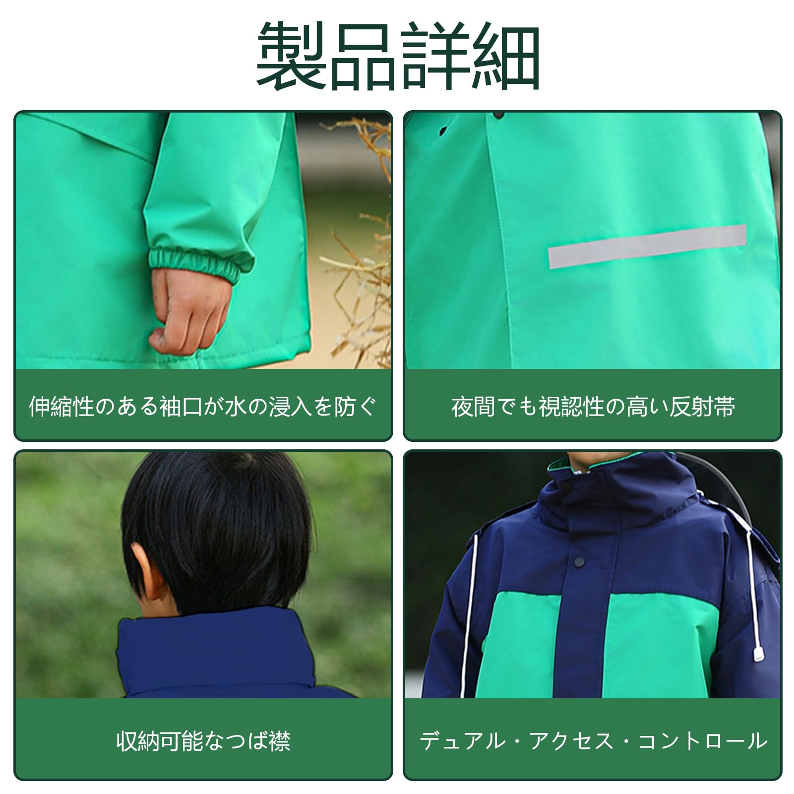 [Formemory] レインコート キッズ 上下セット ポンチョ レインスーツ 子供 女の子 男の子 カッパ子供 ゴム付きの袖 ランドセル対応 透明窓付き 防風 防水ハイネック 通学 子供用 雨具 遠足 梅雨対策 携帯ポーチ付き 雨具