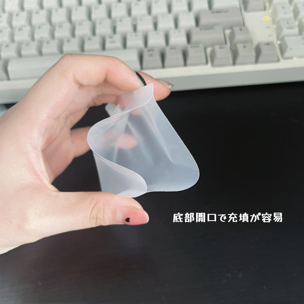 【安全素材で旅行も安心】PE/PET製の旅行用パウチ。無毒・無臭で耐温-20~60℃、機内携帯可能。敏感肌向け化粧水・美容液の分装に最適。