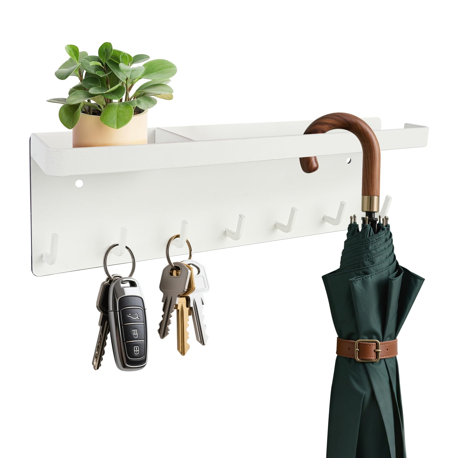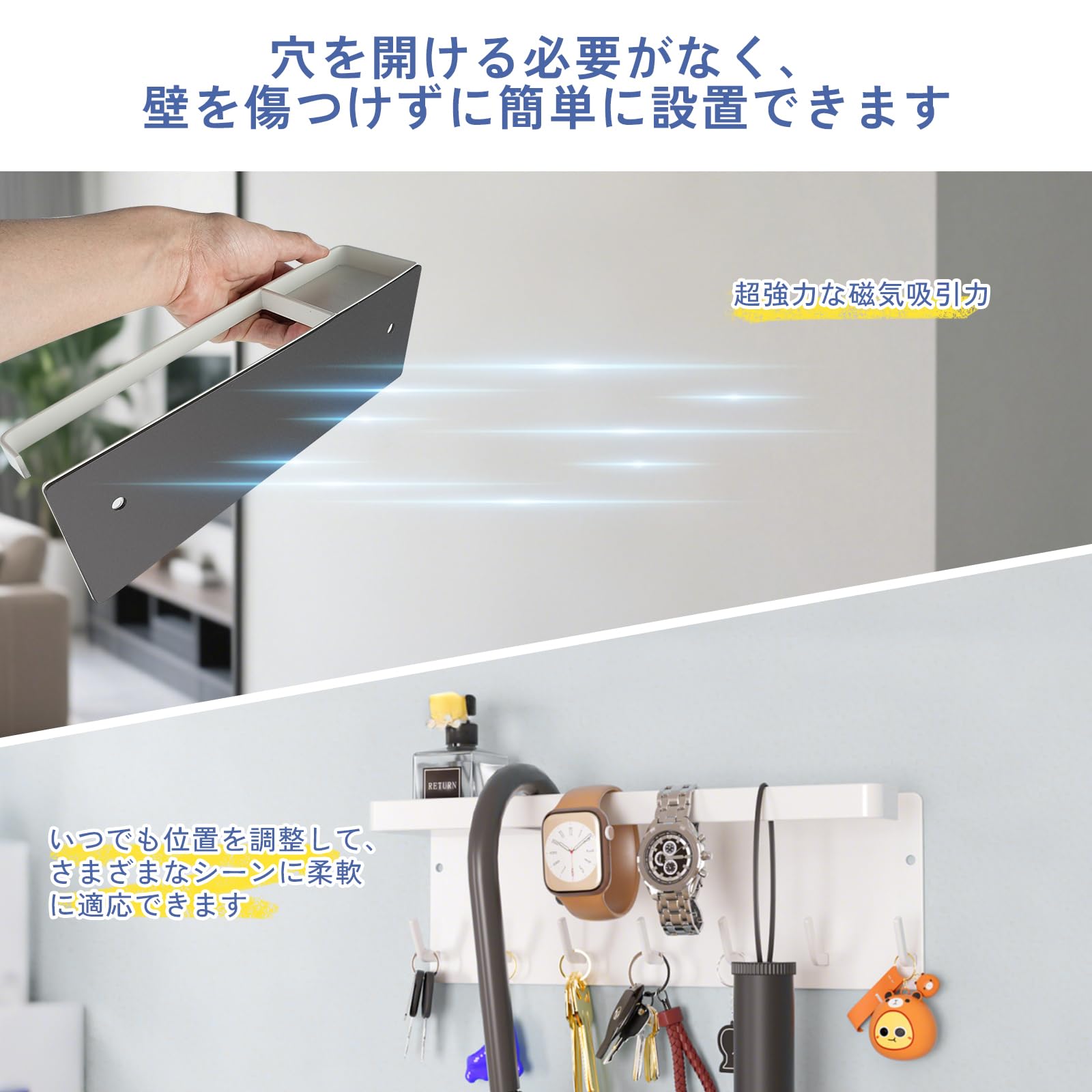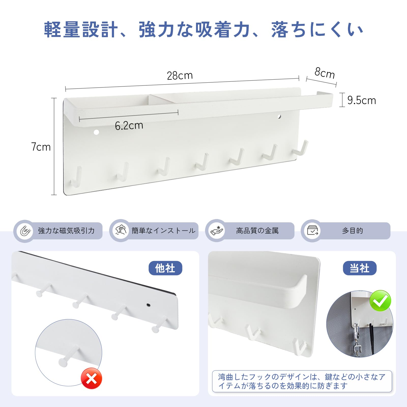 MLOQI アンブレラホルダー マグネット収納 マグネットトレー トレー付き 玄関収納 傘立て 傘立マグネット 傘収納 傘スタンド 傘ホルダー 玄関マグネット 鍵置き玄関 フック付き 約W20XD7XH9.5cm ホワイト ブラック