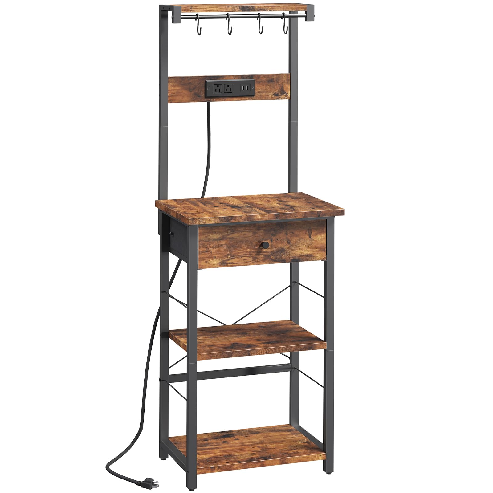 Ornestia レンジ上ラック 伸縮式 幅38~62cm調節 トースターラック 電子レンジ 台収納 キッチン収納 高耐荷設計 フック6つ付き 組み立て簡単 底部の引き出し可能 (ブラック)