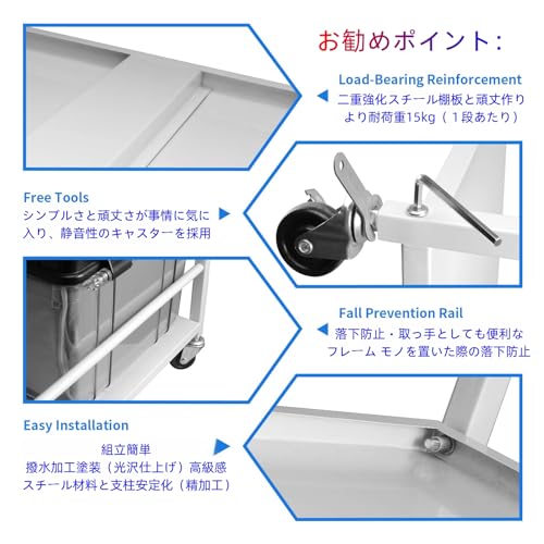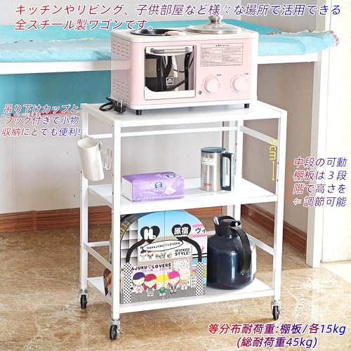 Secchuu キッチンワゴン スチール製ボデイ 3段タイプ 耐荷重45KG 幅45cm×奥行29cm×高さ75.5cm シンプルさ 収納ワゴン スチール製ボデイ キャスター付き スムース移動 小物収納 組立商品 (白色, A形 3段)