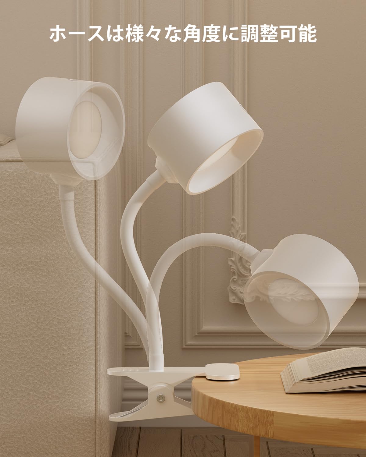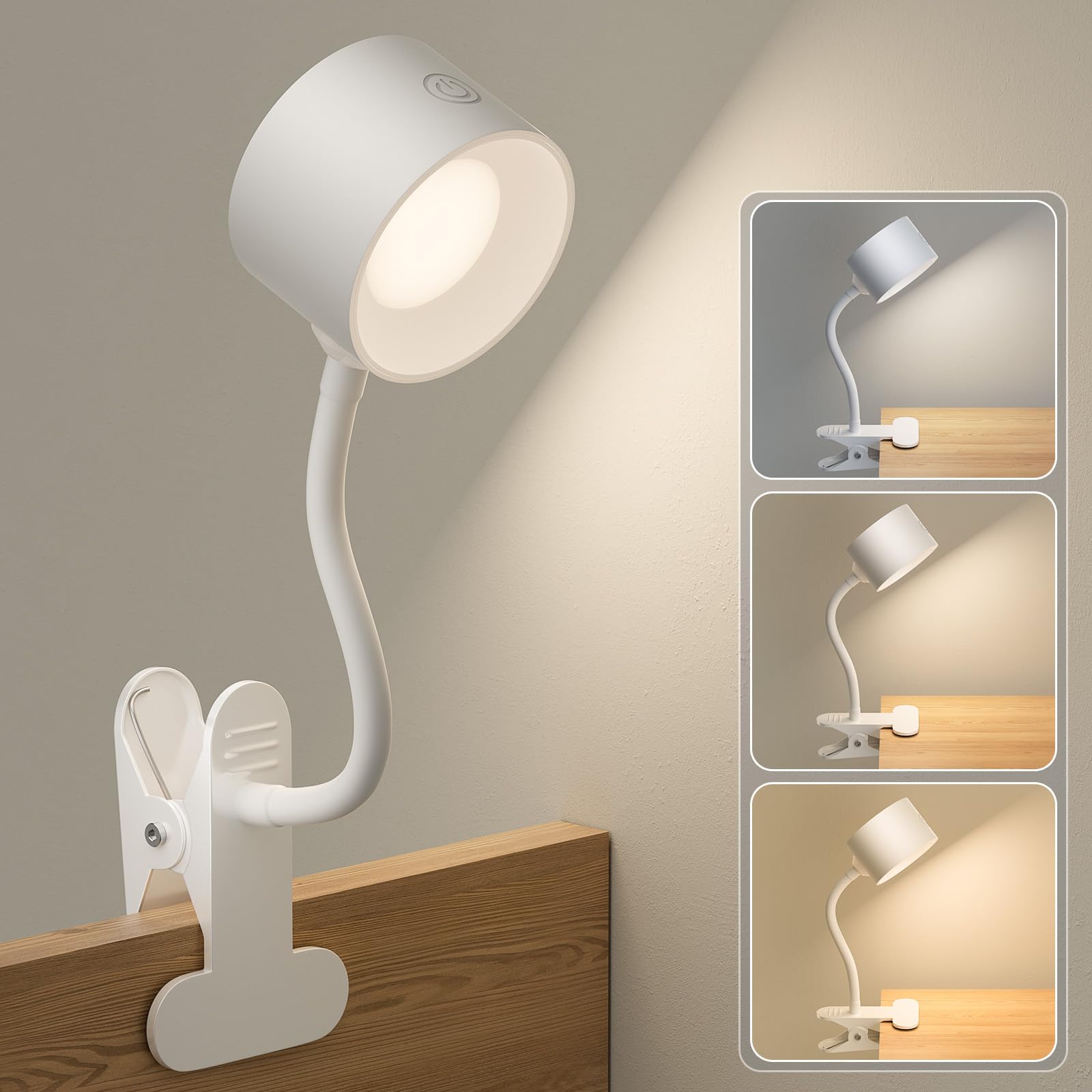 Jplednas クリップライト充電式 LED 読書灯 ベッドライト 作業灯 タッチ操作 調光調色 2600mAh大容量バッテリー 長時間照明(最高輝度 5 時間/最低 30 時間) コードレス 省エネ 目に優しい 無頻閃|Type-C充電|読書/ベッド/作業用 ホワイト