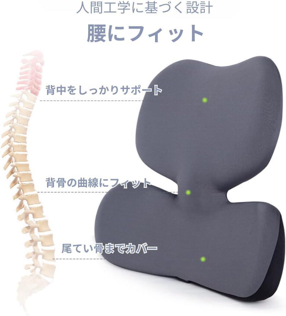ランバーサポートクッション 人間工学 TRAVEL EASE 低反発 コンフォート バックサポートクッション オフィスチェア用 肌に優しいカバー付き (ブラック)