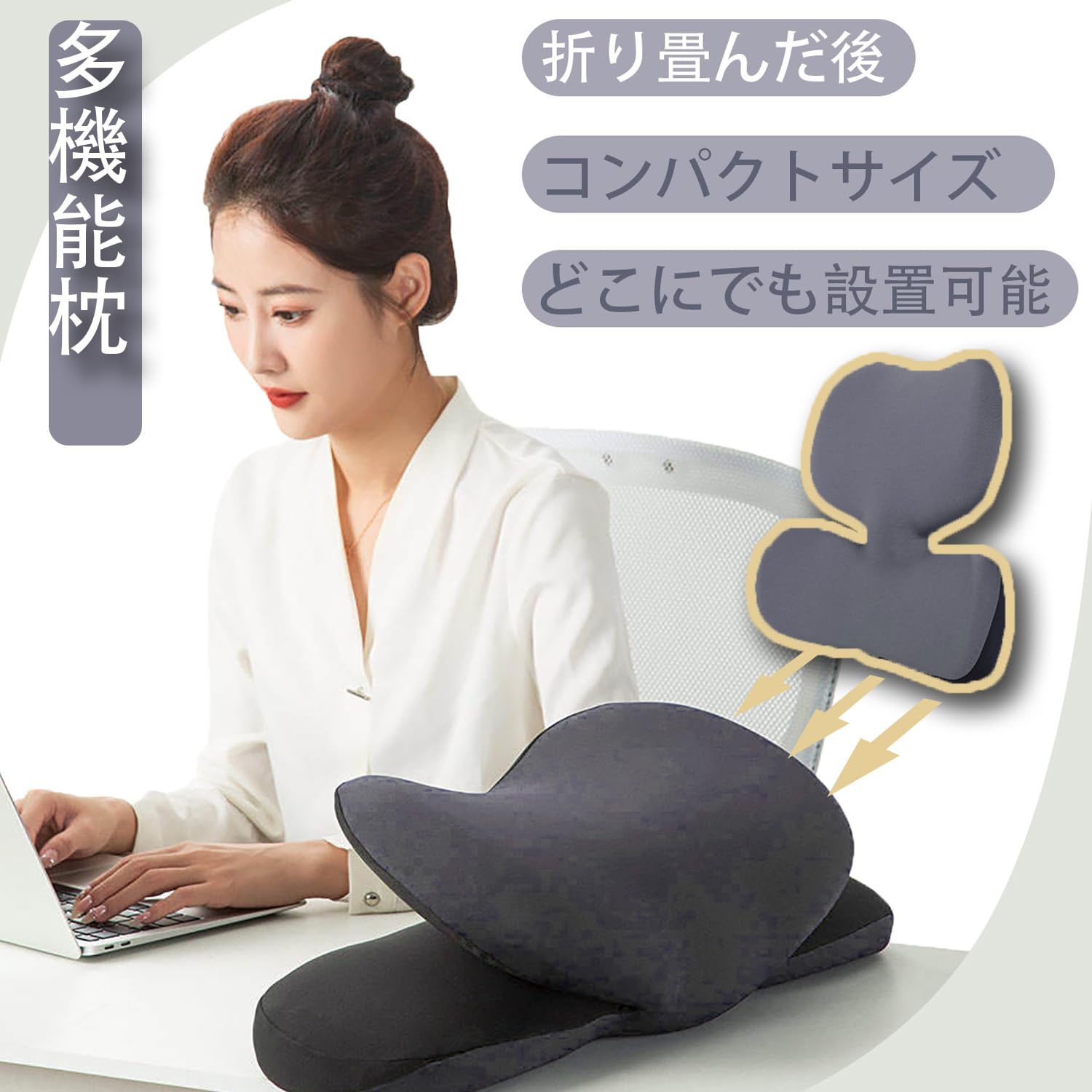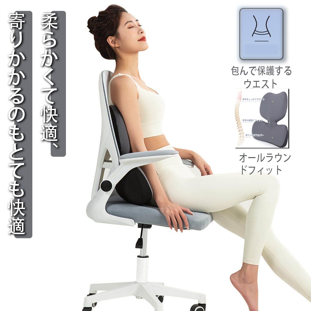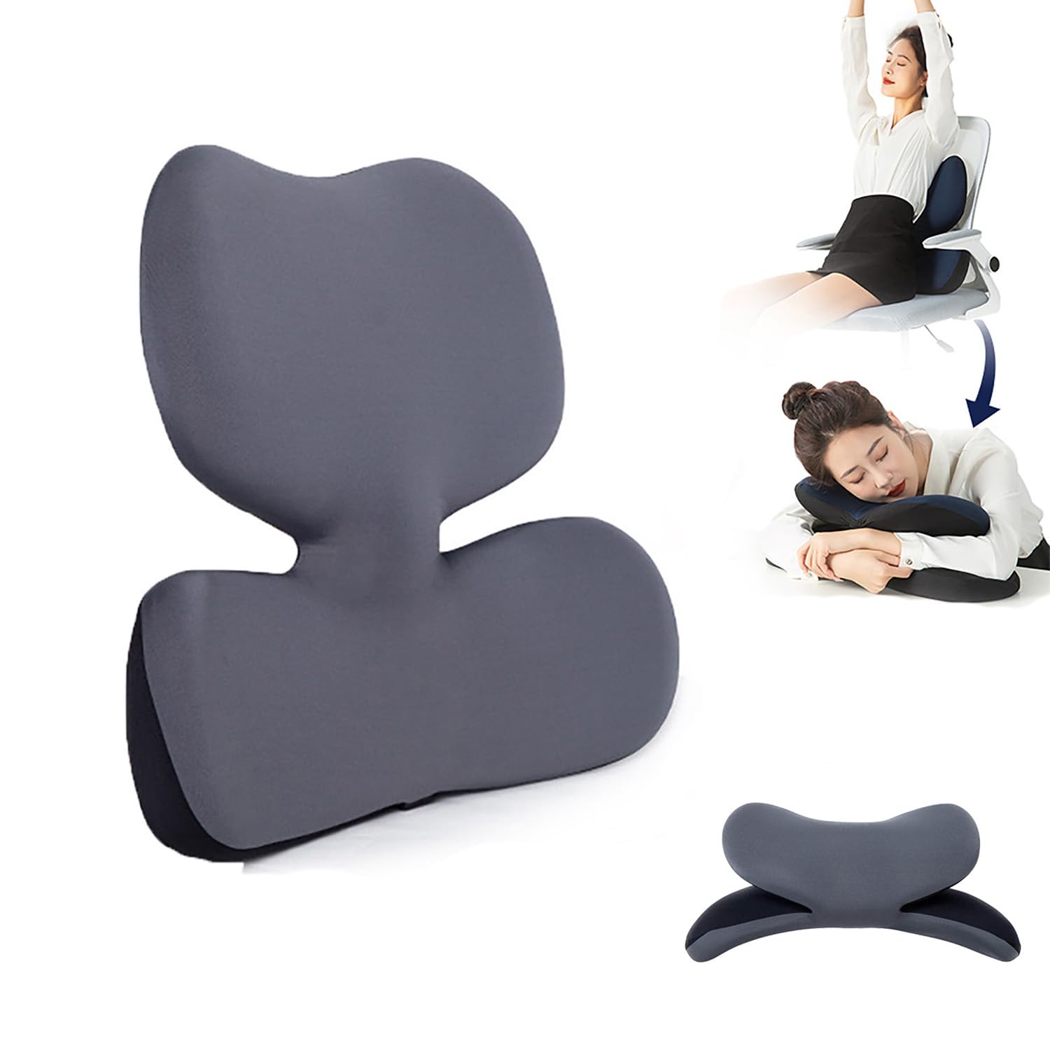 Aikenn 2-in-1 ランバーサポート枕と昼寝パッド、低反発素材、オフィスチェア用、ランバーサポート、2イン1ランバーピロー、メモリーフォーム昼寝クッション、オフィスチェアバックサポート