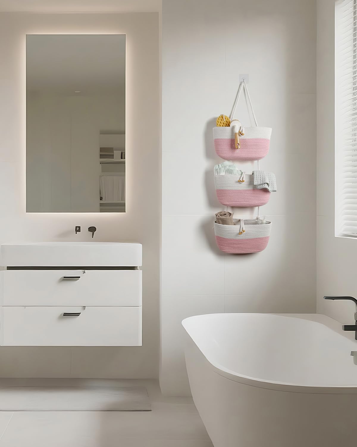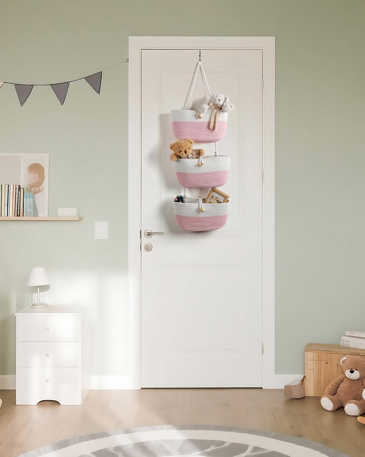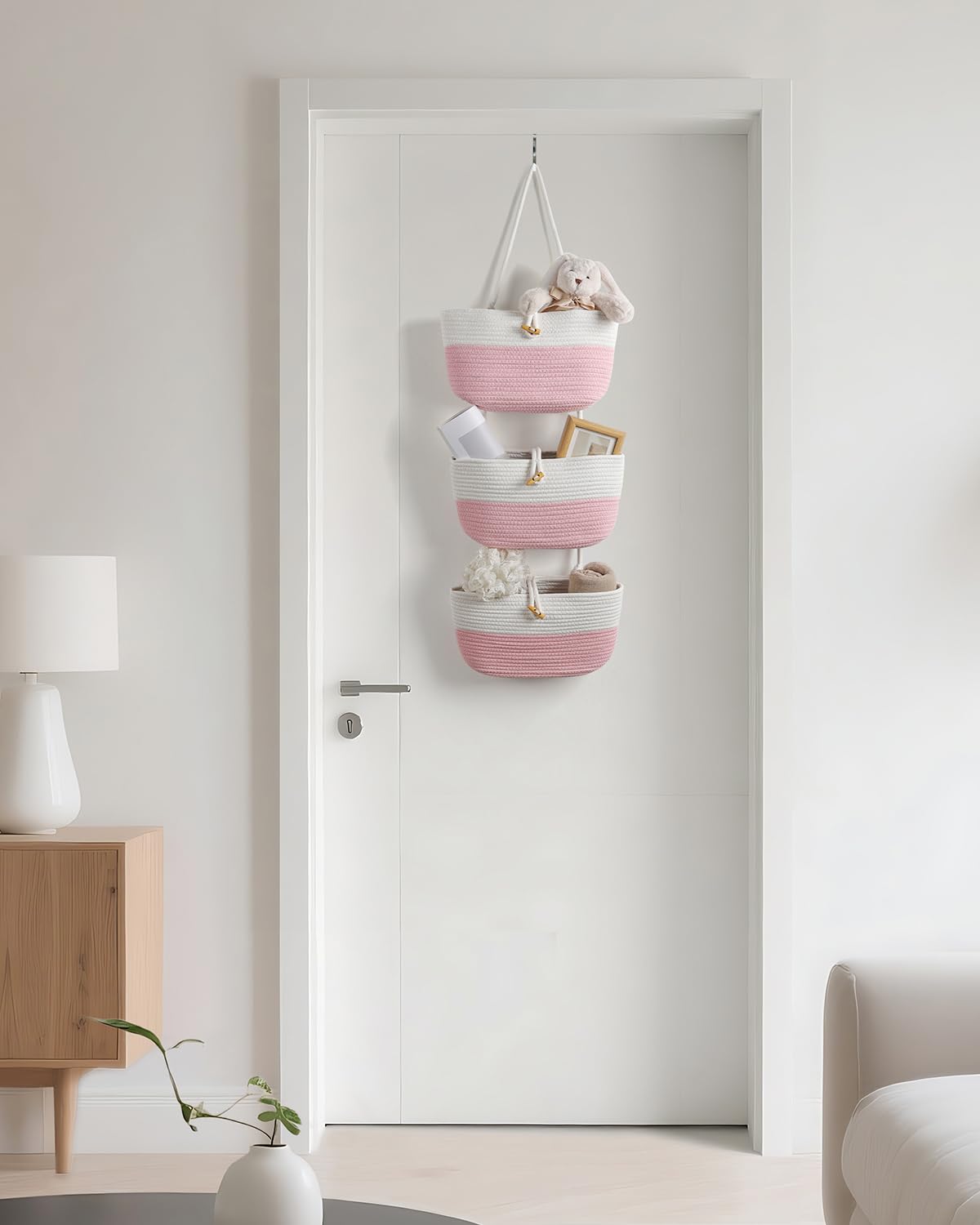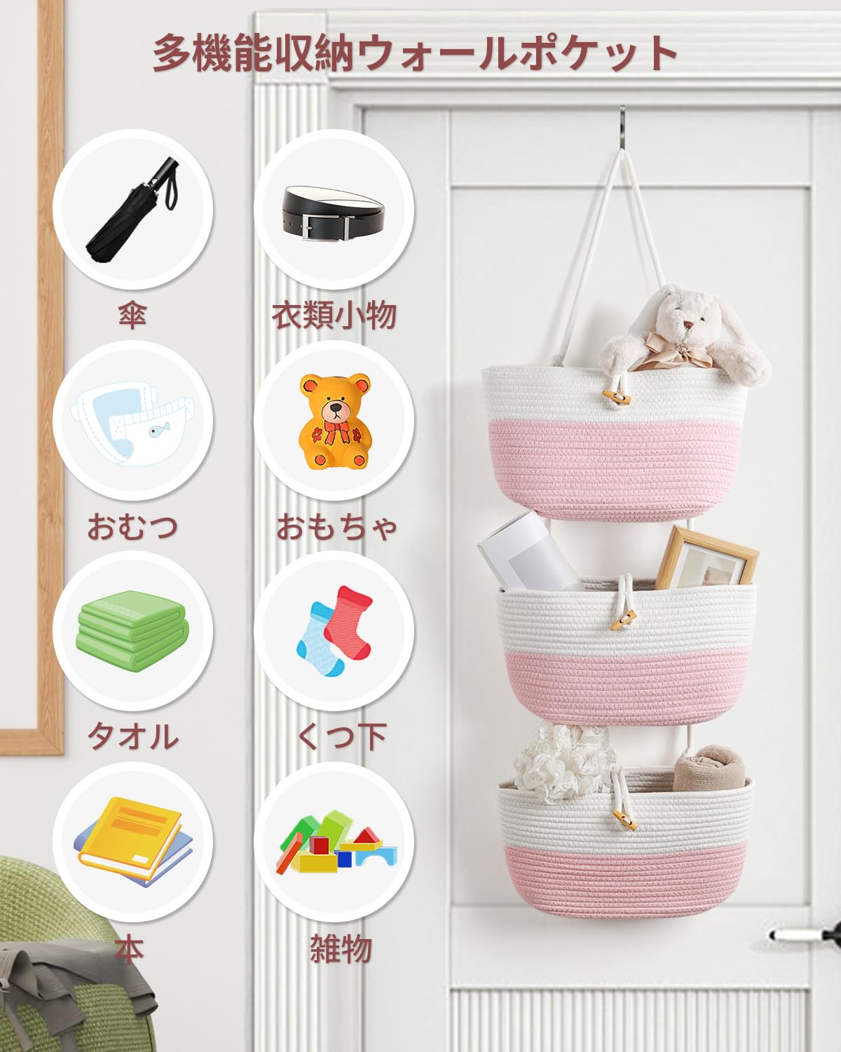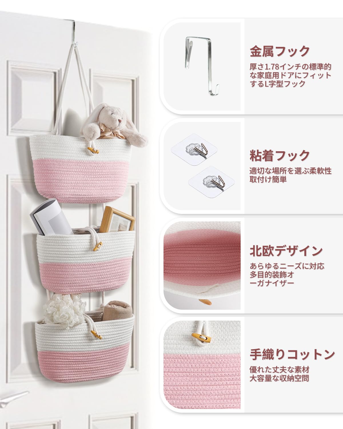 Umlaca クローゼット収納 ウォールポケット ドア掛け収納 吊り下げ収納式ポケット 綿麻 牛角風ボタン付き 折りたたみ可能 粉白ツートン 壁掛け収納ポケット 下着 文房具 化粧品 おもちゃ タオル ぬいぐるみ 小物入れ バッグ収納 フック付き 耐久性 大容量 コンパクト収納