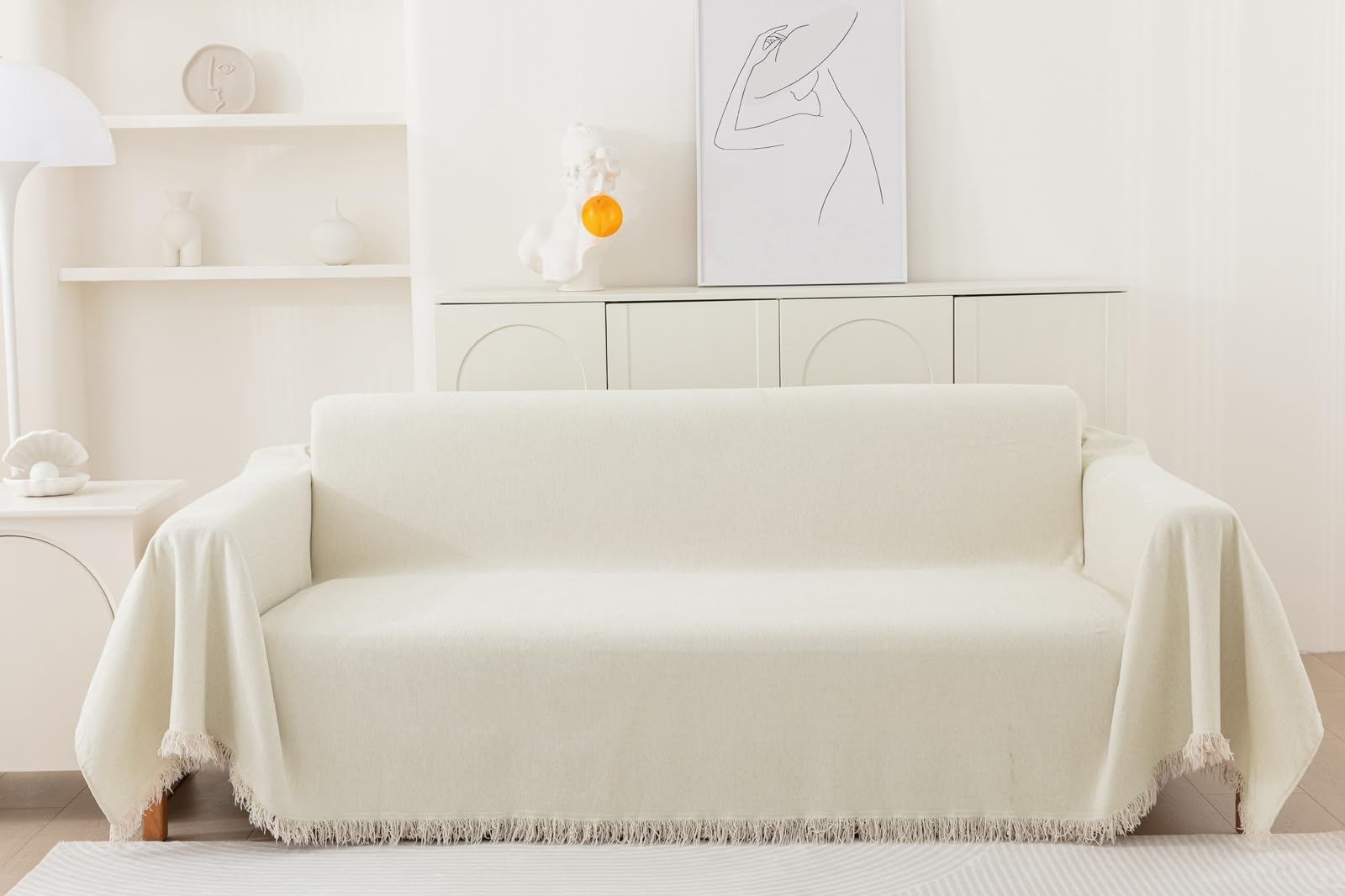TMVOK マルチカバー ソファカバー ブランケット 犬猫対策 汚れ防止 3人掛け ソファーかばー 無地 北欧風 長方形 180*300cm 通気 柔らかく カウチ ベッドカバー シェニール テーブルクロス 洗える 四季通用