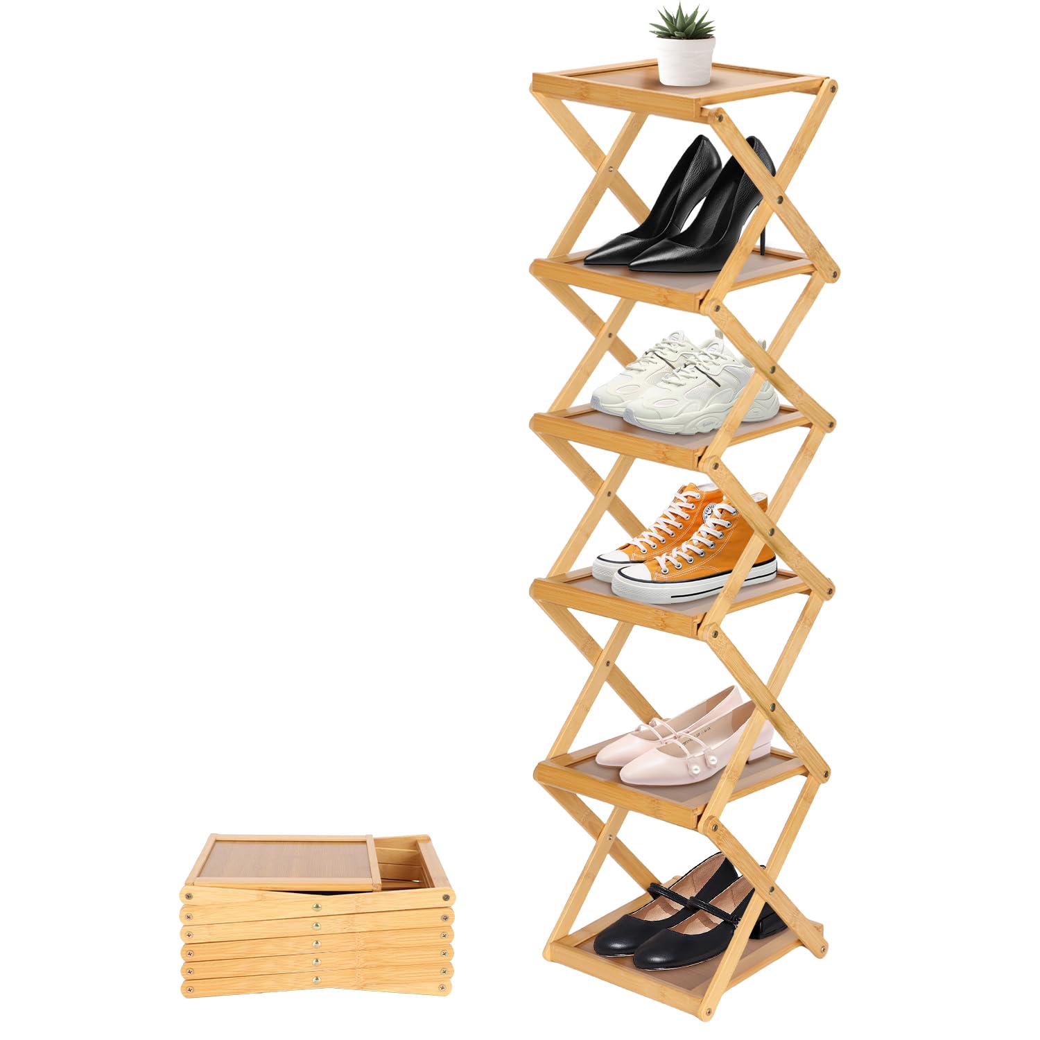 Vinnatsuシューズラック折りたたみシューズラック狭い玄関 折りたたみ 靴棚下駄箱 靴箱 棚 収納棚 玄関収納 靴 収納 省スペース 組立不要 4段/5段/6段天然竹製25cm*24cm*27cm (木の色, 25cm*24cm*67cm)