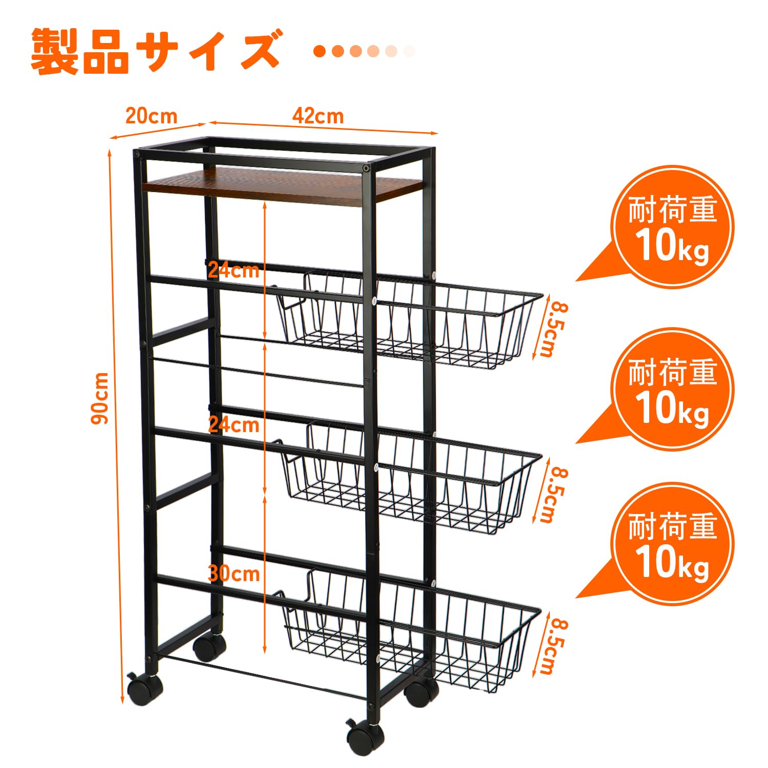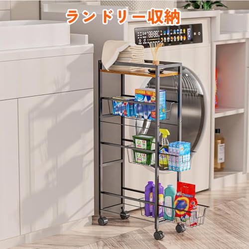 Vinnatsu キッチンワゴン キャスター付き 20cm 隙間収納 収納カート4段 スリムワゴン天板付き スライド式 幅42×奥行20×高さ90cm 洗面所 収納ラック 調味料棚 ラック 洗濯機横 冷蔵庫横収納 ランドリーワゴン 棚 スリムラック組み立て簡単