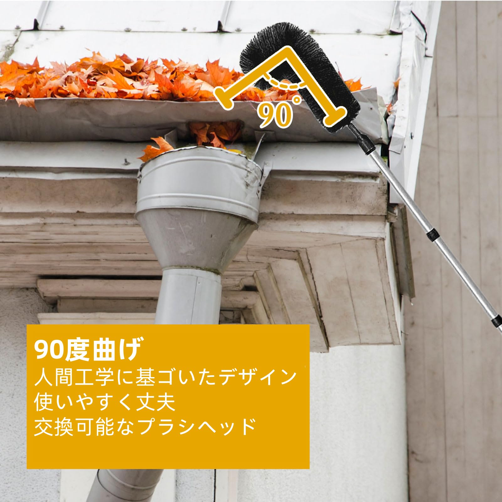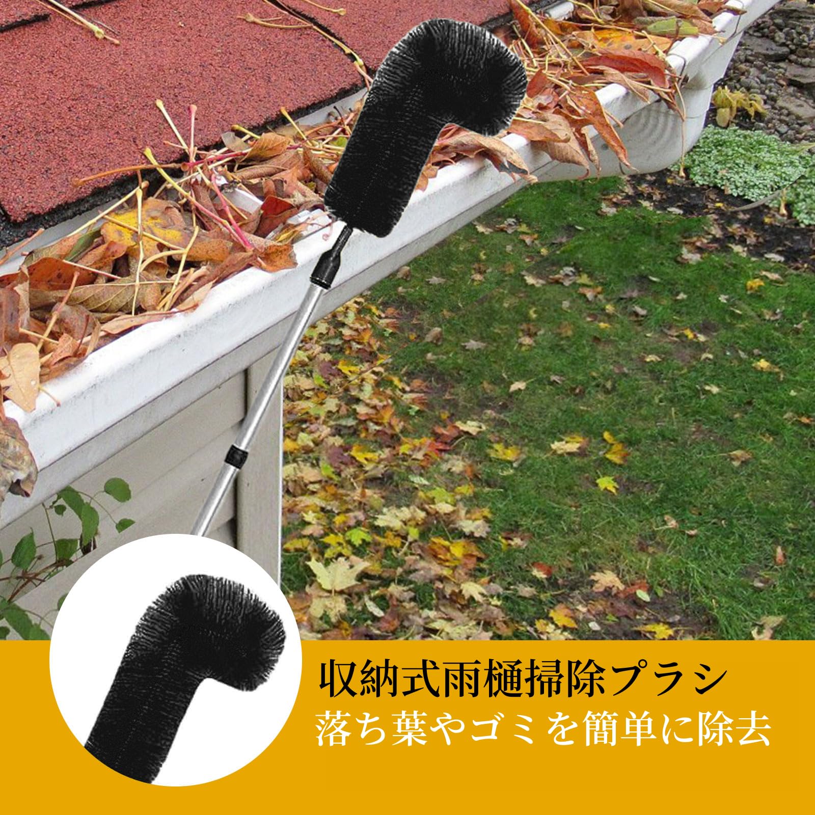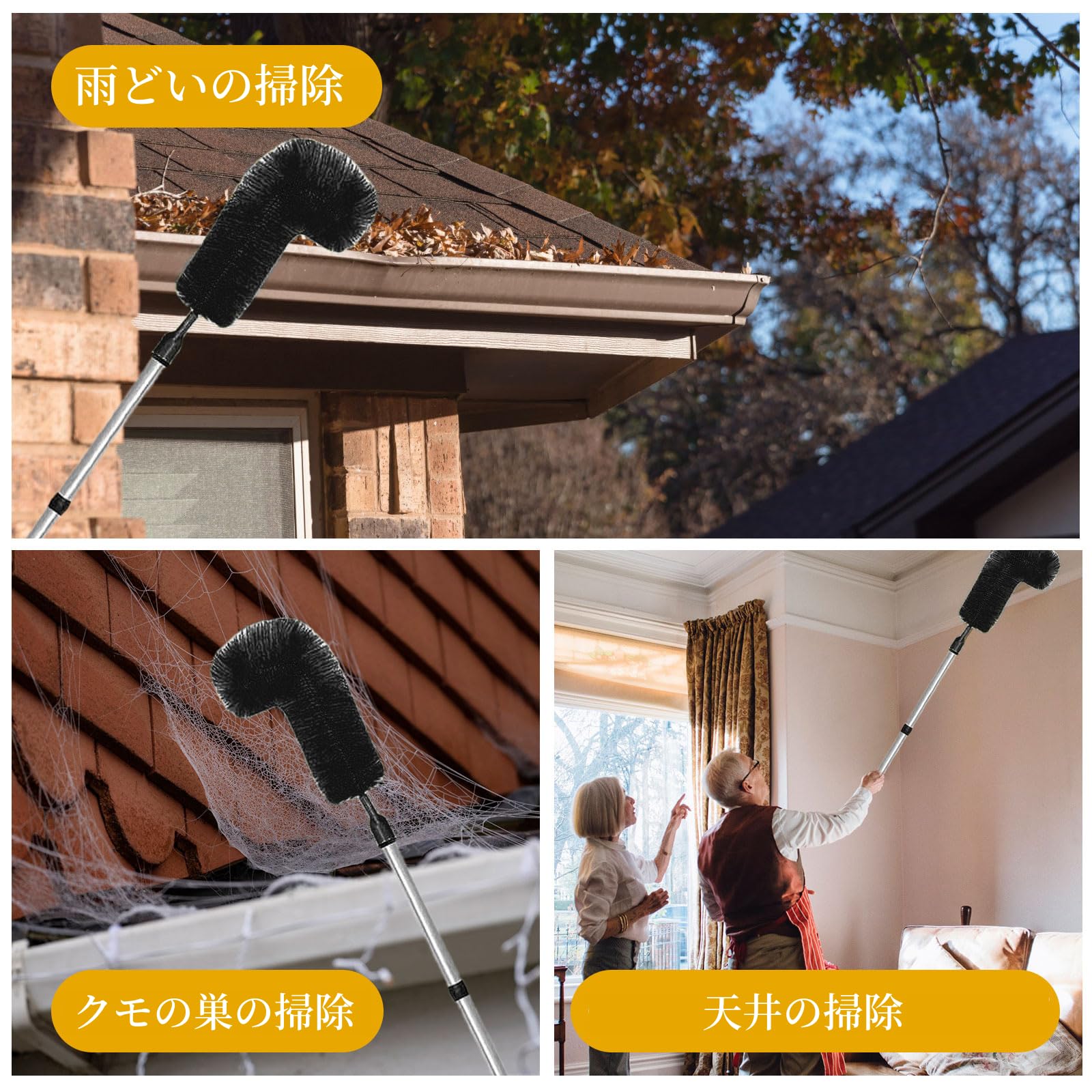 Mchodare 雨樋掃除ブラシ 蜘蛛の巣取り棒 はたき雨樋掃除道具 ブラシ長い3メートル 延長ポスト付き 高所掃除ブラシ 蜘蛛の巣対策 葉や蜘蛛の巣を掃除する 天井の掃除 年末大掃除用(ブラック)