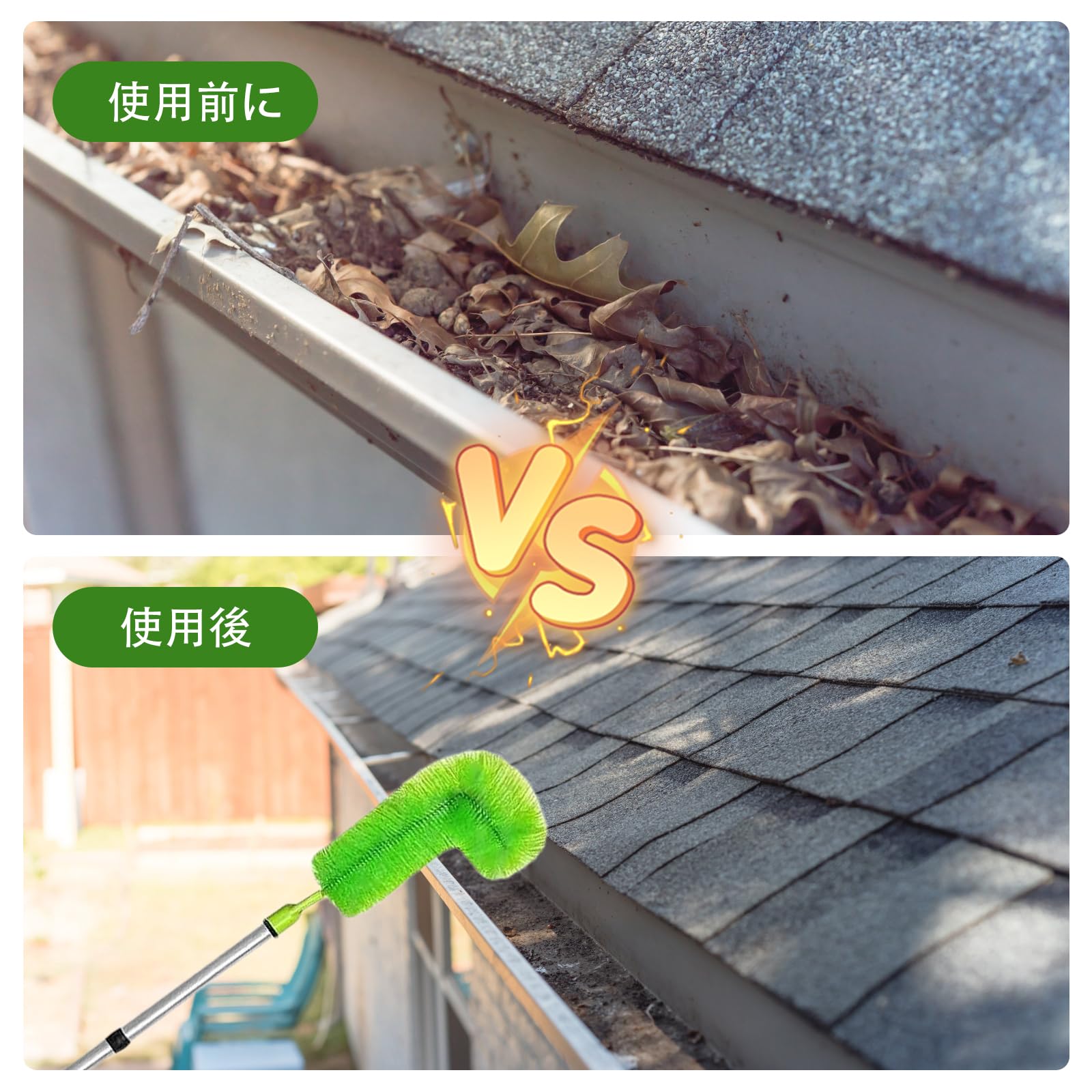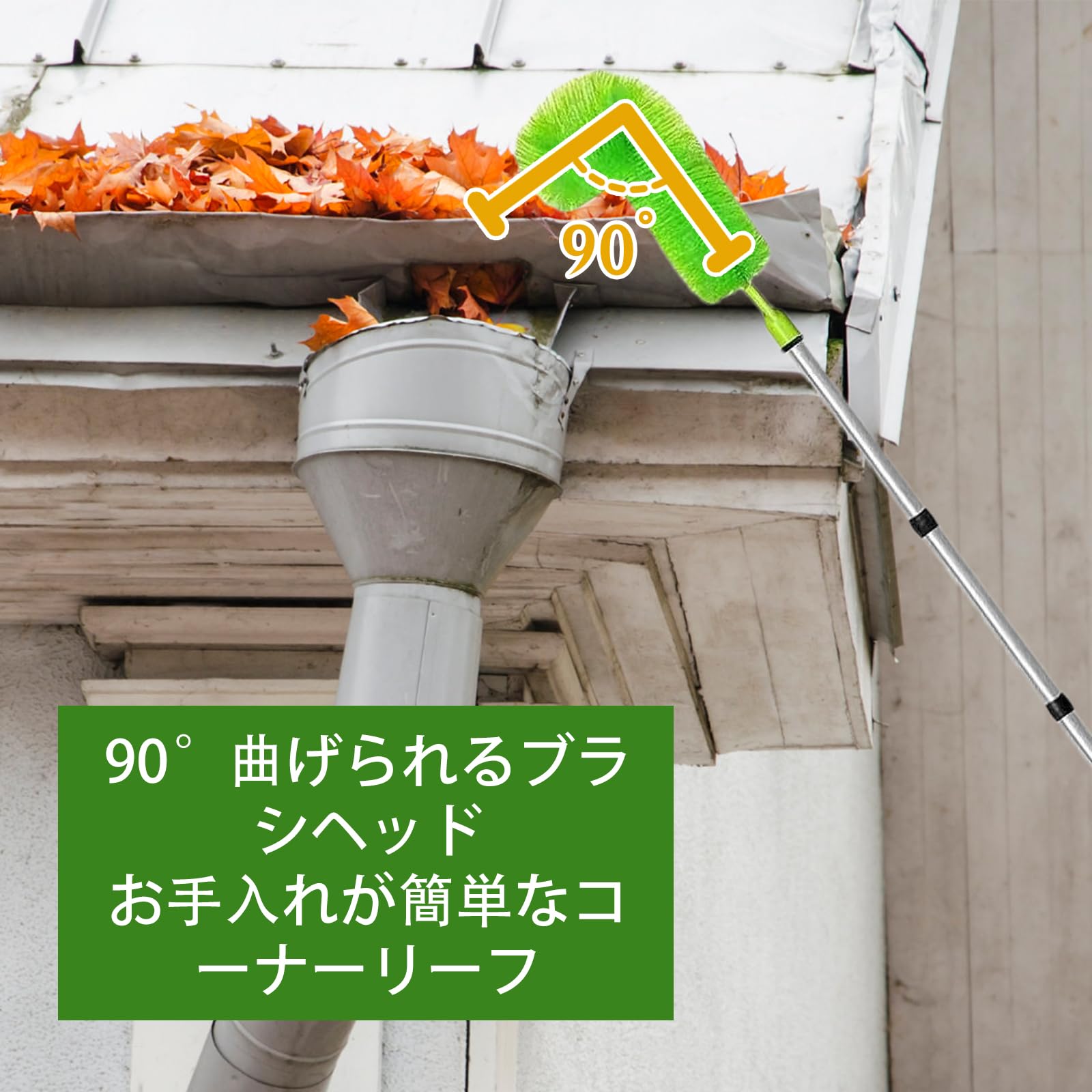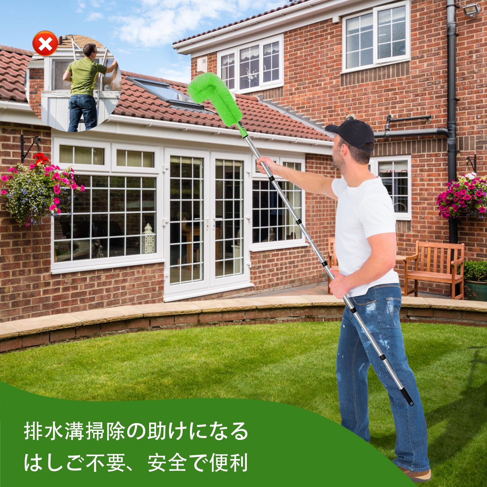 雨どい掃除ツール 雨樋掃除ブラシ 蜘蛛の巣取り棒 大掃除 はたき ホコリ取り 雨樋掃除道具 ブラシ長さ3m 延長ポスト付き 高所掃除ブラシ 蜘蛛の巣対策 葉や蜘蛛の巣を掃除する 天井の掃除 年末大掃除用 (グリーン)