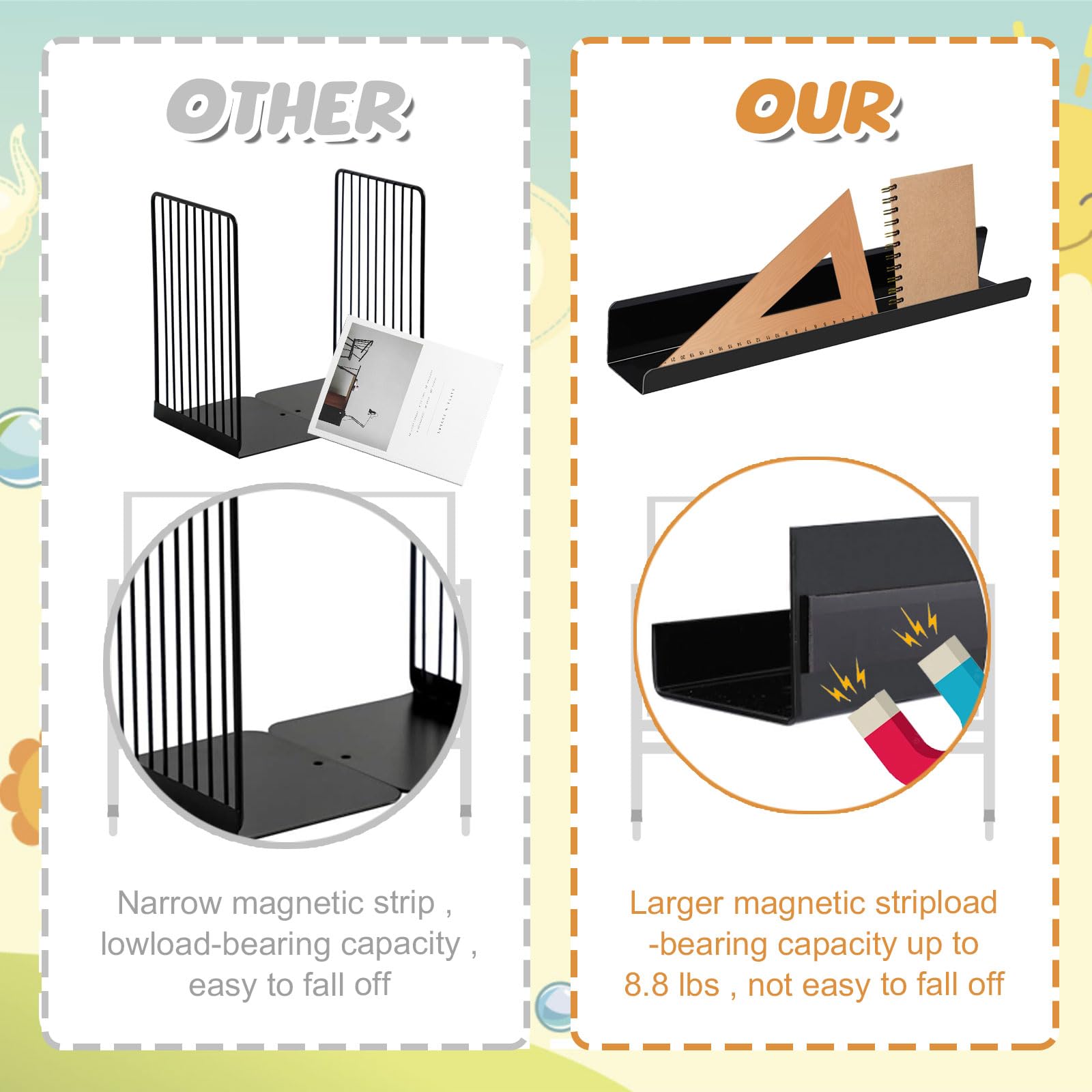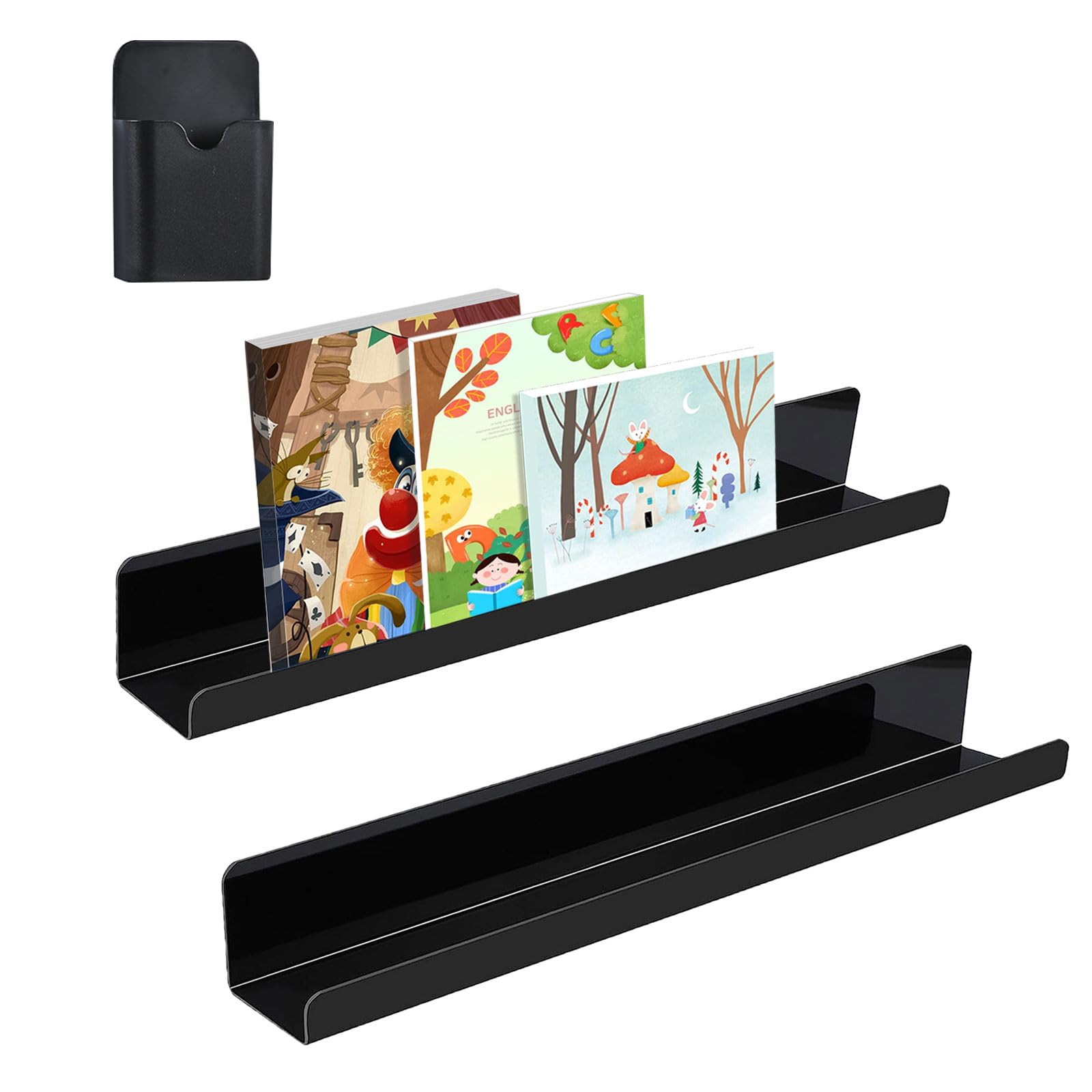2個入り 磁気本棚 冷蔵庫マグネットホルダー 新聞ラック マグネットブックシェルフ マグネット式本棚 冷蔵庫ラック スパイスホルダー 磁気マガジンラック ブックホルダー マグネットブックラック マグネットマーカーホルダー付き ホワイトボード 小物入れ 収納 省スペース 教室 オフィス 大型教室 図書館 ホーム用 44x5.5x5cm (黒)