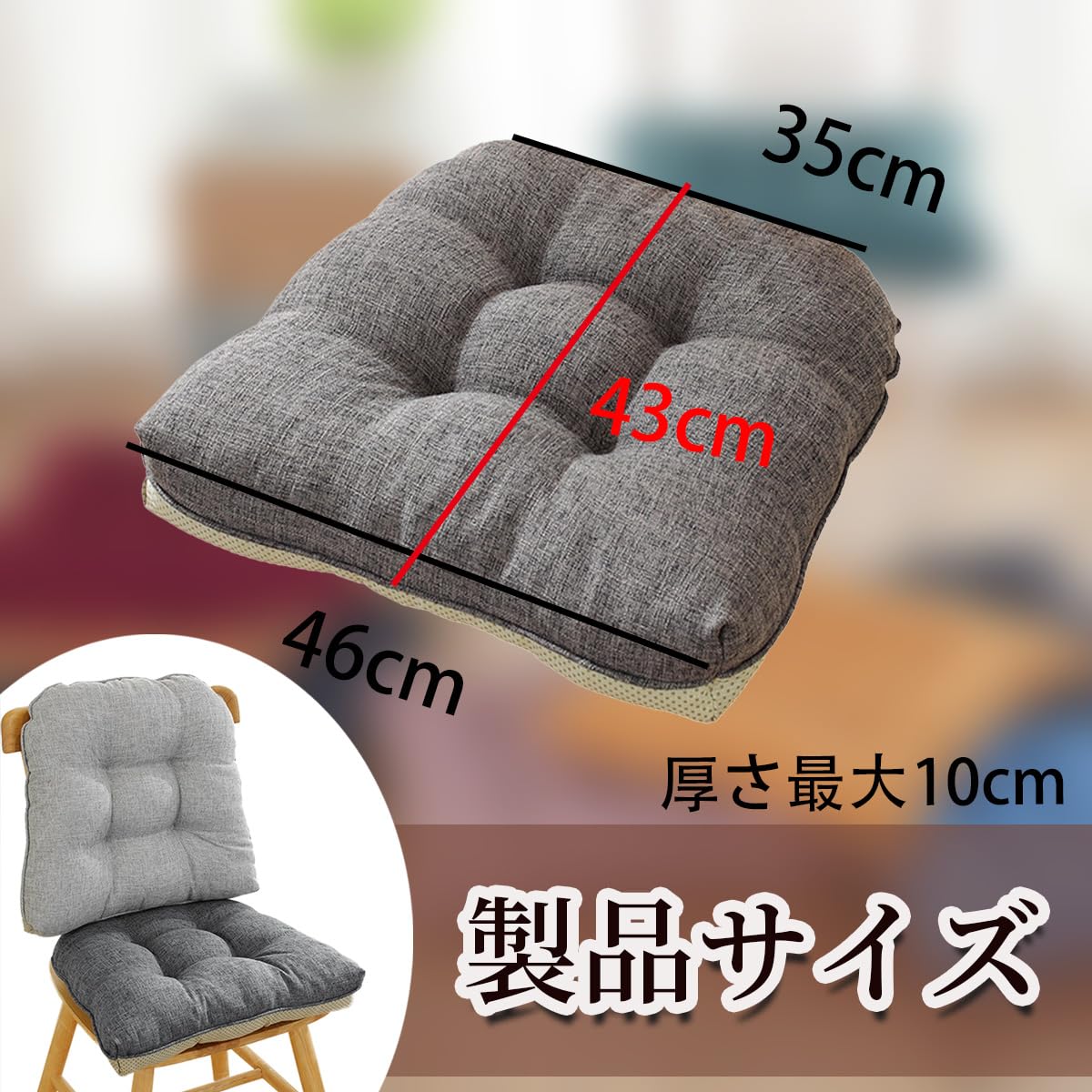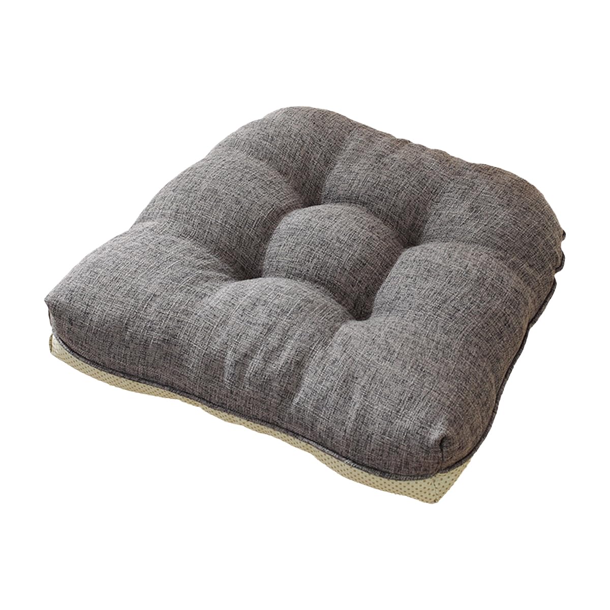 Aikenn 綿と麻の素材、クッション、パールコットンの詰め物、固定針技術、滑り止めストラップ、複数のシーンに適し、長時間快適に座れる、クッション、ストラップ付きの厚手のチェアクッション、2個セット、ふわふわ、ふわふわ、洗濯機洗い可能、二重滑り止め、四季対応ダイニングチェアクッション、46x43x9 cm (1, ダークグレー)