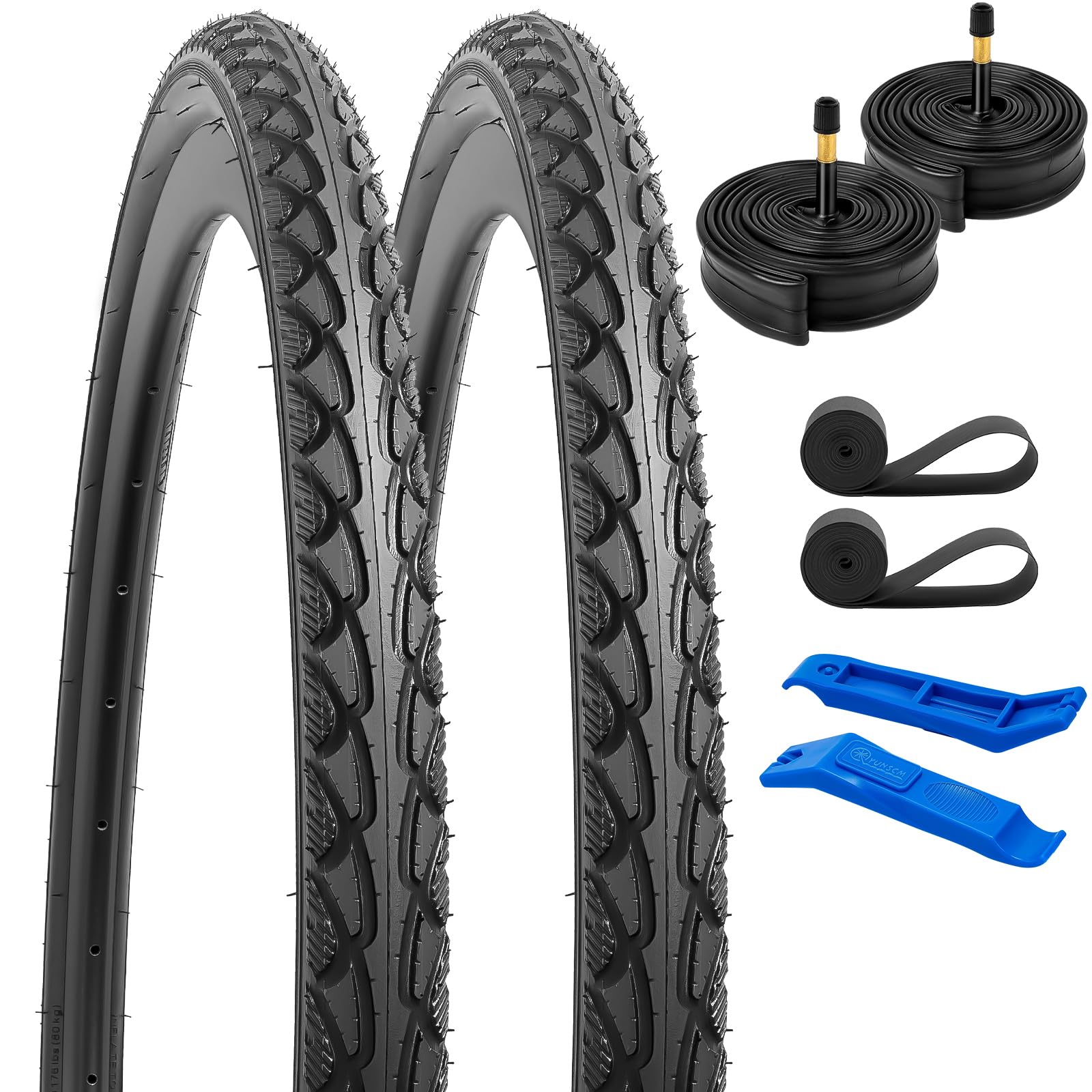 YunSCM 2本セット,700x38c タイヤ,700x38c 40-622 自転車タイヤ + 700x35/43c チューブ 肉厚 米式バルブ48mm +リムテープ + タイヤレバー,適用 700x38c クロスバイク、ロードバイク,Y-2113