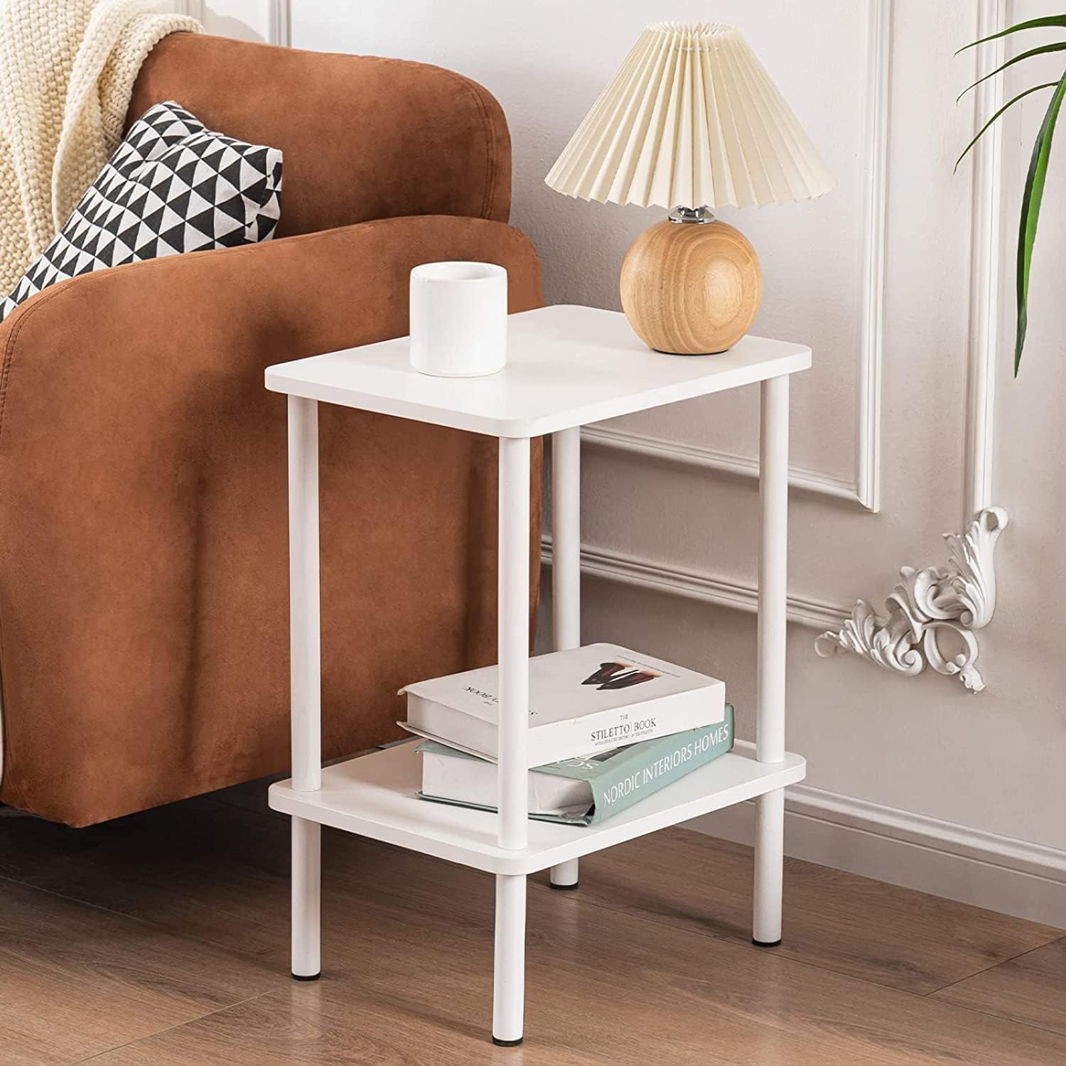 APICIZON サイドテーブル リビング スリム ソファ ナイトテーブル サイドラック ベッドサイド ベット横テーブル 多機能 組立簡単 (幅40×奥行30×高さ54cm,ホワイト)