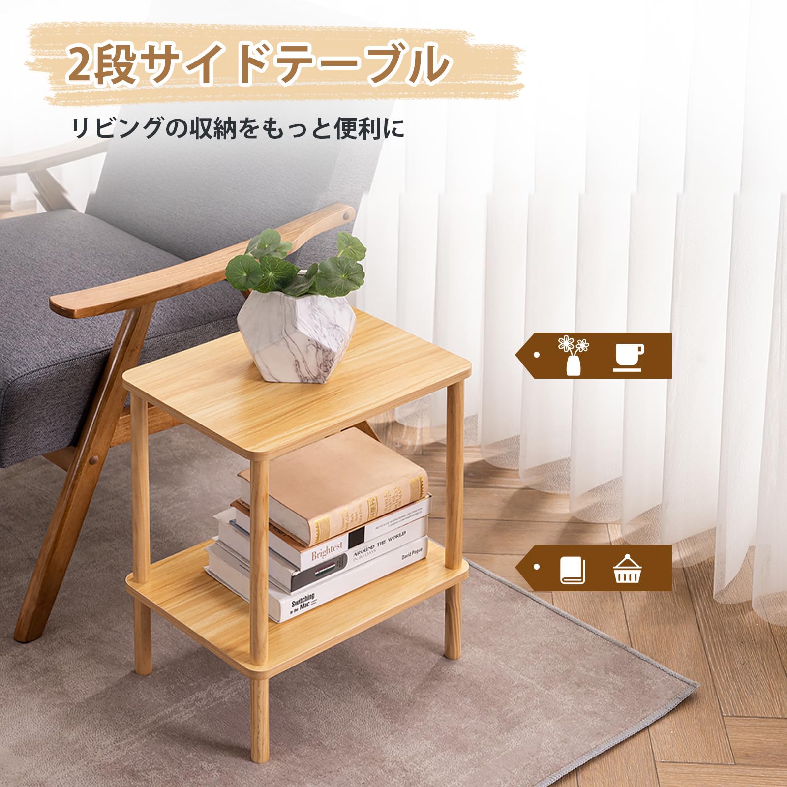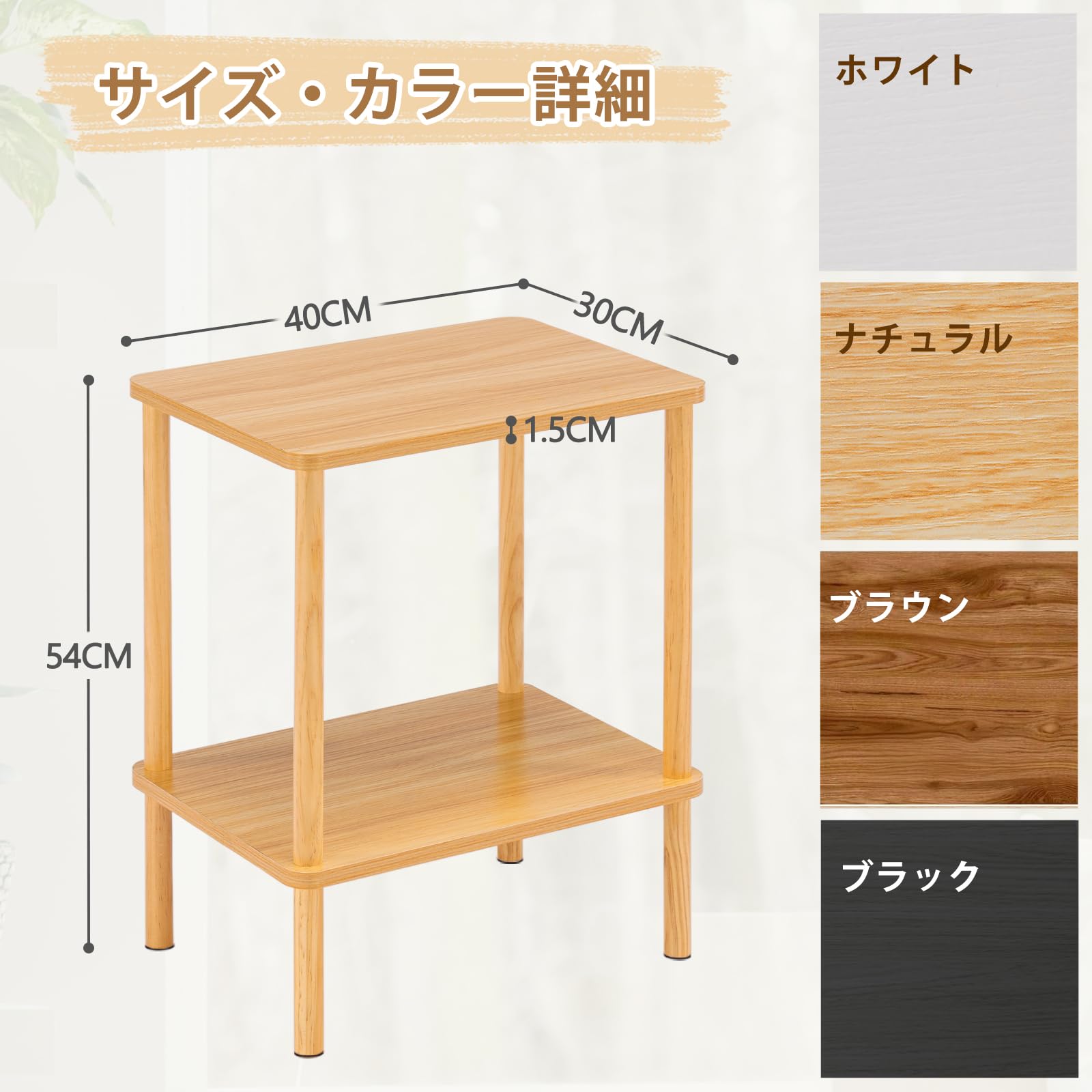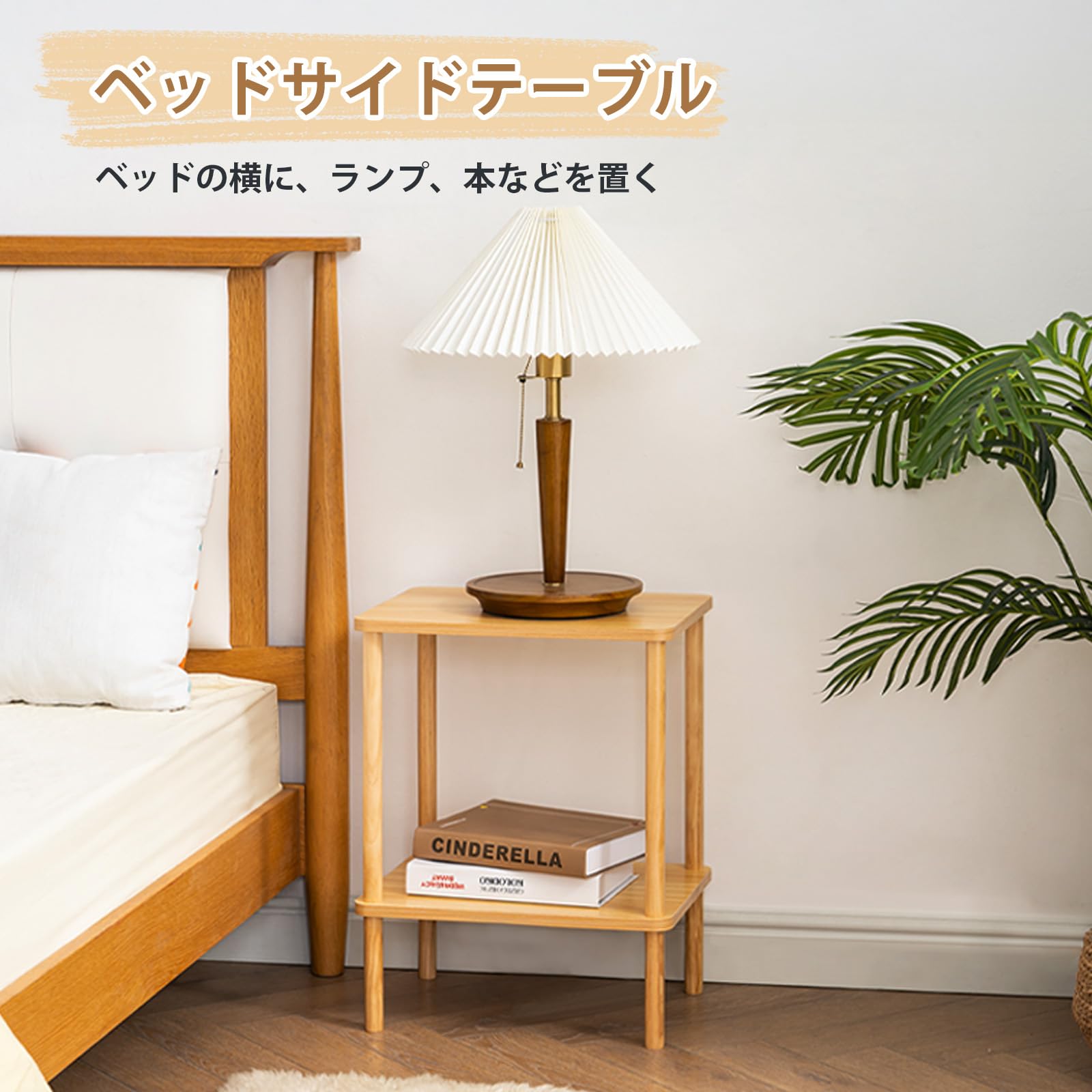 サイドテーブル ナイトテーブル 天然木 小さい おしゃれ 収納棚付き ベット用 リビング ソファサイド 一人暮らし カフェテーブル (40cm*30cm*54cm, ライトナチュラル)