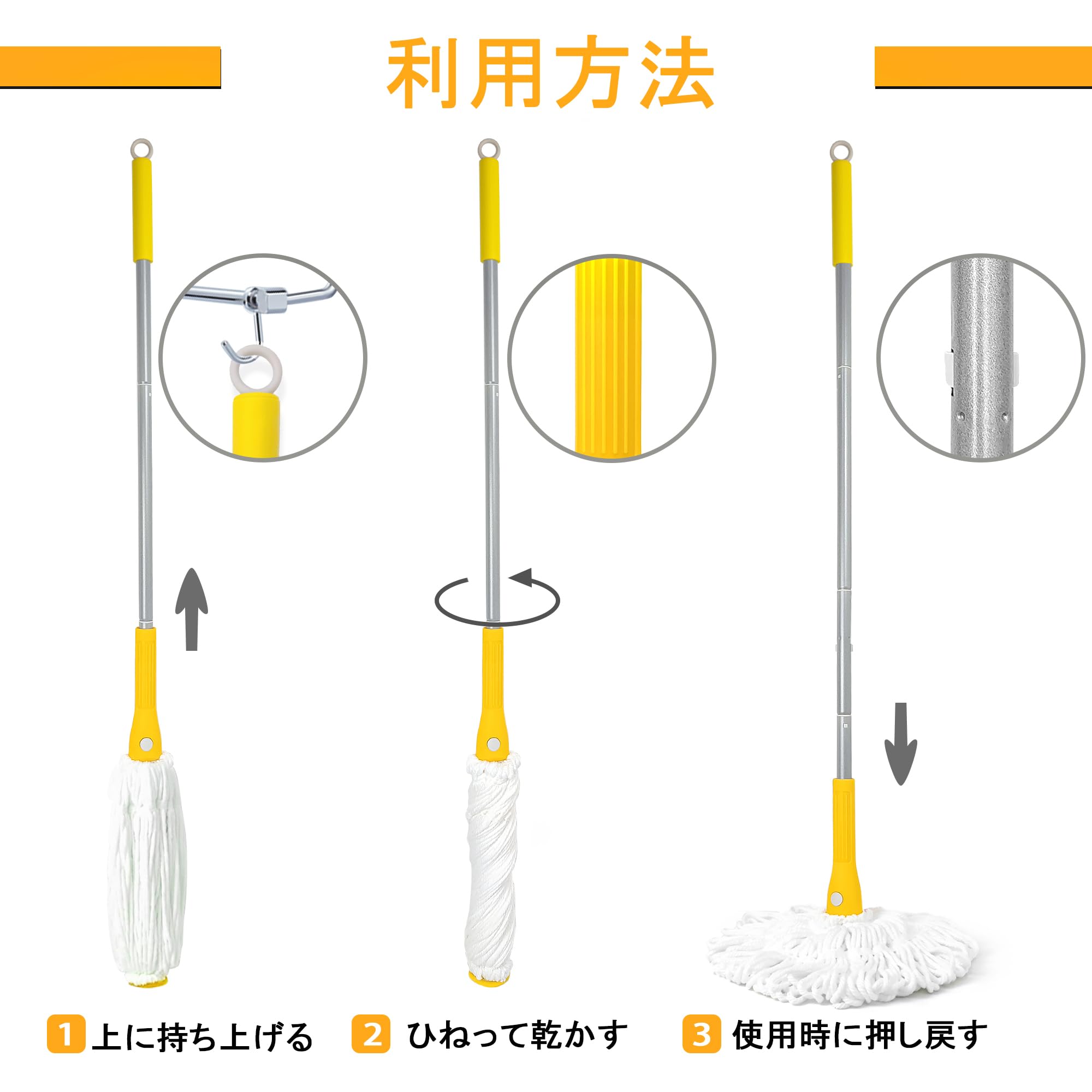 JEHONN 乾湿両用モップ 絞り器付き, 長さ146 cm 回転モッ プ手を汚さない 収納便利, モップ フローリング は硬木タイルの大理石家庭のオフィスキッチンを清潔にするために使用されている(黄色い)