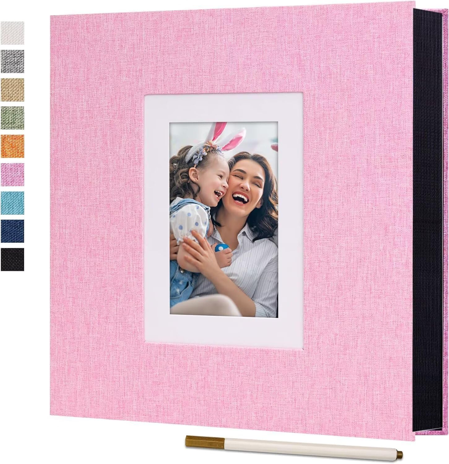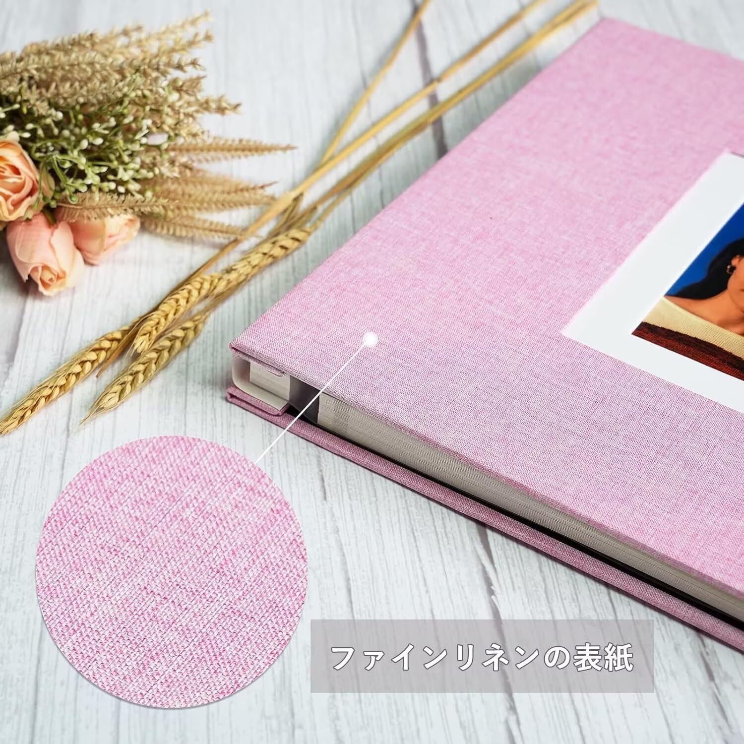 AIOR アルバム 貼るタイプ 大容量 30*22CM 粘着式 台紙 20枚40ページ 大さなリネン 写真アルバム 手作りDIYミニサイズ/L/KG/2L 写真収納 カップル メモリー 贈り物 お祝い 家庭用 記念日 結婚式 誕生日 成長記録 卒業式(ピンク)