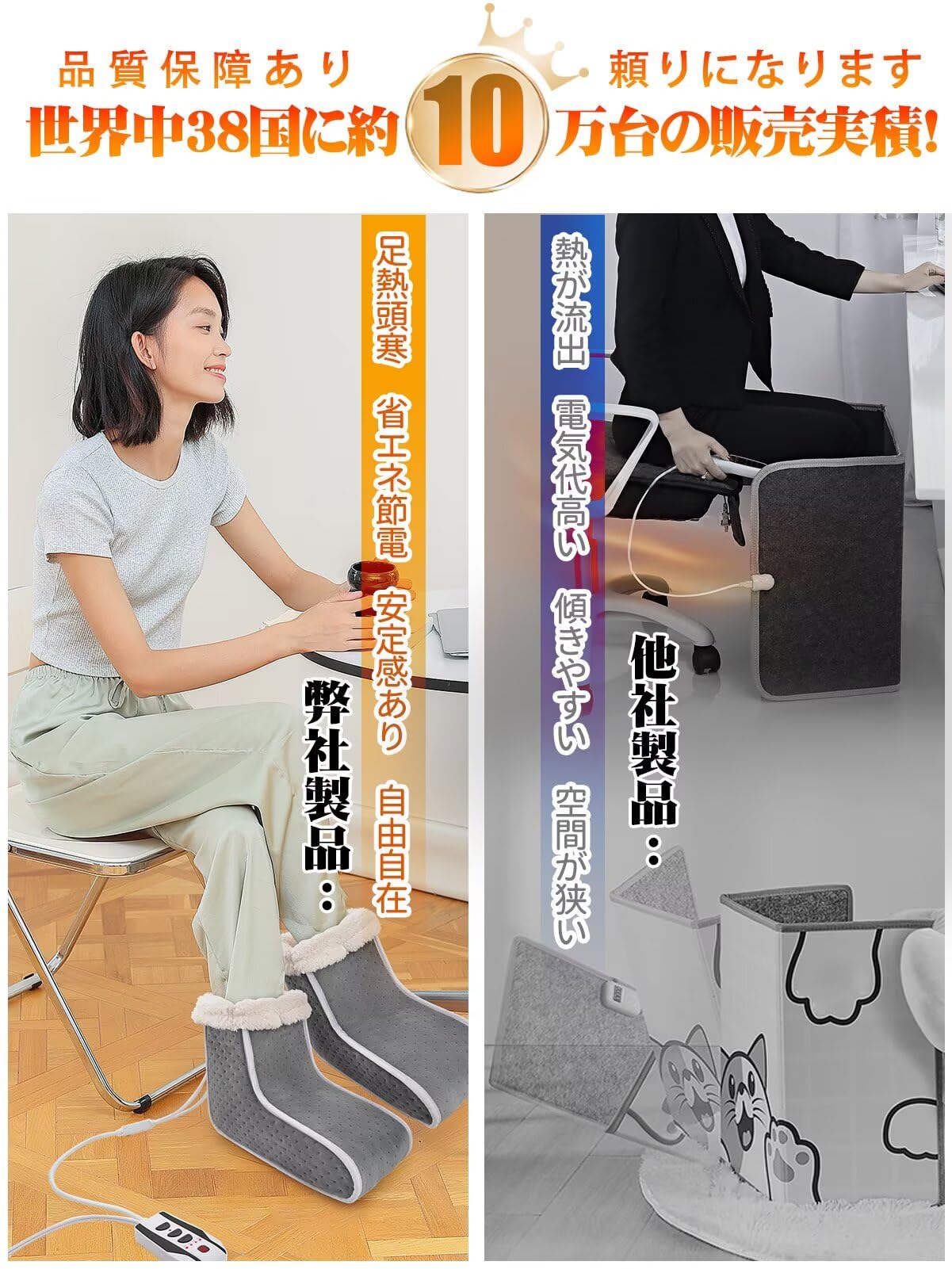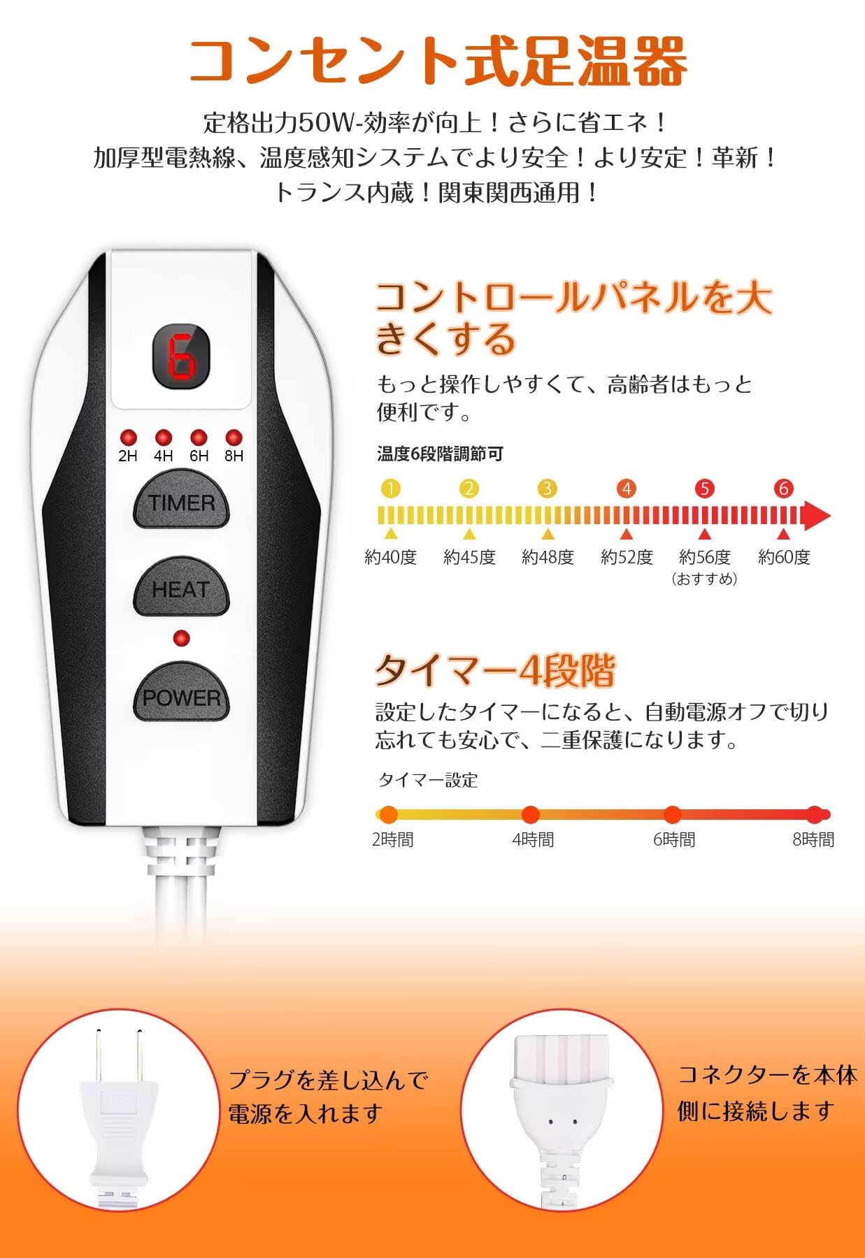 Uner® 足温器 電気スリッパ フットウォーマー 足入れタイプ 冷え症対策 電気足温器 6段階温度調節 タイマー機能【分離式 深型】コンセント式 即暖 足元ヒーター デスク下 フットヒーター 加熱スリッパ フットウォーマー 過熱防止機能 PSE認証済み 安全 洗濯可 40W 省エネ