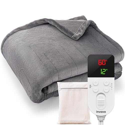 invava® 【睡眠専門家監修】電気毛布 敷き 敷き毛布 セミダブル/ダブル 190x130cm 【25~60℃までフリー温度調節機能 1~12時間タイマー 即暖】 掛け敷き兼用 リバーシブル 洗える 電気毛布ひざ掛け かけしき 電気ブランケット 切り忘れ防止タイマー 過熱防止 省エネ 寒さ対策 洗濯ネット付き グレー