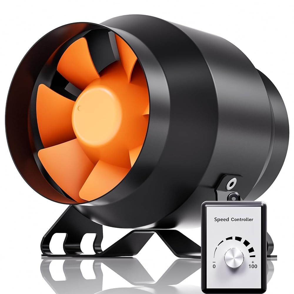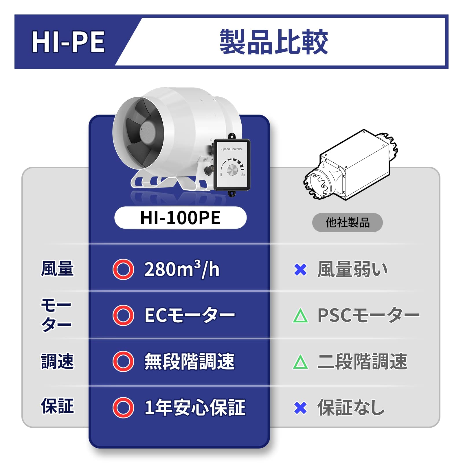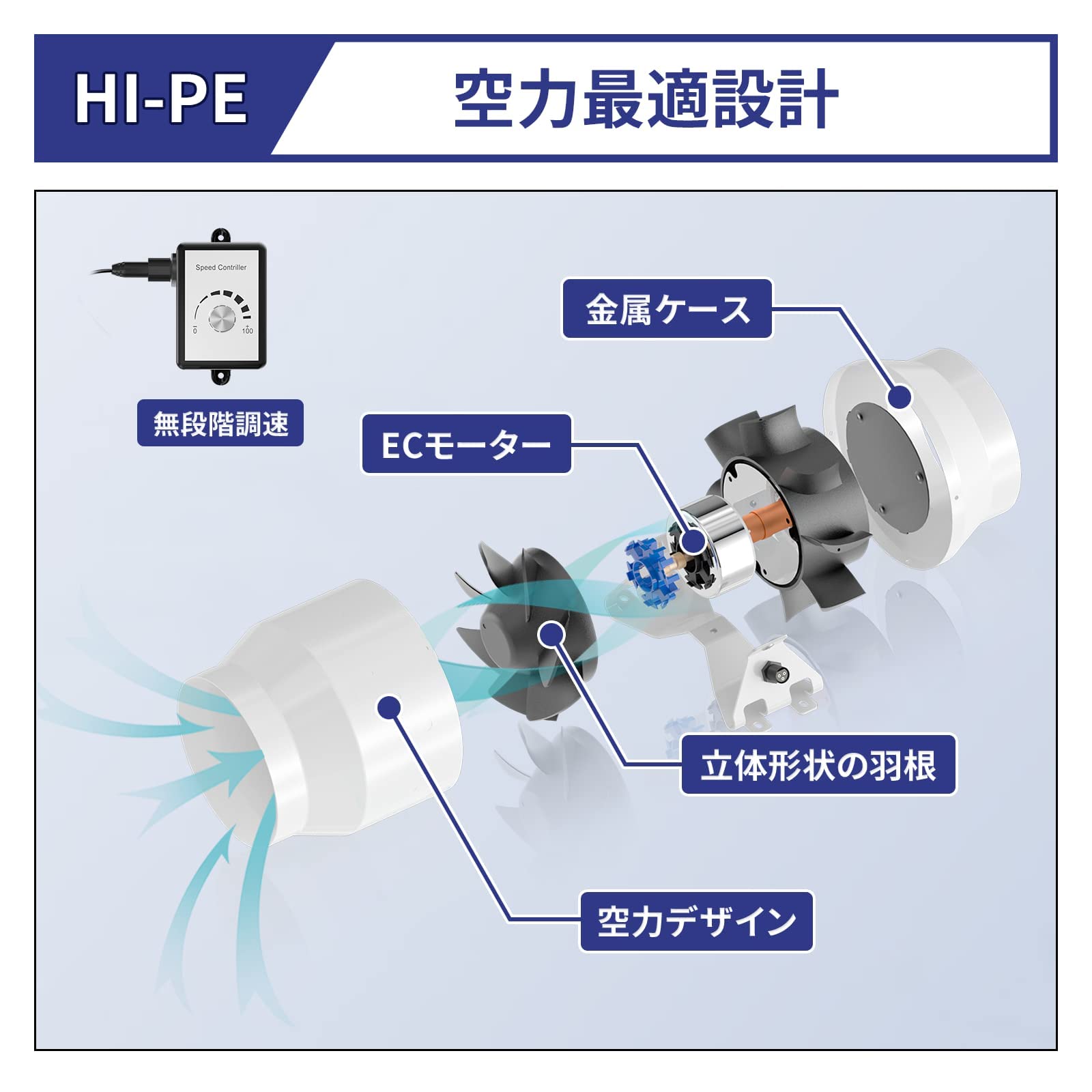 Hon&Guan ダクトファン 100mm 強力 無段階調速可能 【インボイス制度登録店】 金属ケース ダクト用換気扇 省エネ 塗装ブース用 マイニングリグ冷却 インバータダクトファン 無段階調速スイッチ付き 産業用排風機(HI-100PE,ブラック)