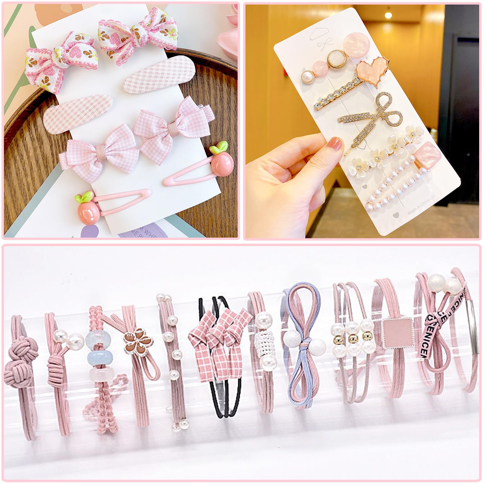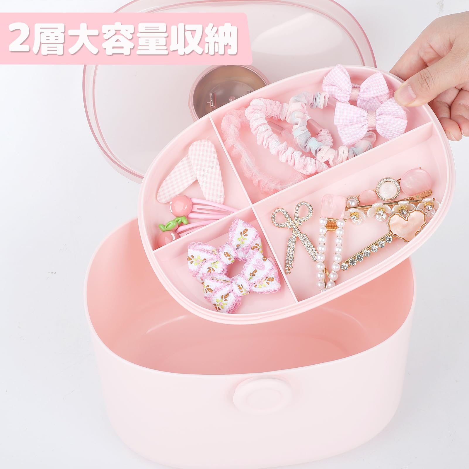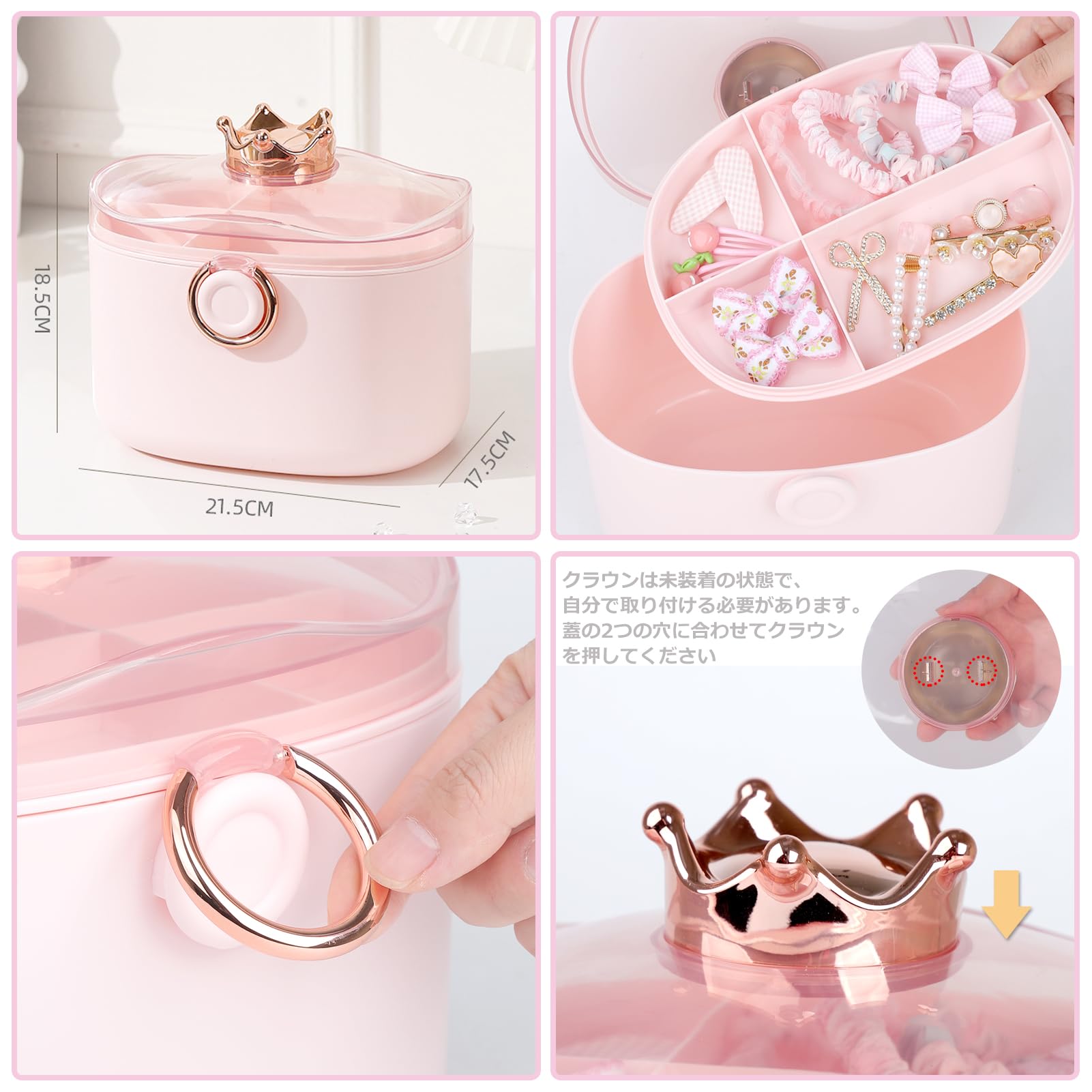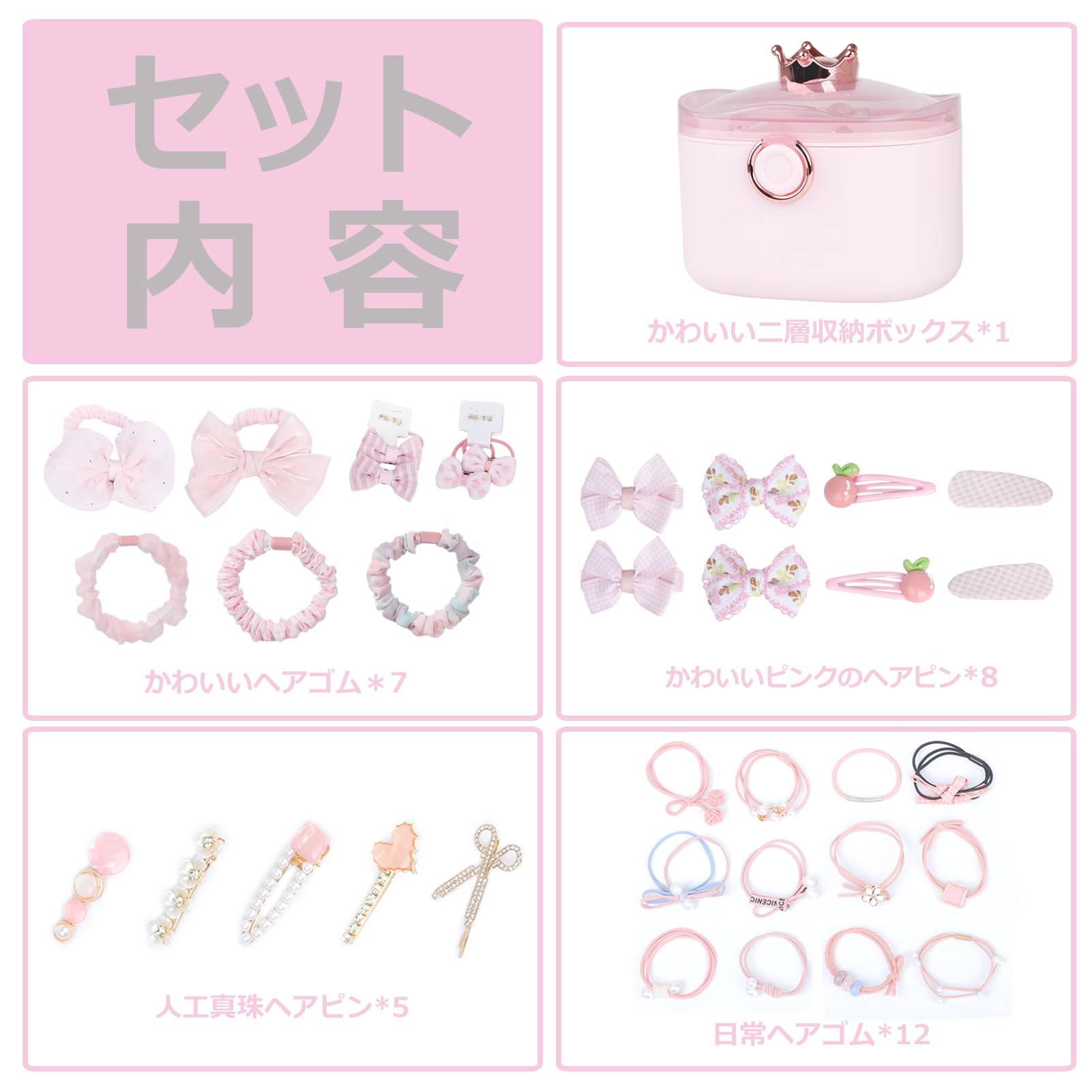 Sitengle ヘアアクセサリーセット かわいい クラウン収納ボックス付き 2層 女の子プレゼント 大容量 プリンセス アクセサリーセット ヘアクリップ ヘアゴム 入園式 入学式 卒業式 子供の日 七五三 誕生日 クリスマス 女の子ギフト お姫様 小学生 プレゼント (ピンク)