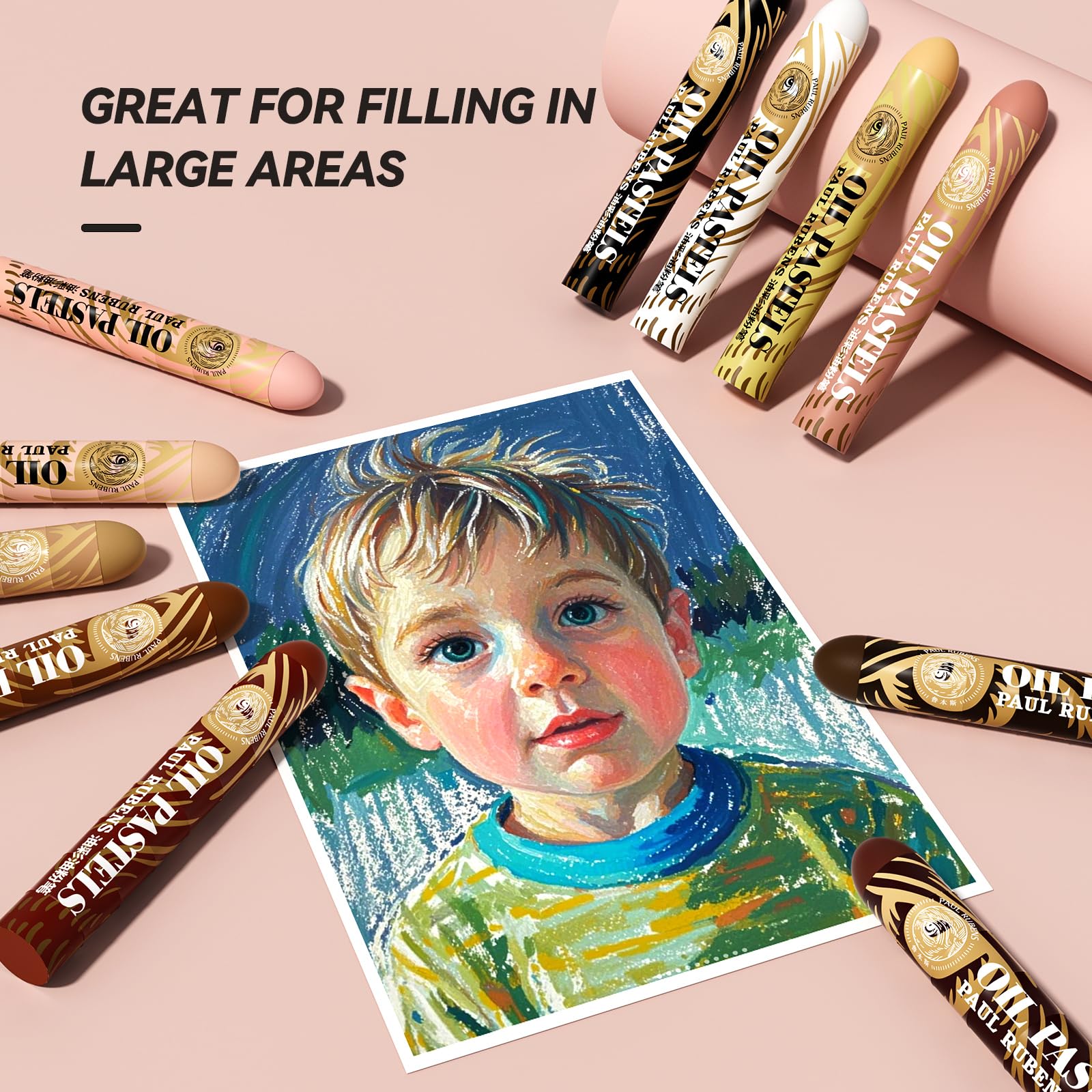 Paul Rubens(ポール・ルーベンス) オイルパステル、12色のポートレートカラー特大オイルパステルセット、クリーミーな質感でブレンドしやすいHAIYAオイルパステル。広いエリアに塗りつぶすのに最適。