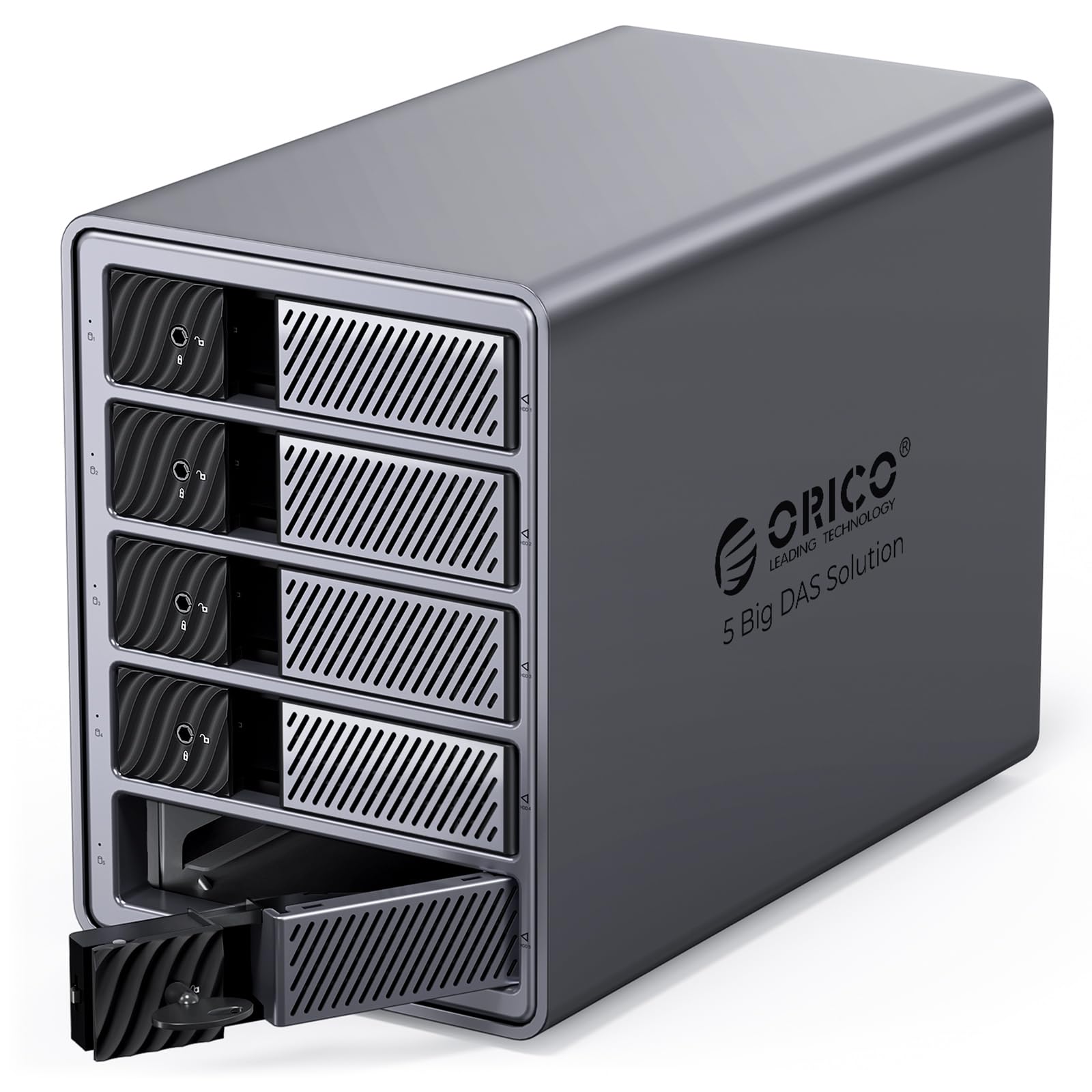ORICO オールフラッシュ SSDケース 5台 8TB*5 RAIDケース 10Gbps USB3.2 Gen2接続 7-9.5mm 2.5インチSSD/HDD対応 デイジーフェイス機能付き アルミ合金制 SSD 外付けケース USB3.2 10Gbpsポート*2 SD/TFカードリーダー 8858RC3