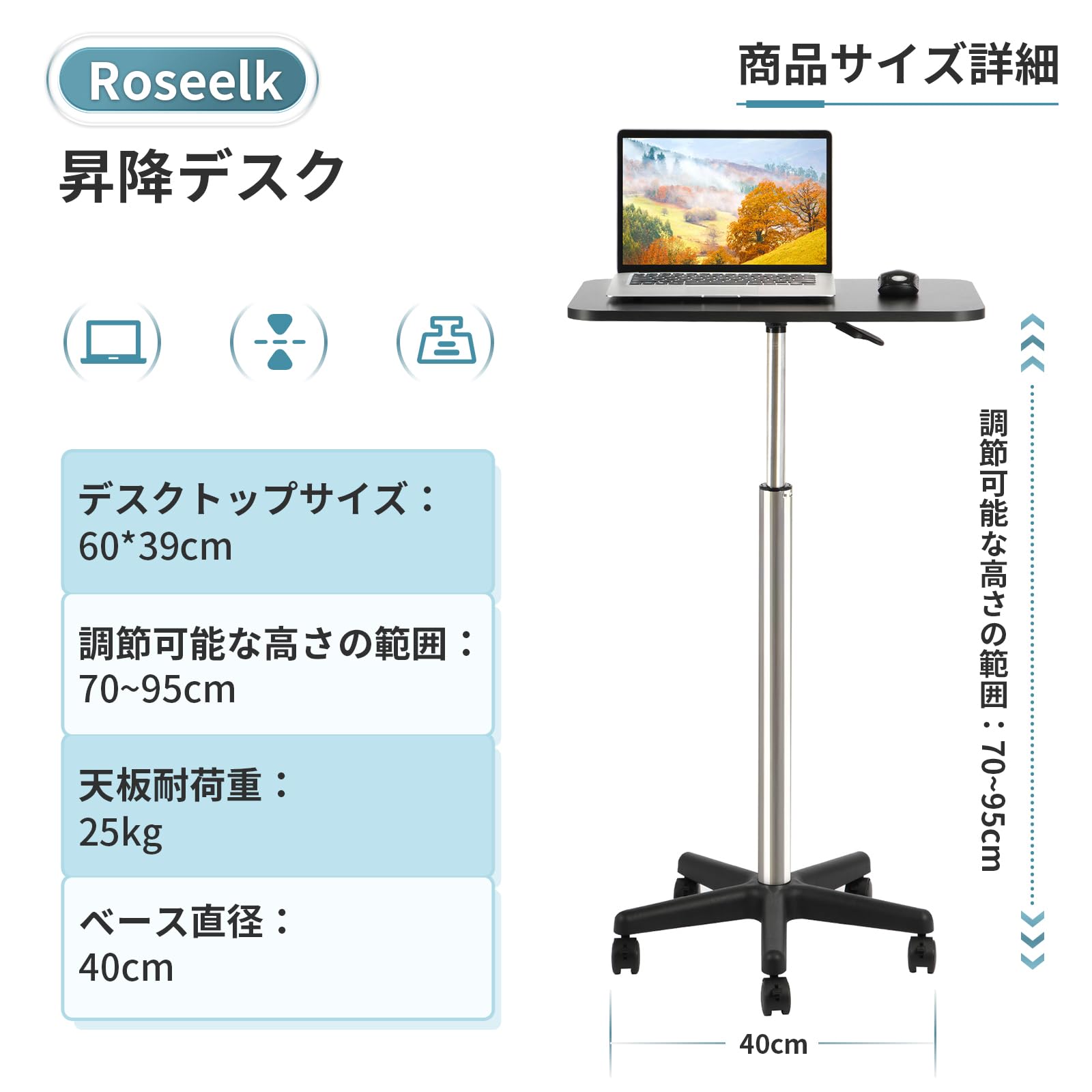 Roseelk スタンディングデスク 昇降デスク ワークデスク 無段階昇降(70~95cm) 耐荷重50kg 昇降テーブル ハイテーブル サイドテーブル プロジェクター台 自由に高さ調節可能 おしゃれ 簡単組立 収納便利 オフィス 会議室 ベッドルーム用 (ブラック, 70cm-95cm昇降)