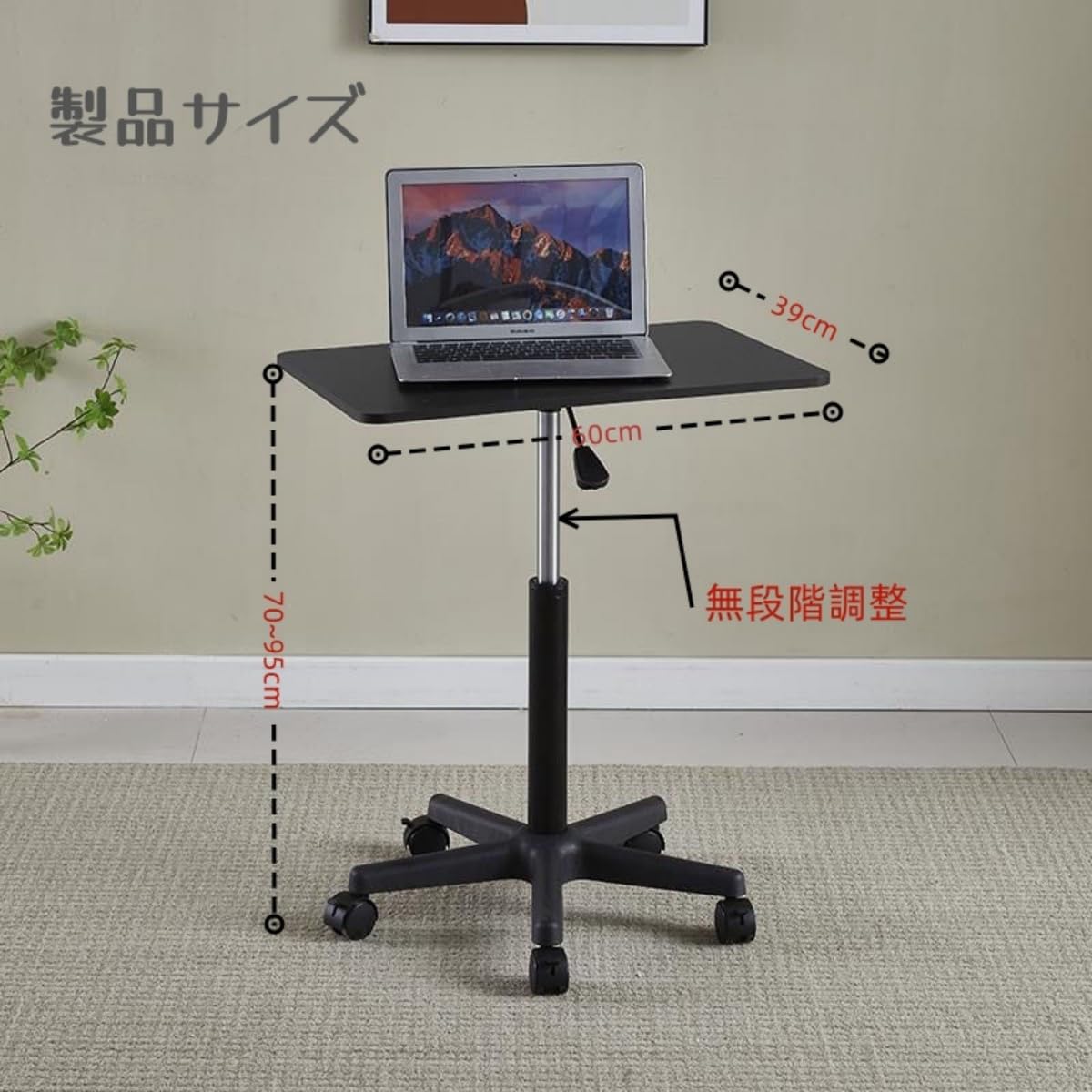 UNITRIP 昇降デスク モバイルテーブル スタンディングデスク pcデスク PCテーブル 無段階昇降 テレワーク 昇降式 キャスター付 ガス圧 リフトテーブル スムーズかんたん昇降 幅60cm×奥行39cm 高さ調整70cm〜95cm 耐荷重25kg (ブラック)