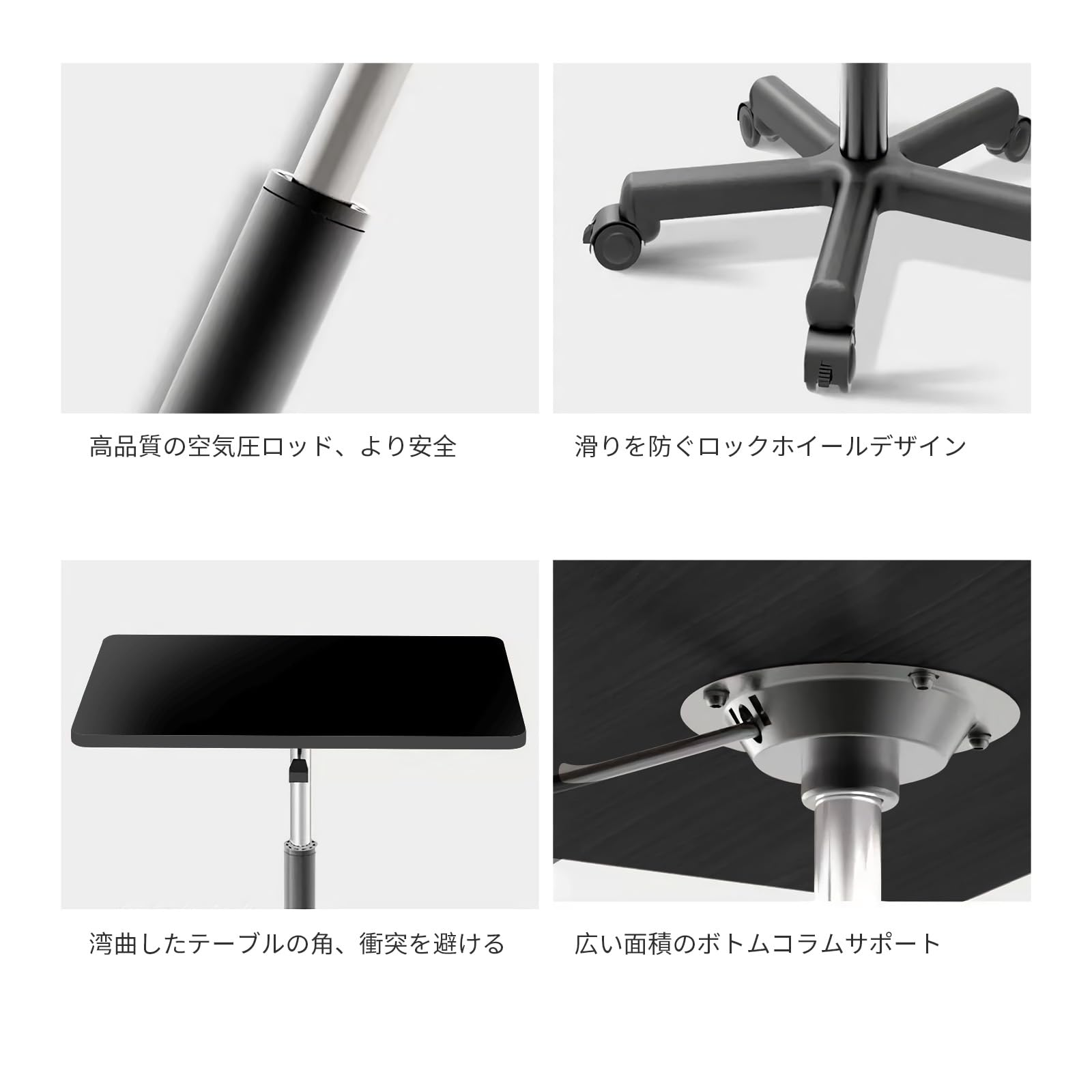 Aikenn 昇降デスク 無段階昇降 スタンディングデスク ノートpcデスク サイドテーブル ミニテーブル モバイルテーブル テレワーク 演台 昇降式 キャスター付 ガス圧 ノートパソコンテーブル リフトテーブル 幅60cm×奥行39cm 高さ調整 耐荷重25kg (ブラック, 59cm〜80cm)