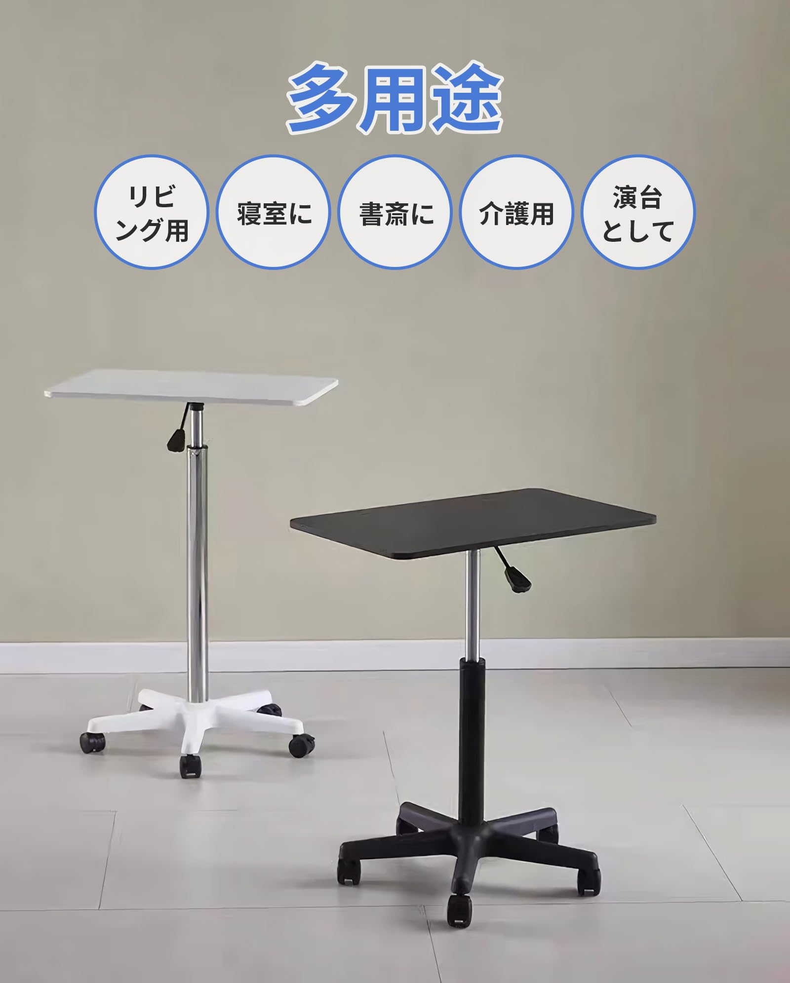 Aikenn 昇降デスク 無段階昇降 スタンディングデスク ノートpcデスク サイドテーブル ミニテーブル モバイルテーブル テレワーク 演台 昇降式 キャスター付 ガス圧 ノートパソコンテーブル リフトテーブル オフィステーブル 幅60cm×奥行39cm 高さ調整 耐荷重25kg (ホワイト, 85~107cm)